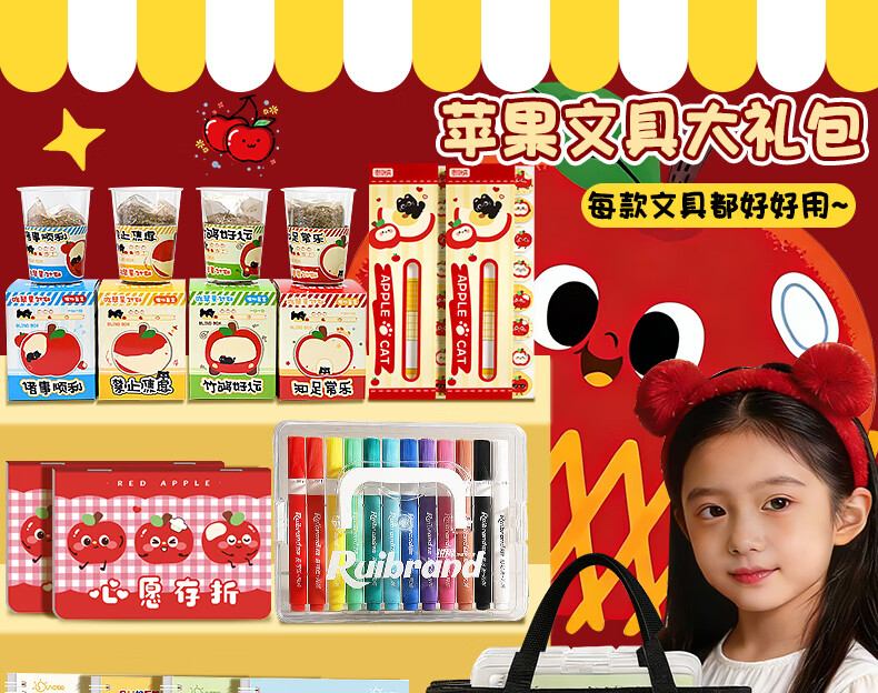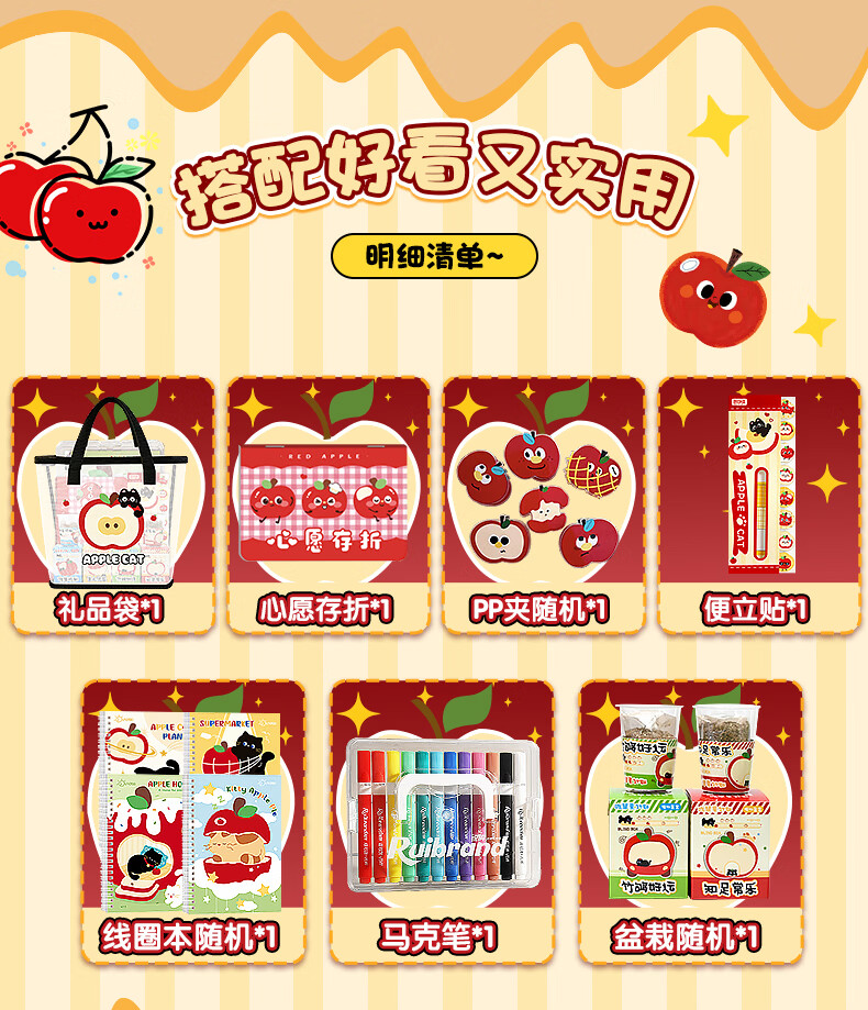 少年伴文具礼盒套装苹果伴手礼男女孩生日礼物开学必备大礼包小学生幼儿园小朋友学习用品年货礼物