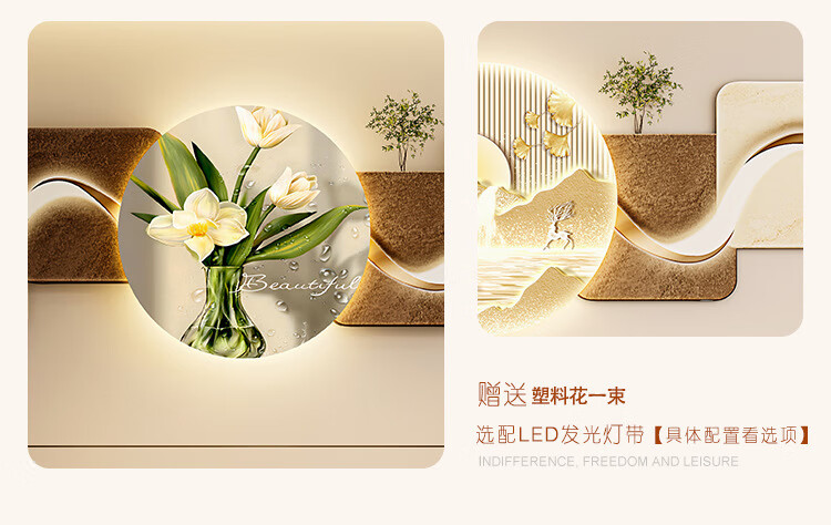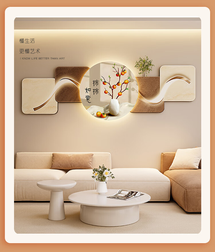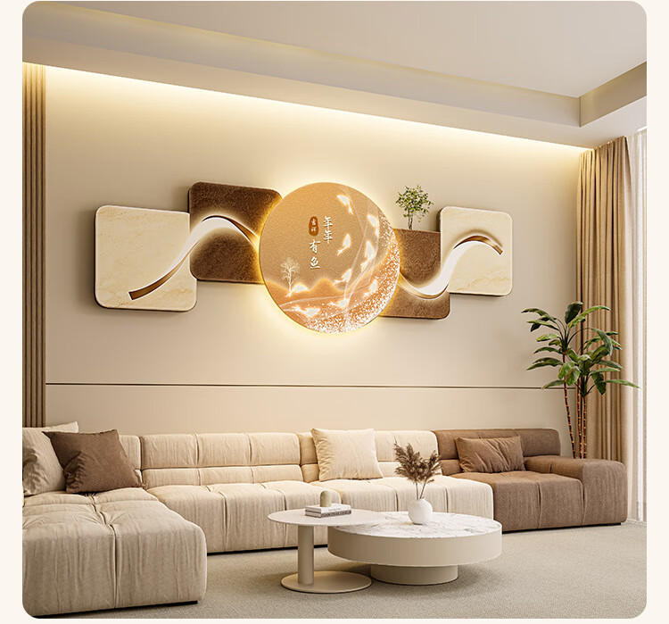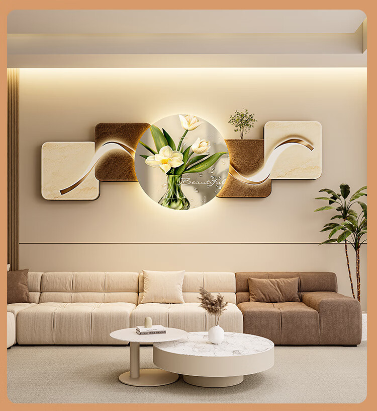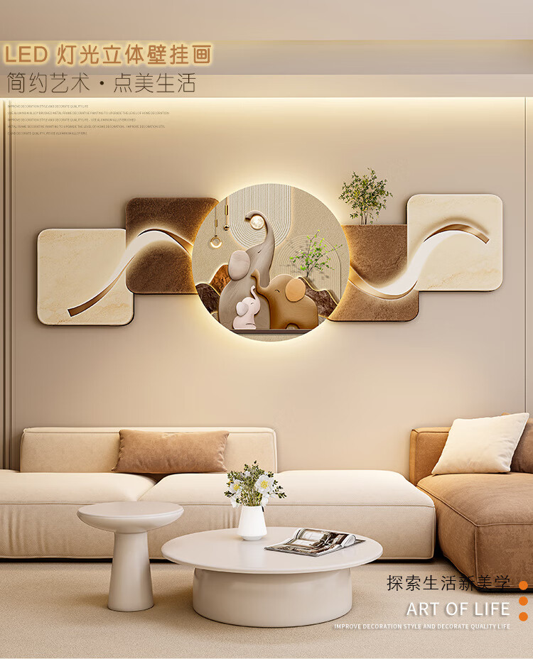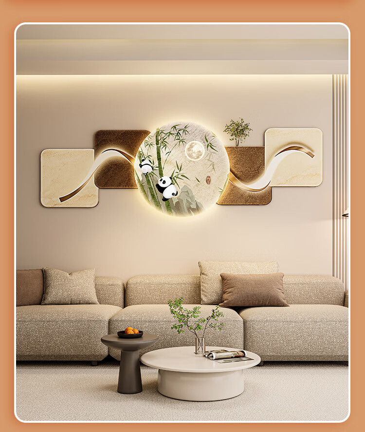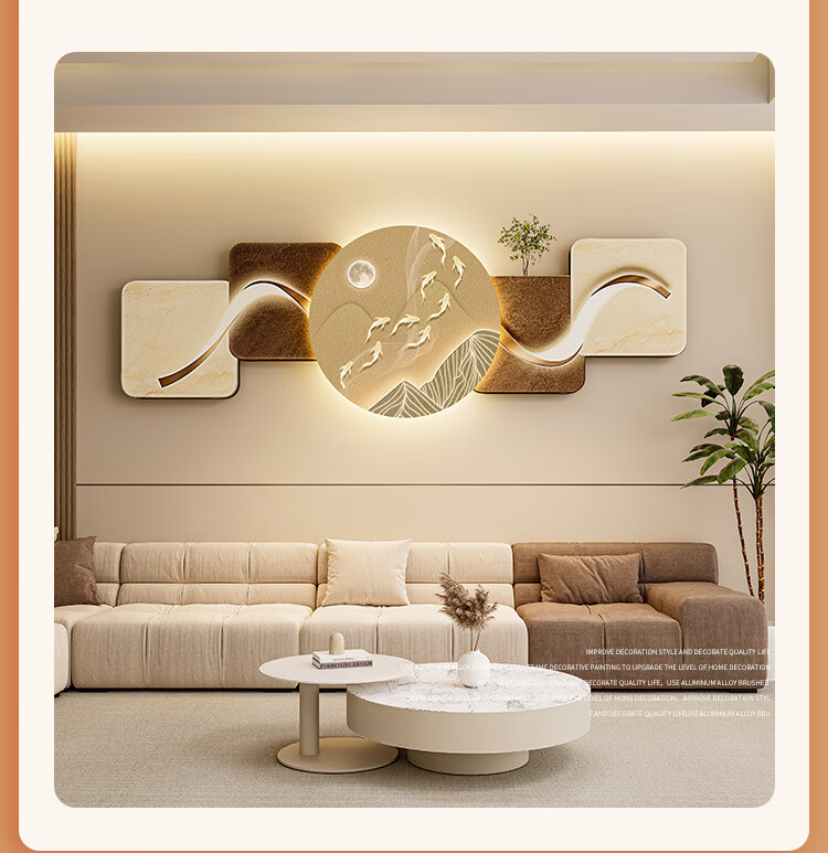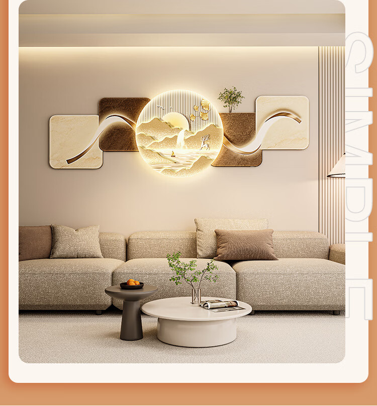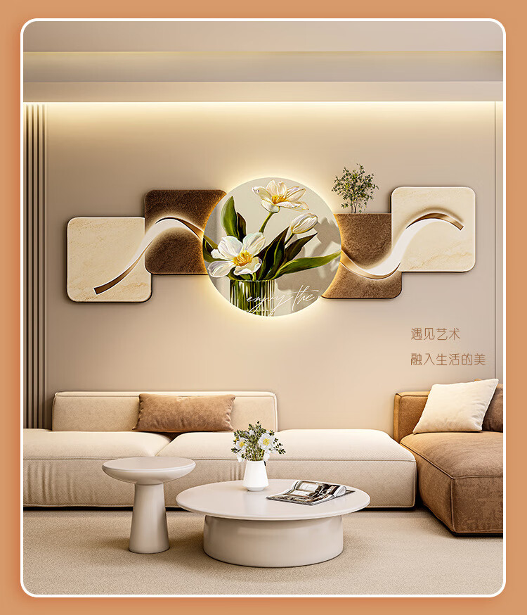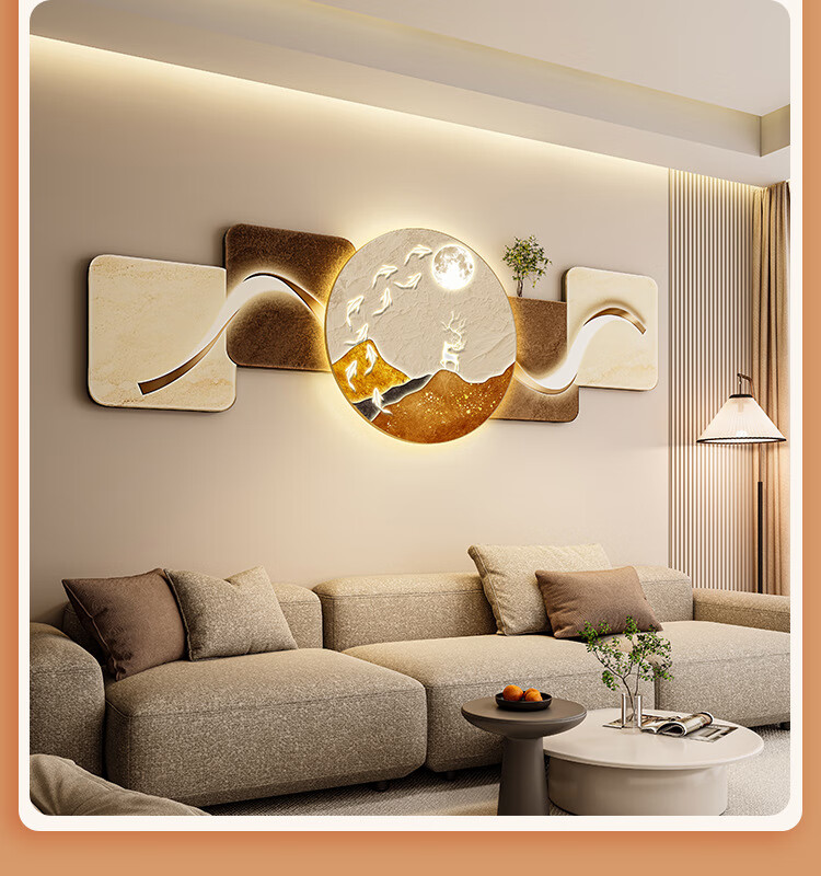 客厅装饰画现代简约沙发背景墙挂画LED灯光画侘寂风免打孔壁画 鎏金款-福鹿生财 遥控灯带充电宝大款70*210cm