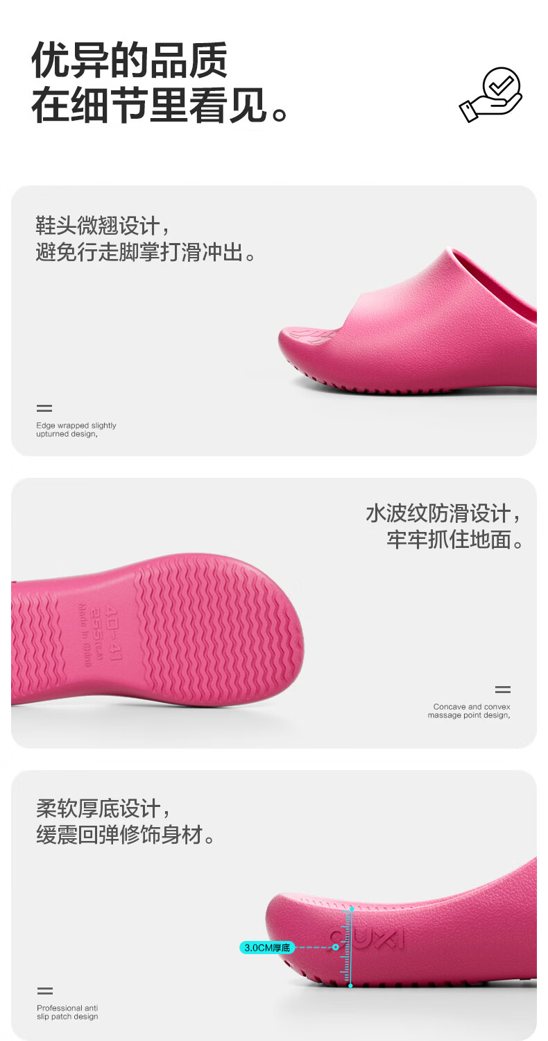 朴西居家拖鞋女2026夏季新款室内软底家用洗澡防滑防滑居家情侣拖鞋男 珍珠黑 【永恒暗夜黑】 44-45 建议拍大一码