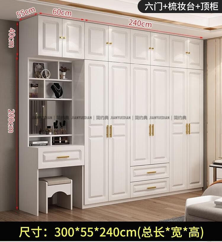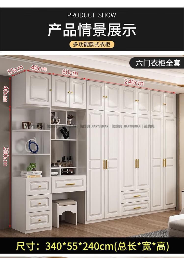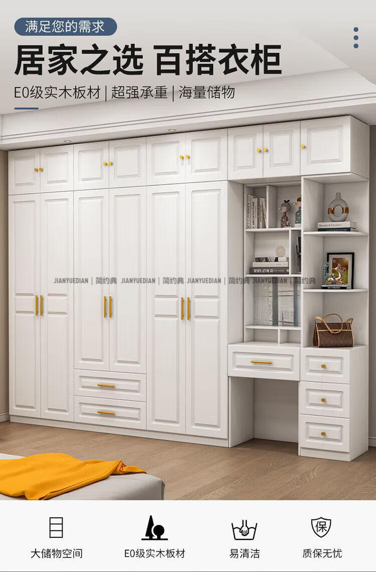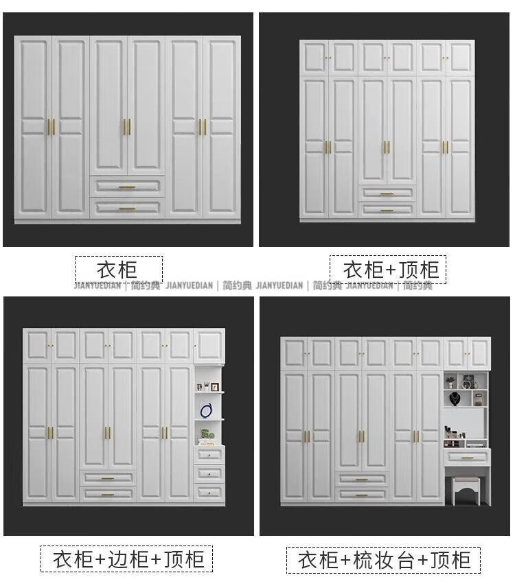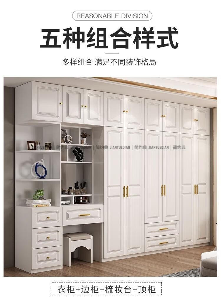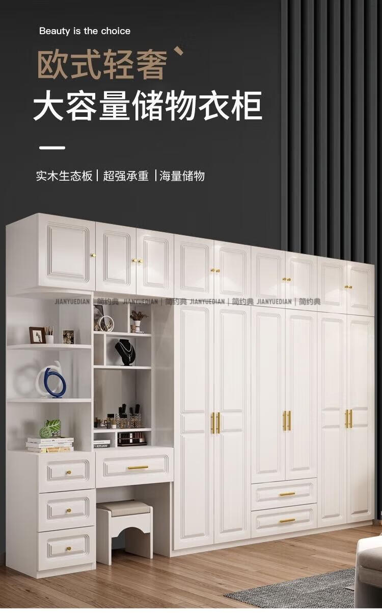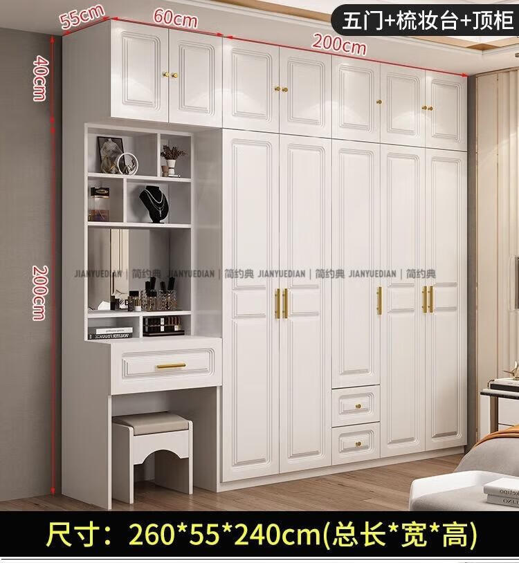 安森威2026新款实木衣柜现代简约卧室带梳妆台欧式轻奢大容量储物衣柜 生态板衣柜+梳妆台+顶柜+边柜 C6门【常年保】