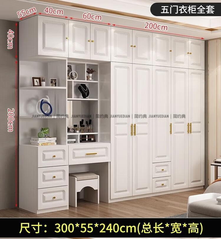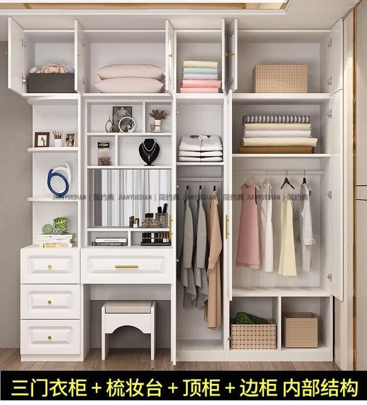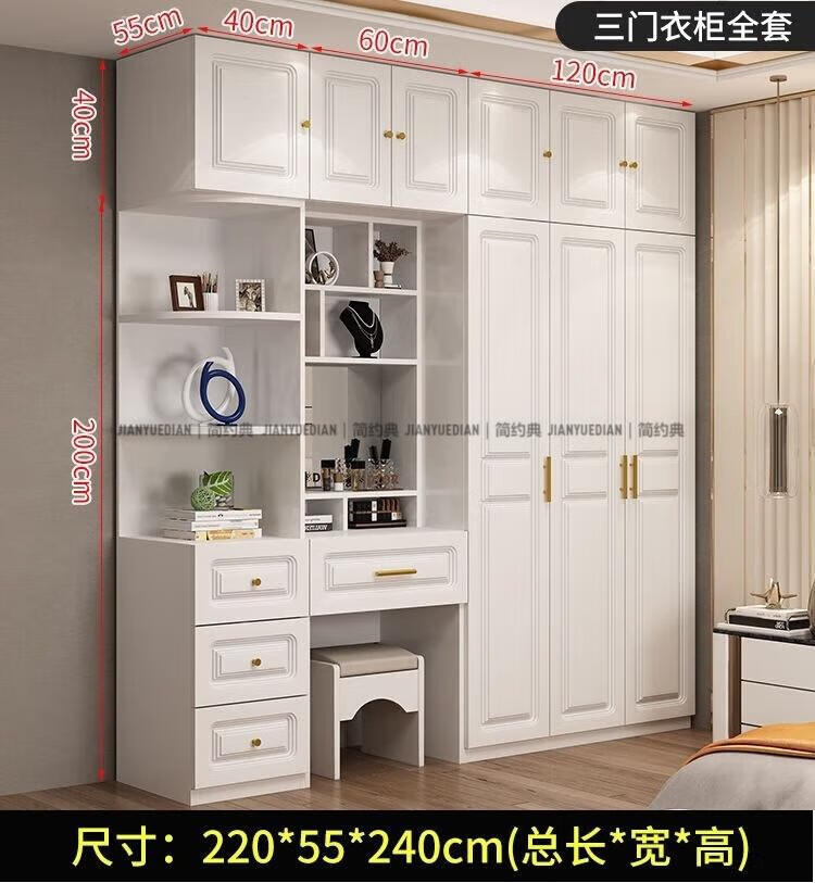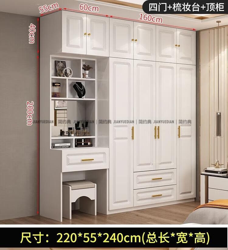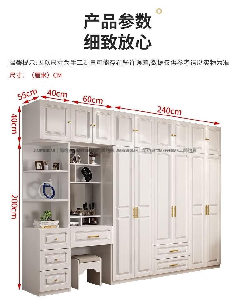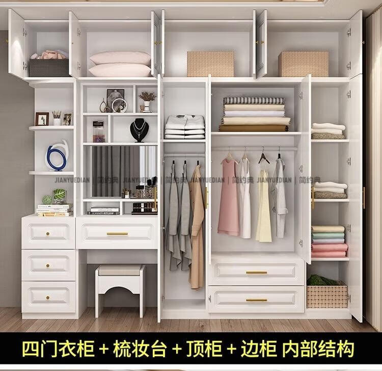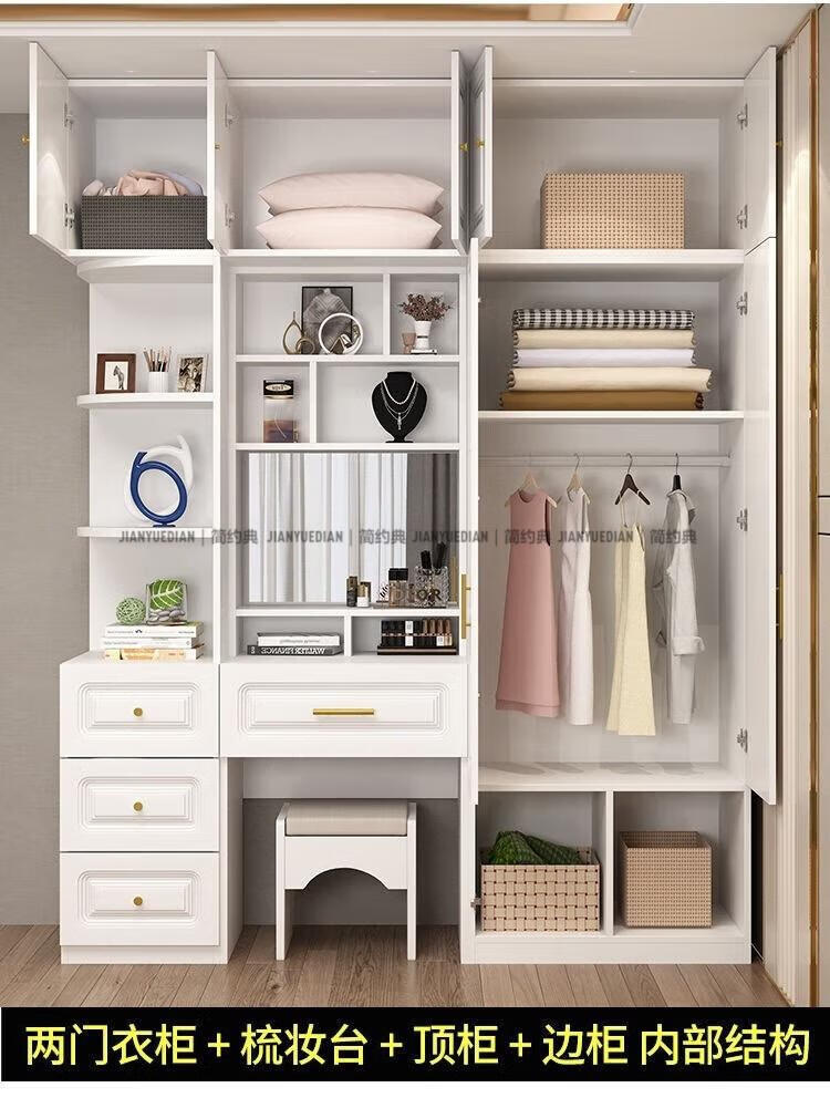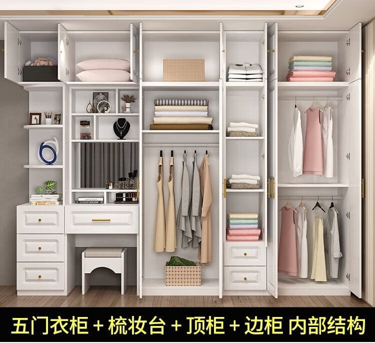 安森威2026新款实木衣柜现代简约卧室带梳妆台欧式轻奢大容量储物衣柜 生态板衣柜+梳妆台+顶柜+边柜 C6门【常年保】