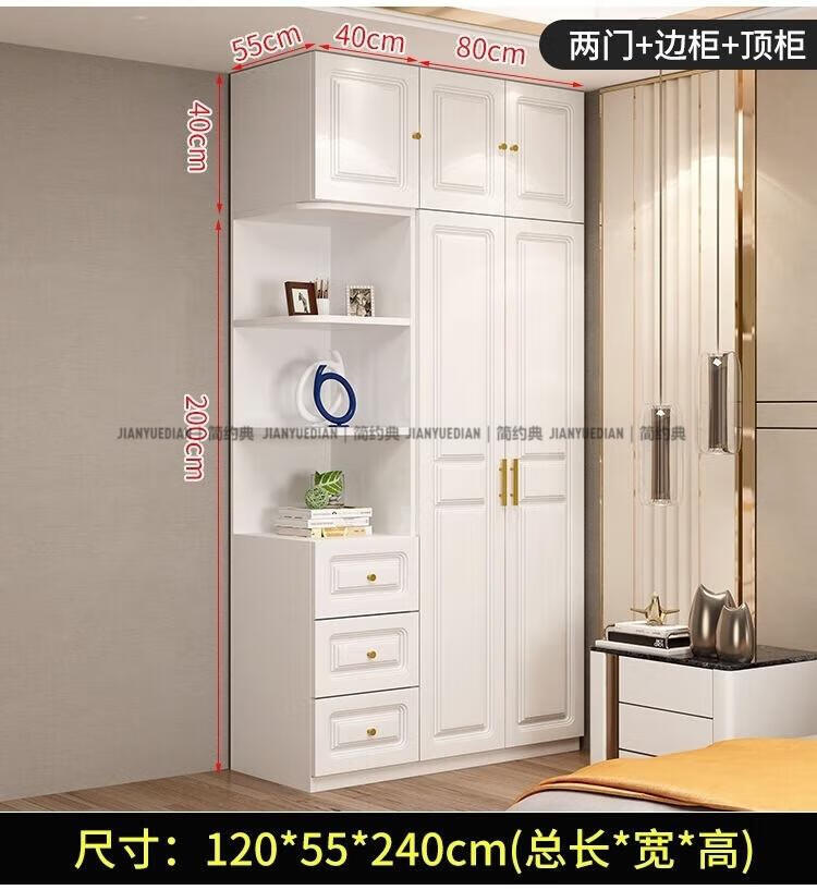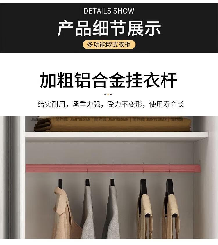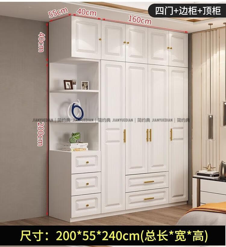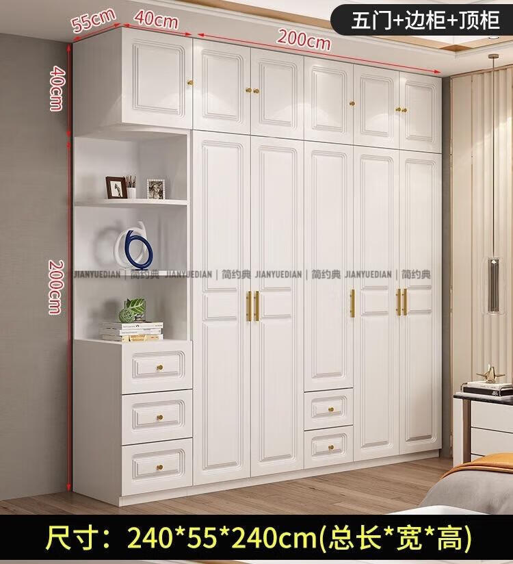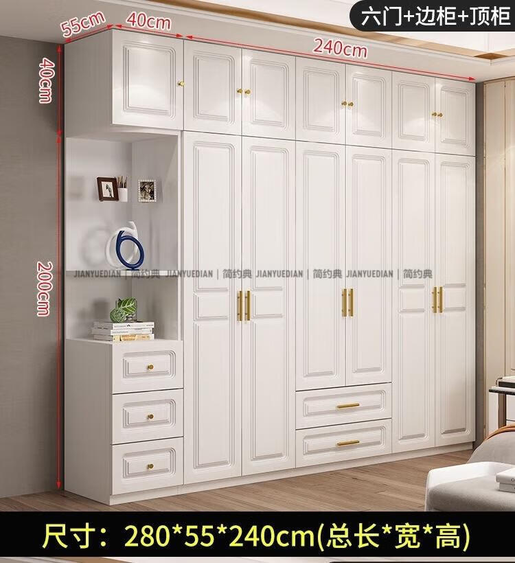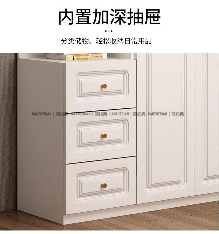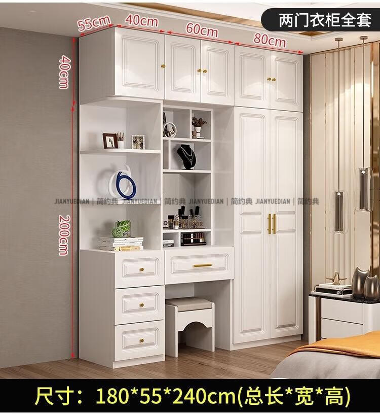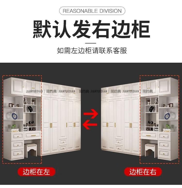 安森威2026新款实木衣柜现代简约卧室带梳妆台欧式轻奢大容量储物衣柜 生态板衣柜+梳妆台+顶柜+边柜 C6门【常年保】