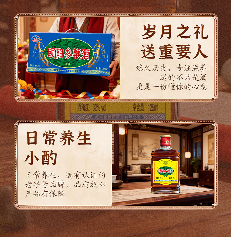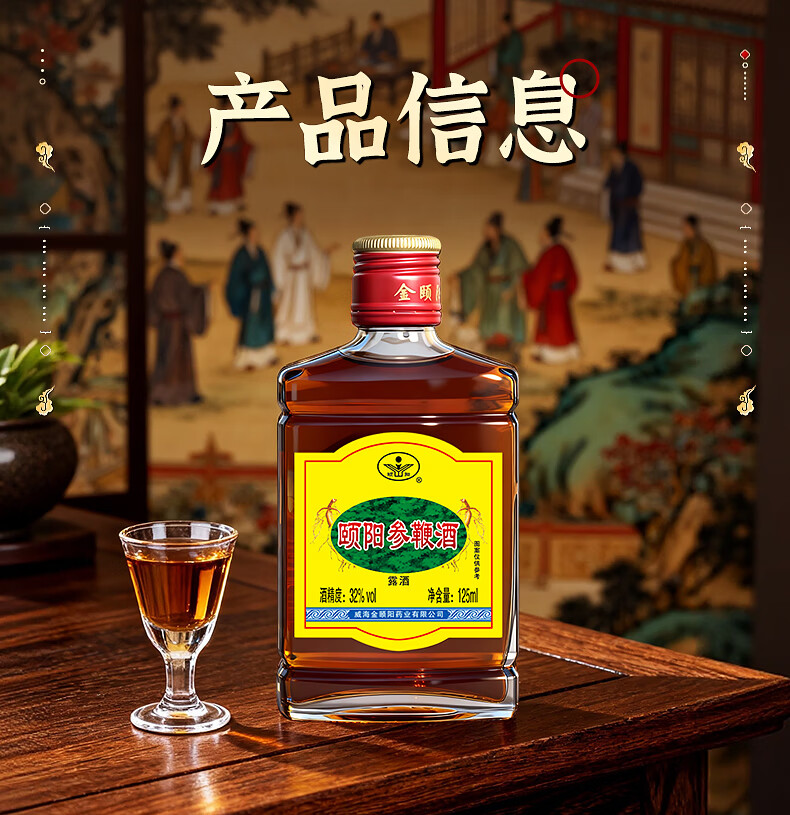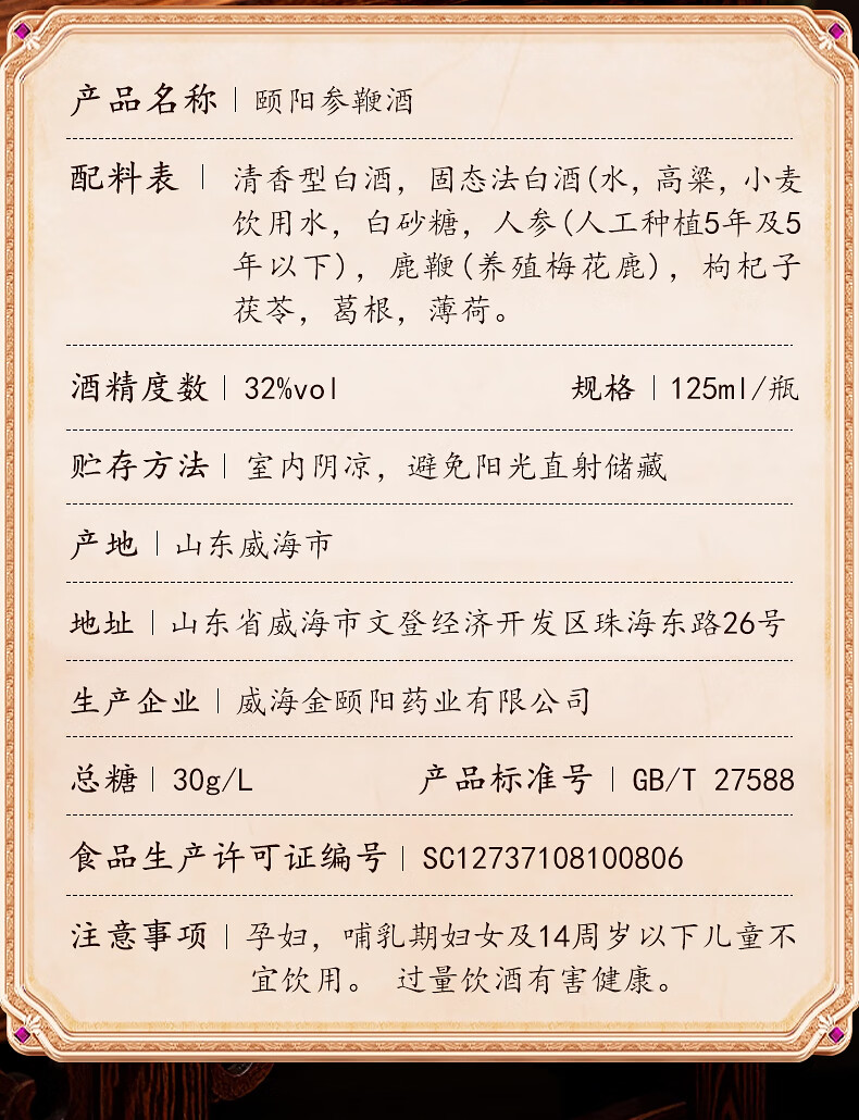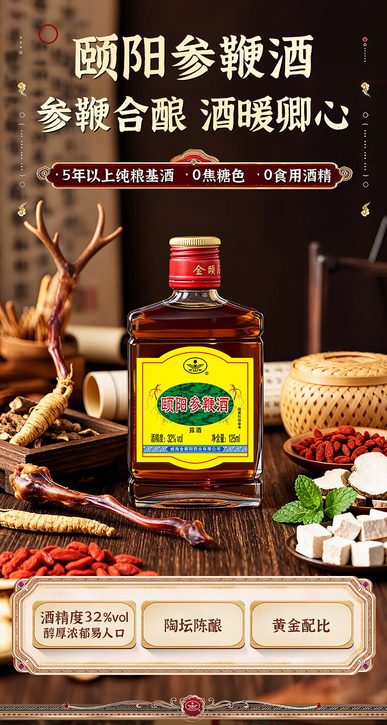 颐阳山东老字号正宗威海参鞭酒32度人参鹿鞭枸杞酒滋补养生小酒 32度 125mL 6瓶 六瓶超值组合