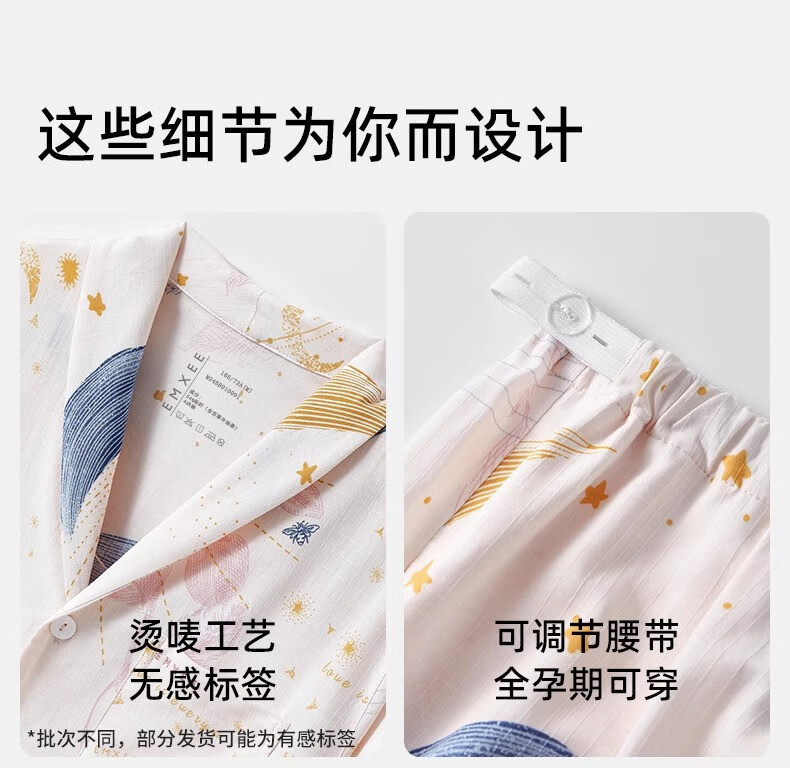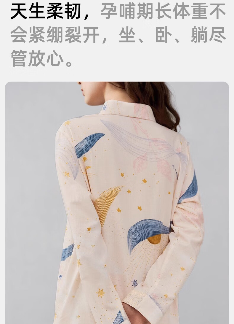 嫚熙(EMXEE)春夏季孕妇哺乳待产睡衣产后月子服产妇产前家居服 星河物语【两件套无哺乳口纱罗】 L【7A级抗菌,适穿115-135斤】