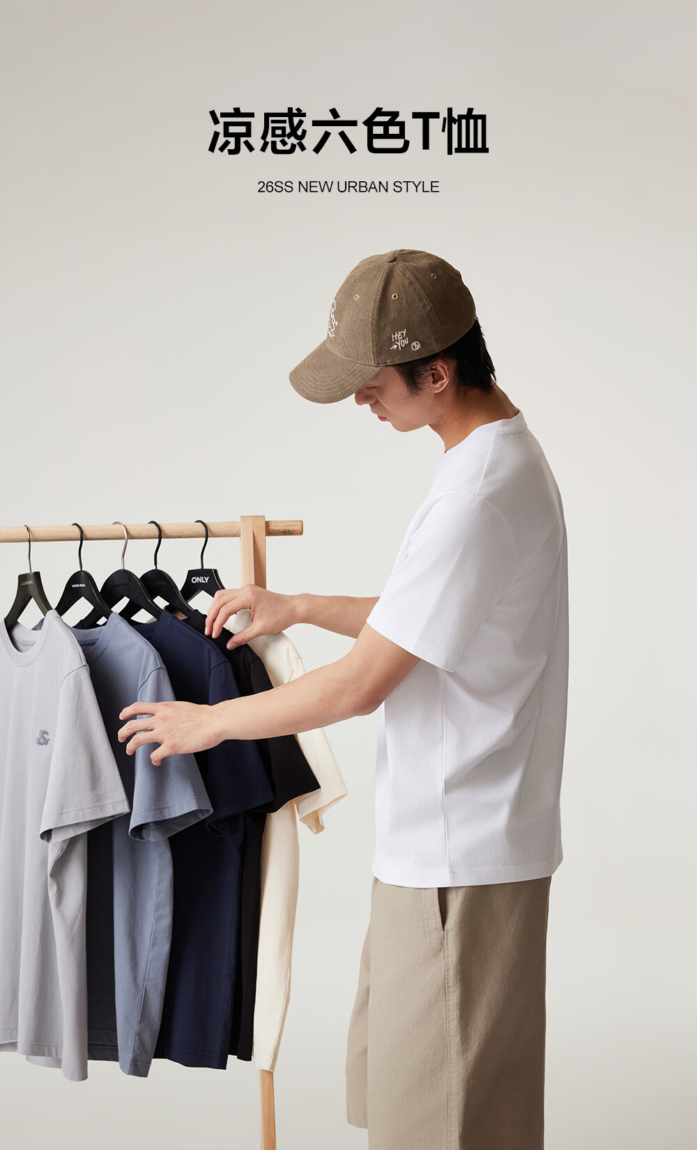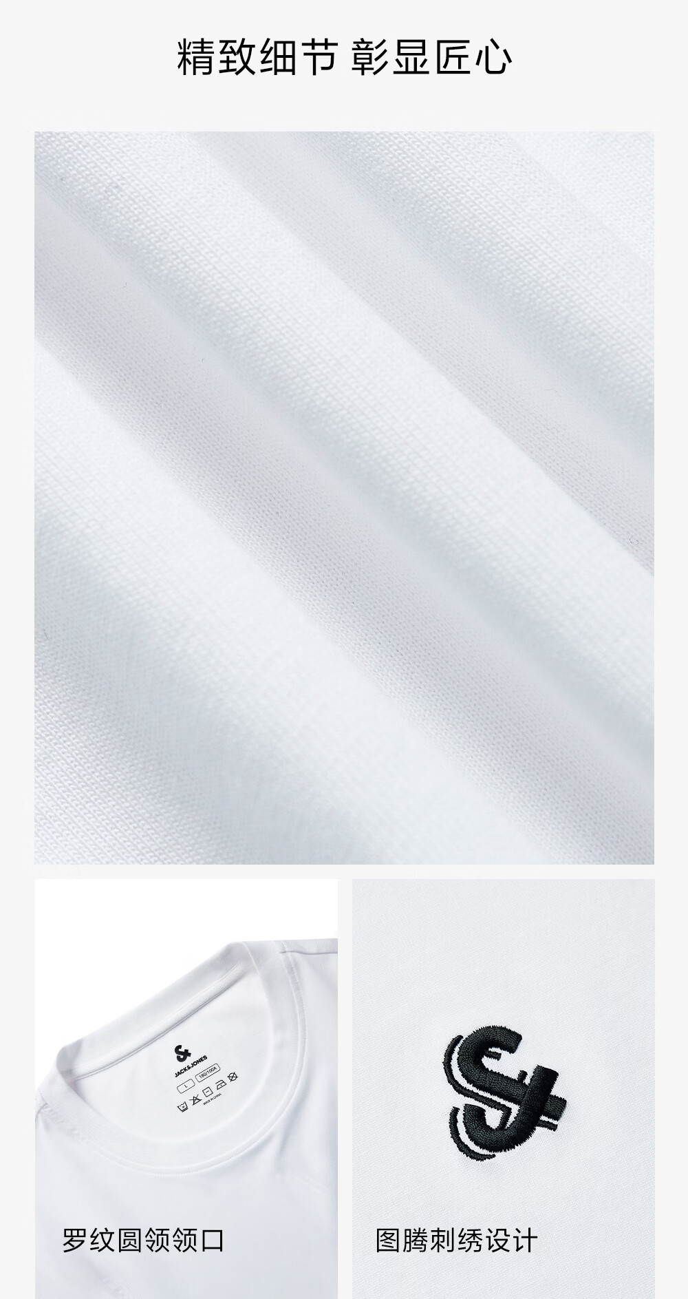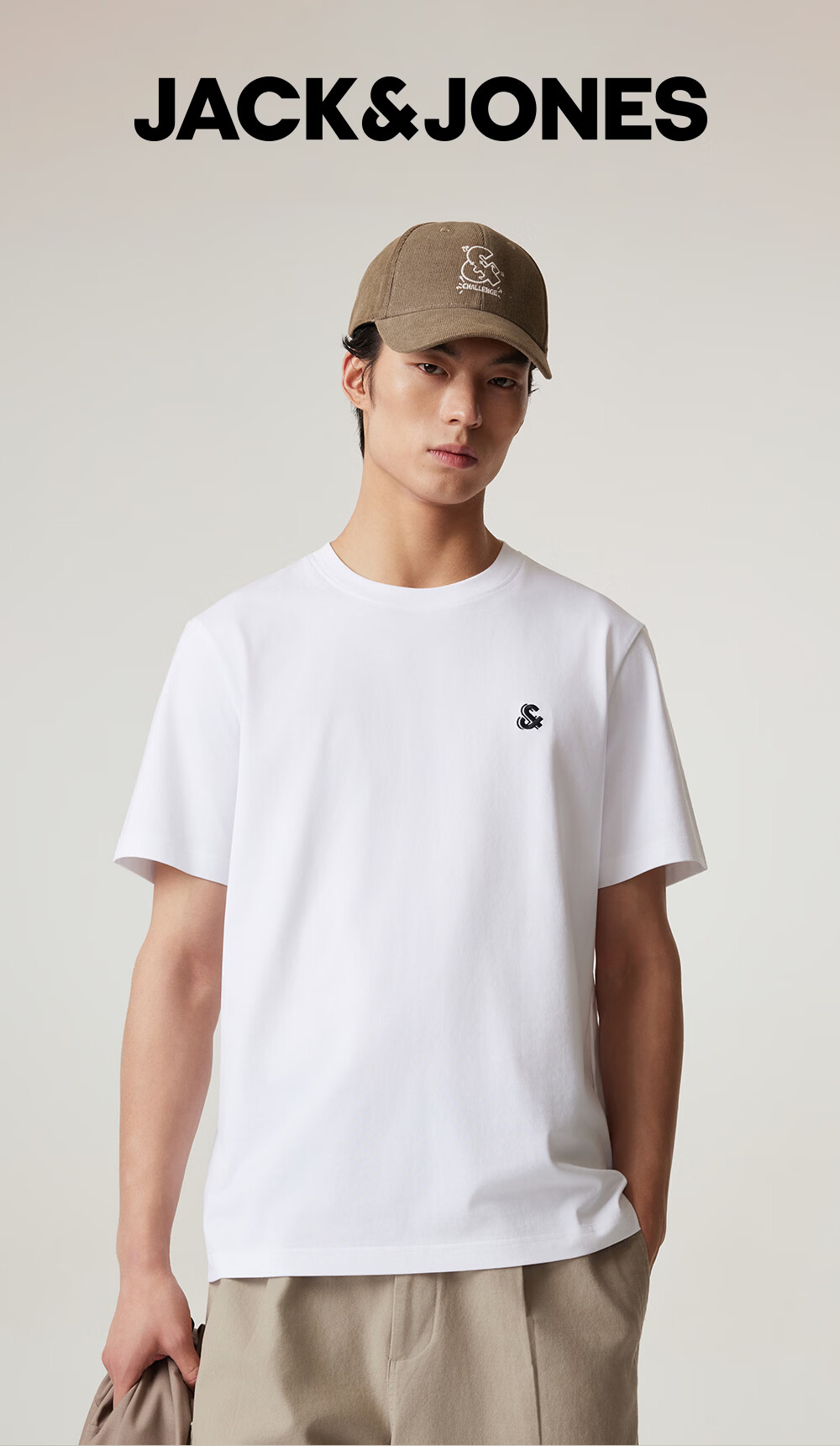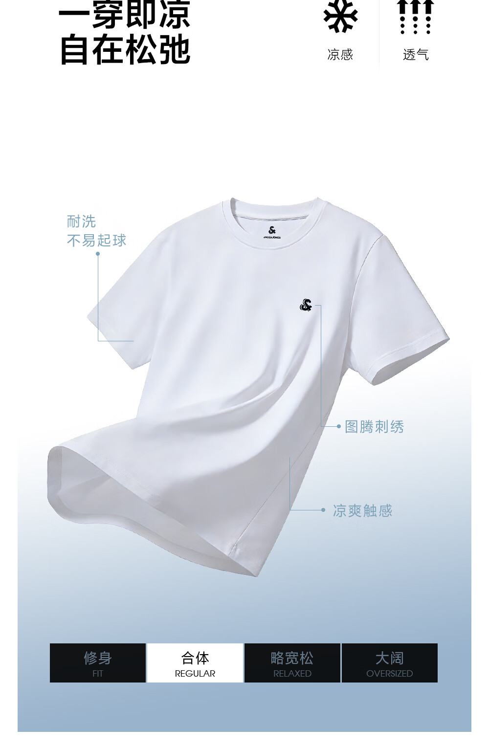 杰克·琼斯(JACK&JONES)26年男装新款【凉感】短袖T恤男士简约纯色透气打底高端耐洗半袖 A06本白色 常规 M (175)