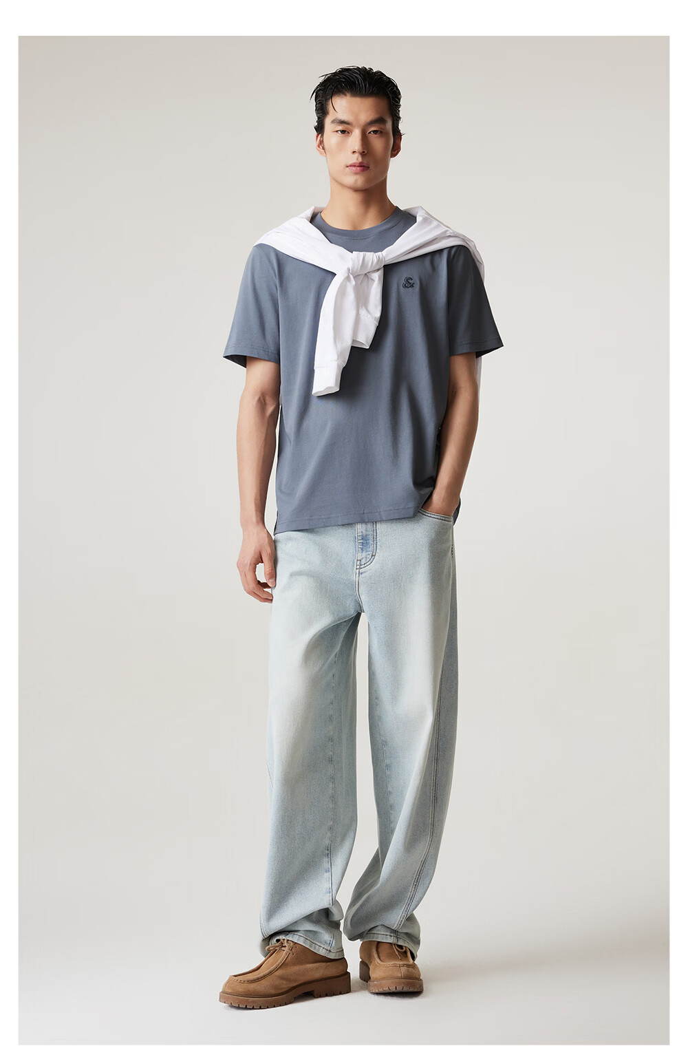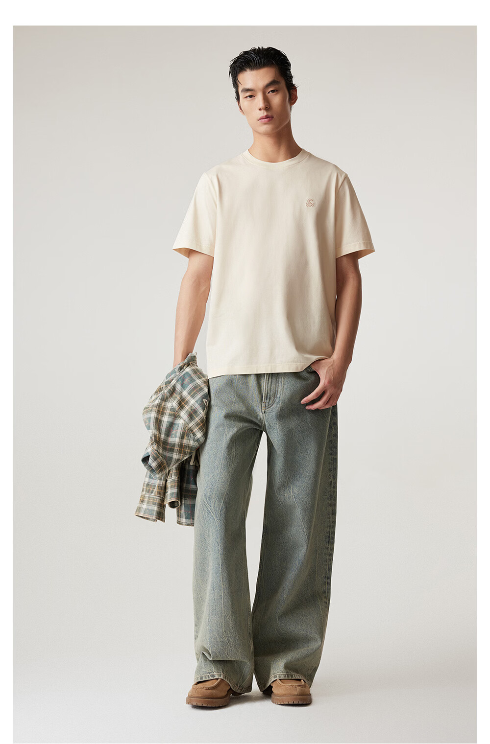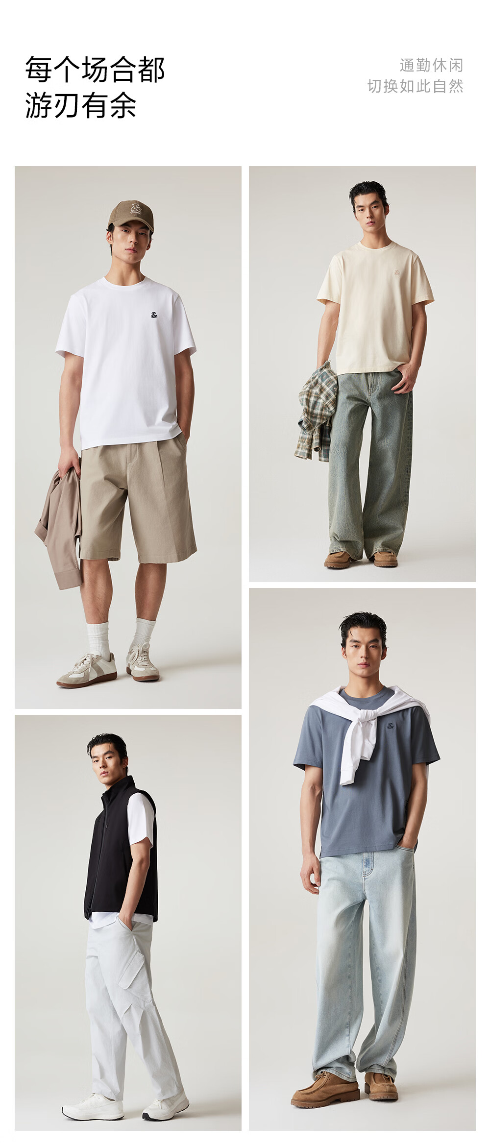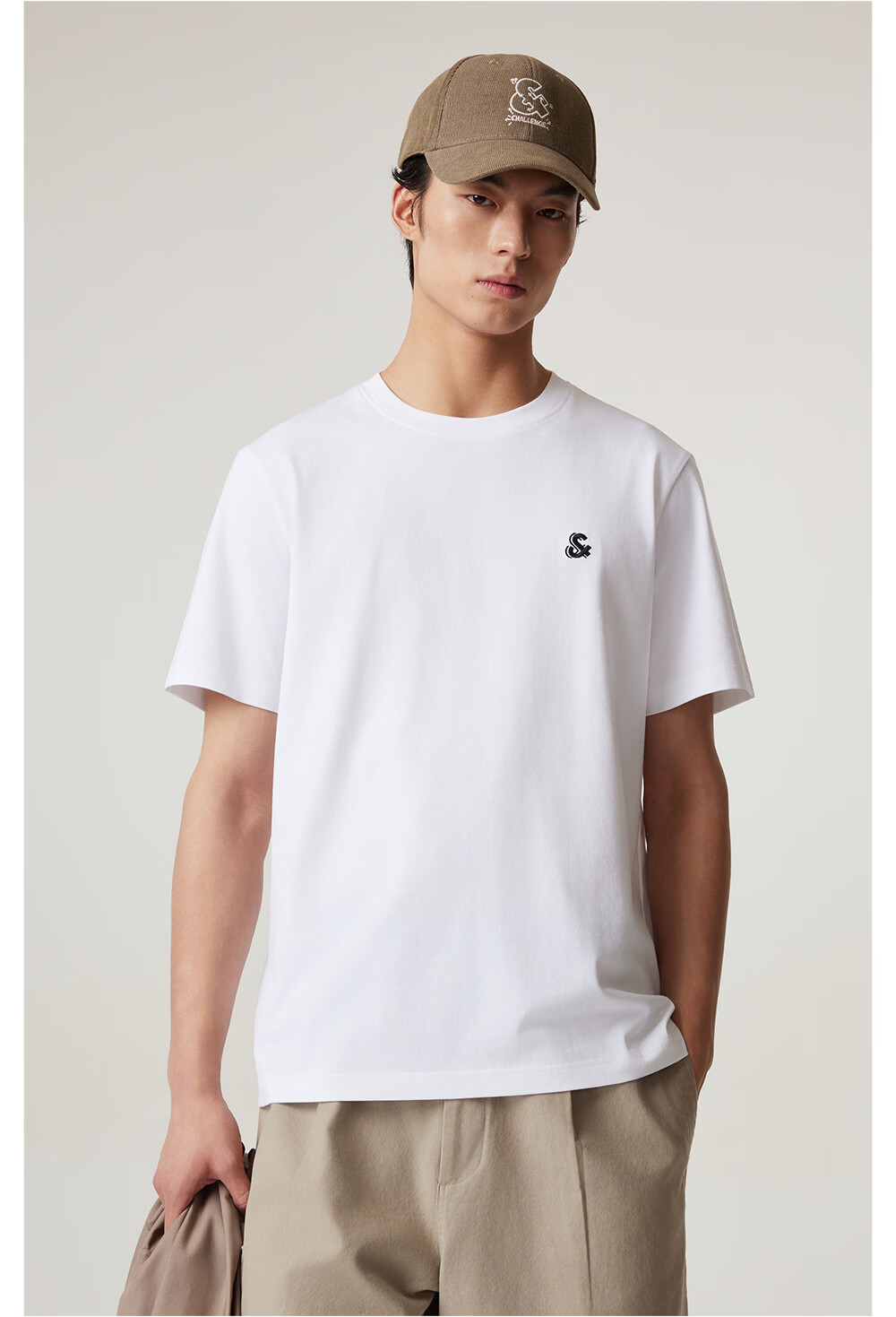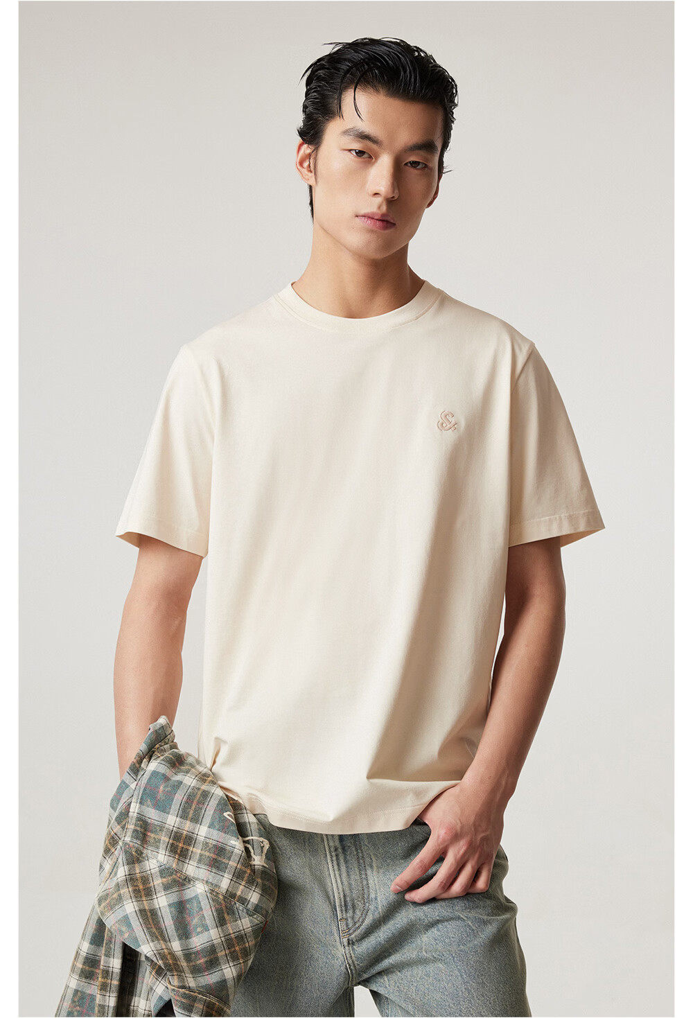 杰克·琼斯(JACK&JONES)26年男装新款【凉感】短袖T恤男士简约纯色透气打底高端耐洗半袖 A06本白色 常规 M (175)