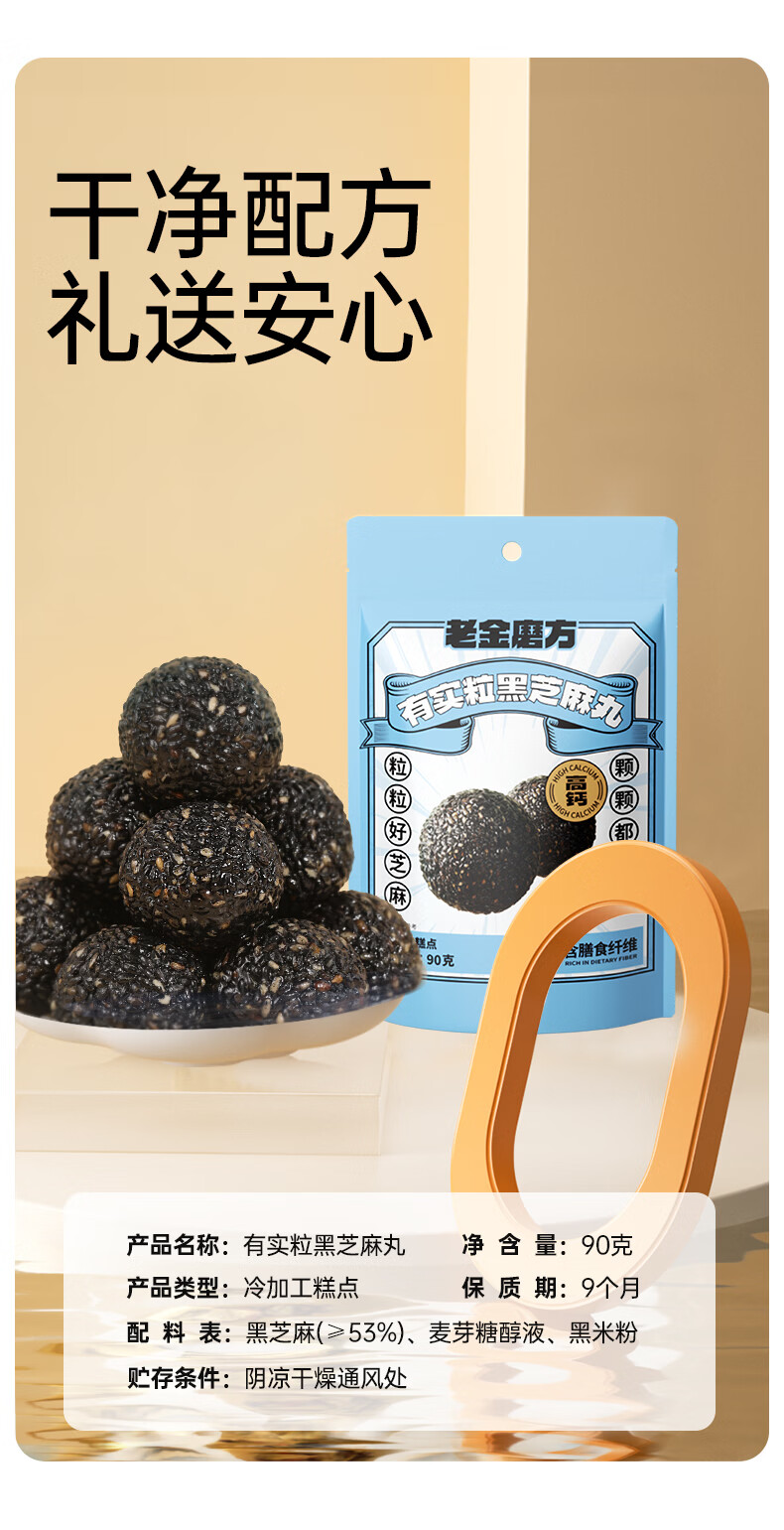 老金磨方颗粒黑芝麻丸九蒸九晒高钙滋补孕妇零食糕点 有实粒黑芝麻丸 650g*1袋