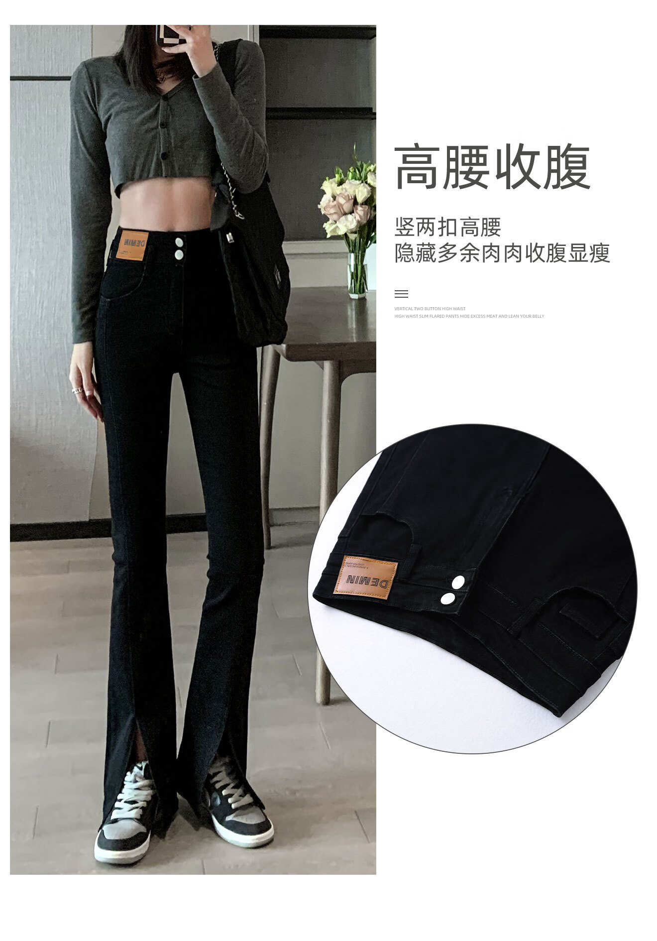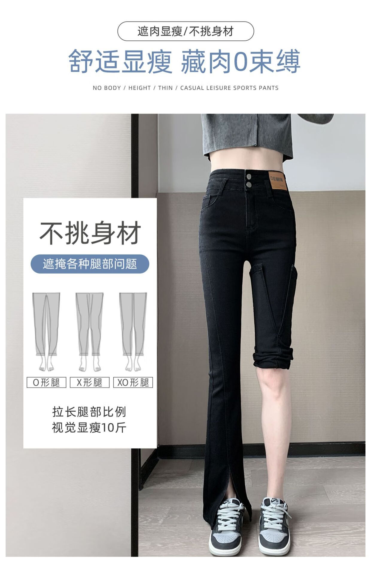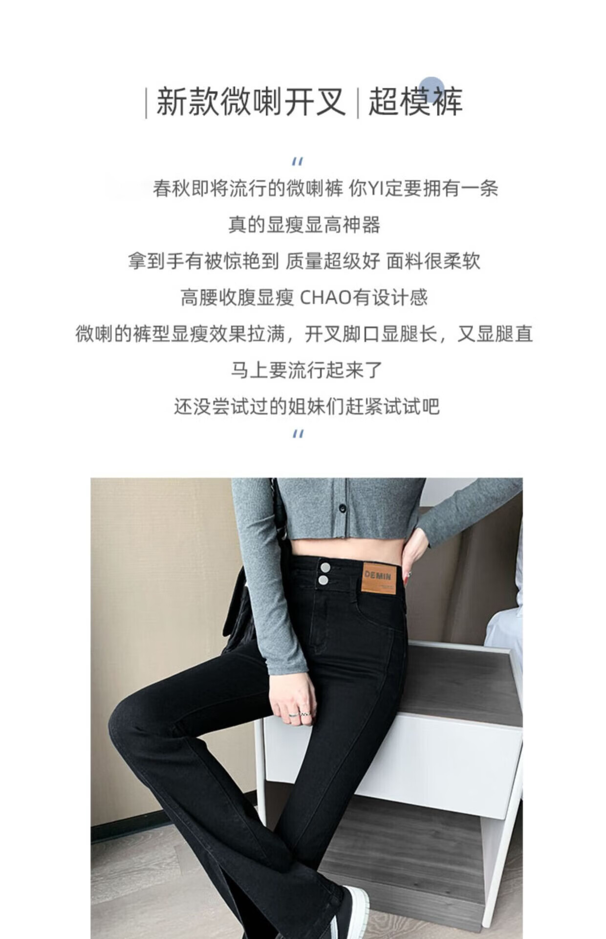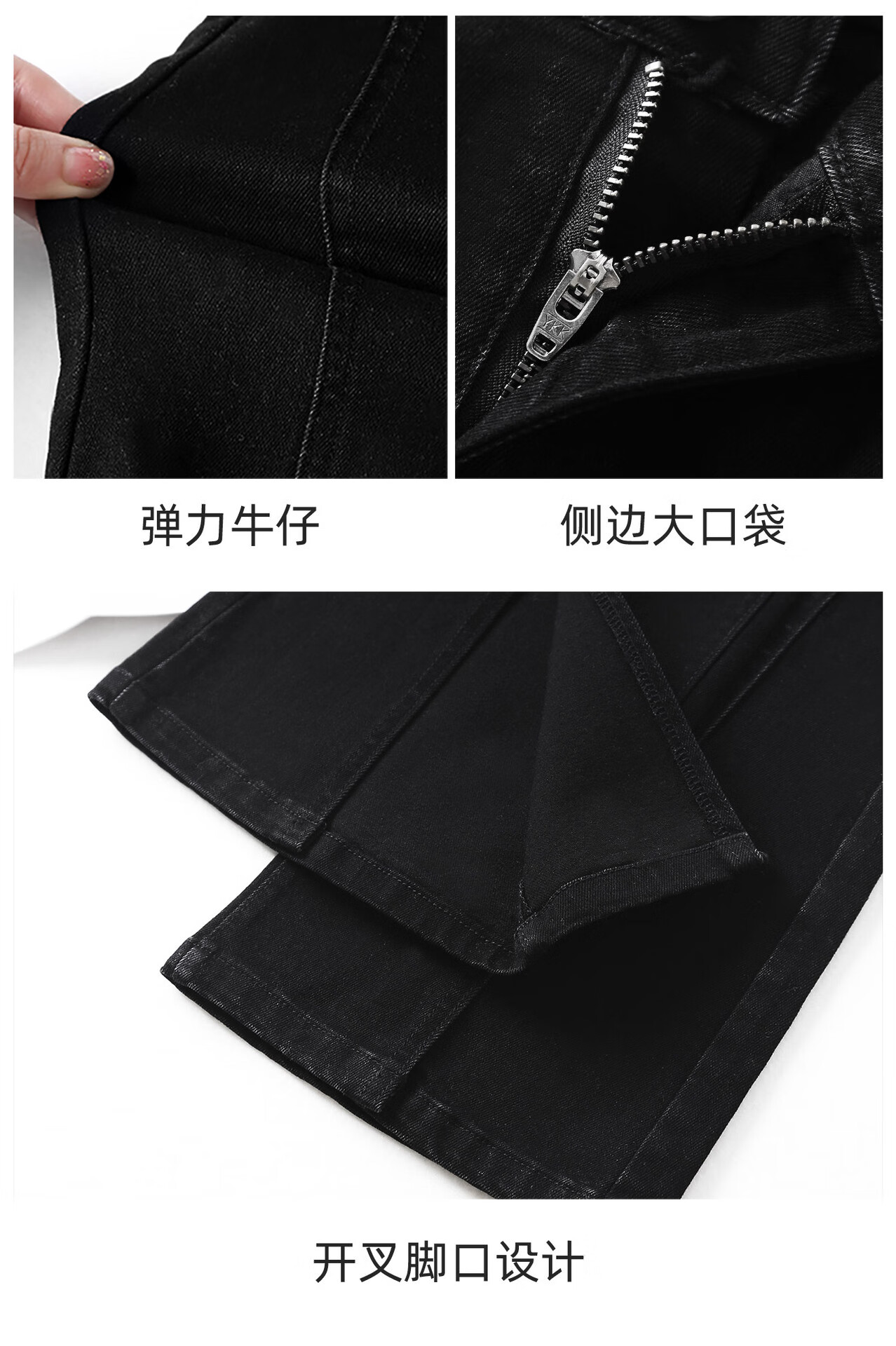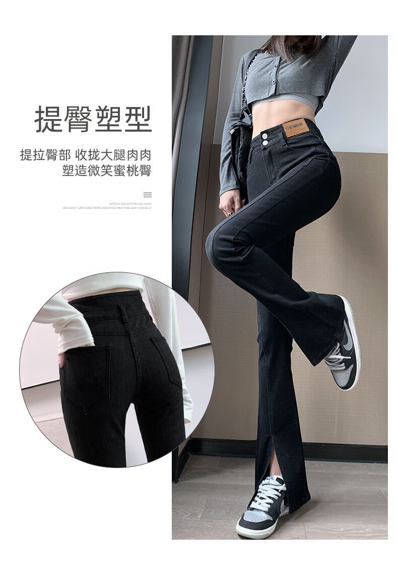 浪莎牛仔裤女新款开叉微喇叭裤高腰收腹提臀显瘦小个子拖地裤 黑色 【常规款】 30 【推荐126-130斤】