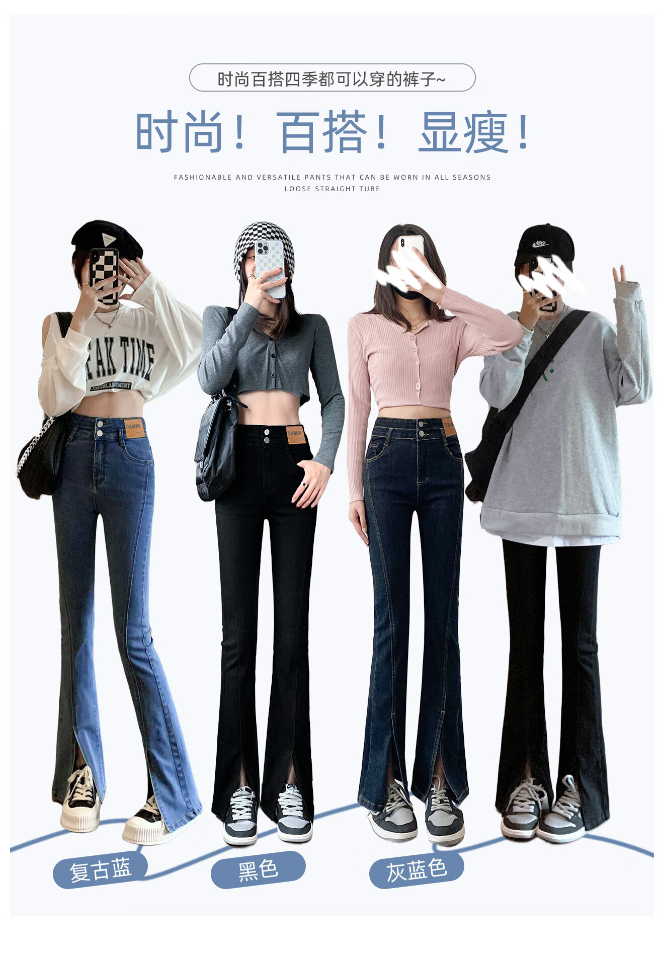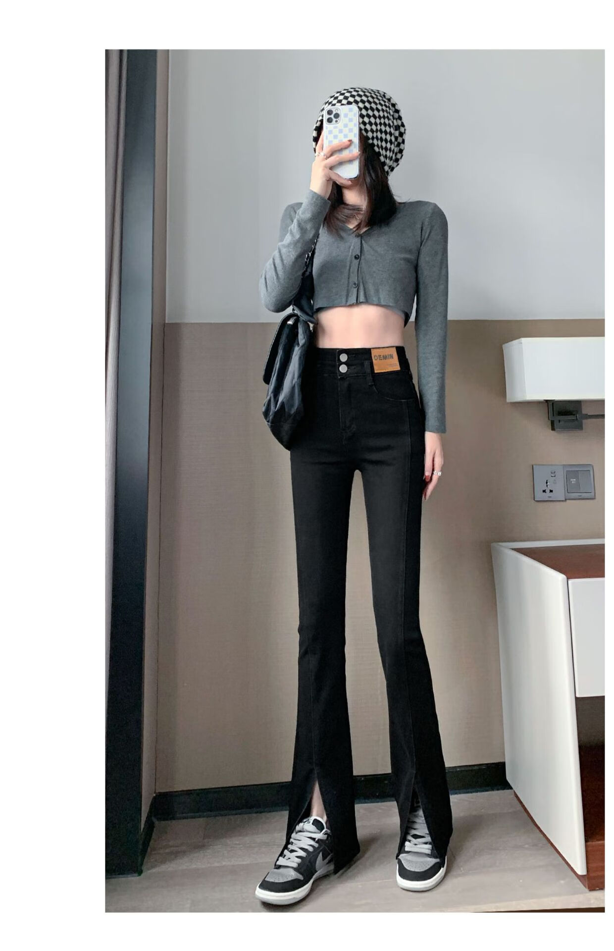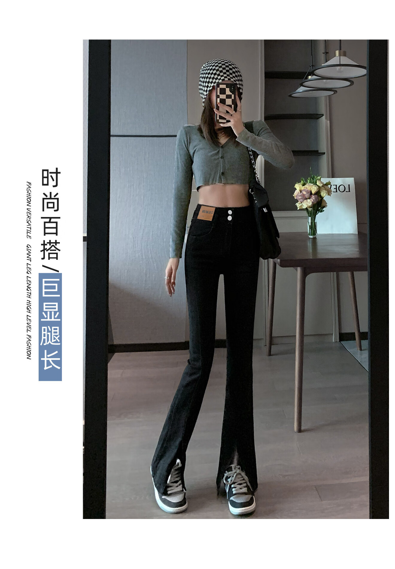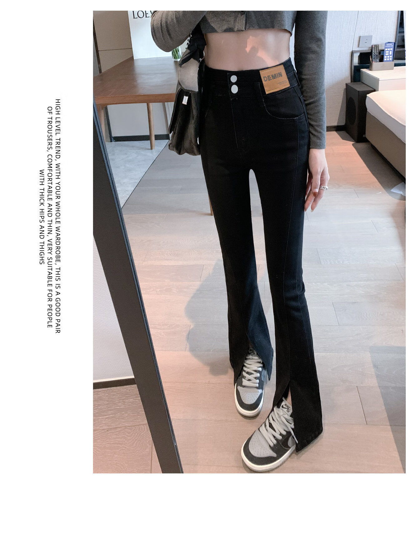 浪莎牛仔裤女新款开叉微喇叭裤高腰收腹提臀显瘦小个子拖地裤 黑色 【常规款】 30 【推荐126-130斤】