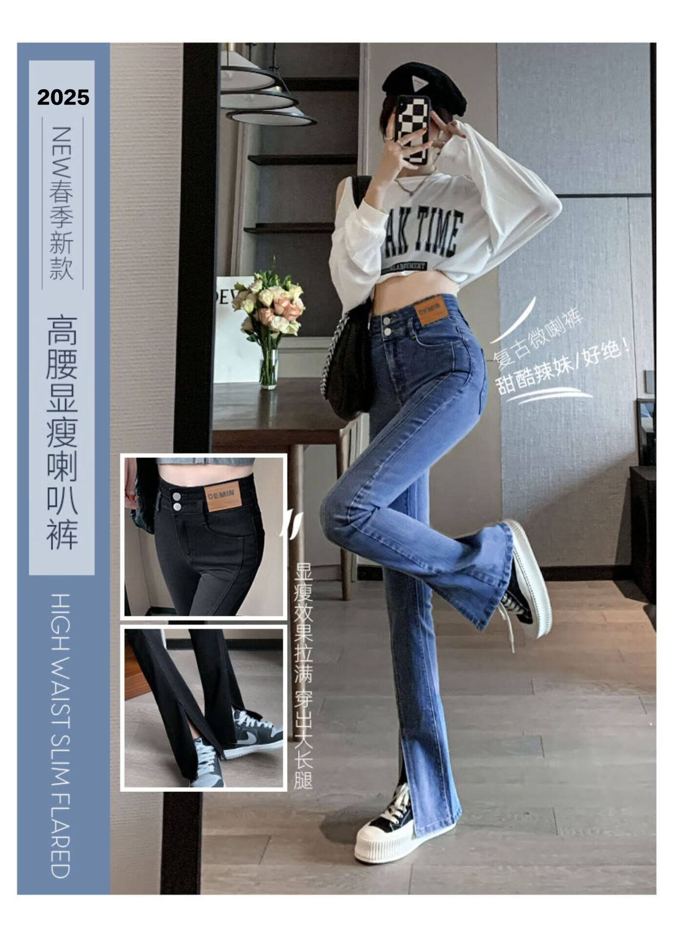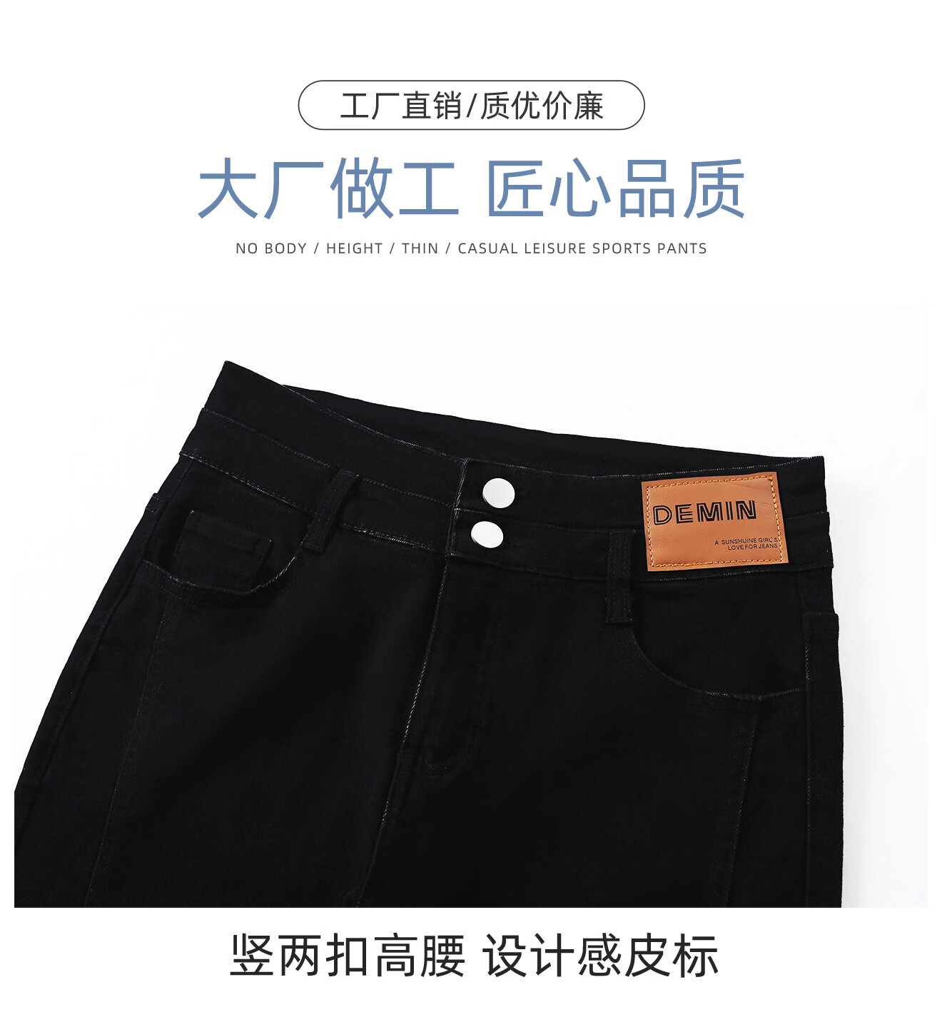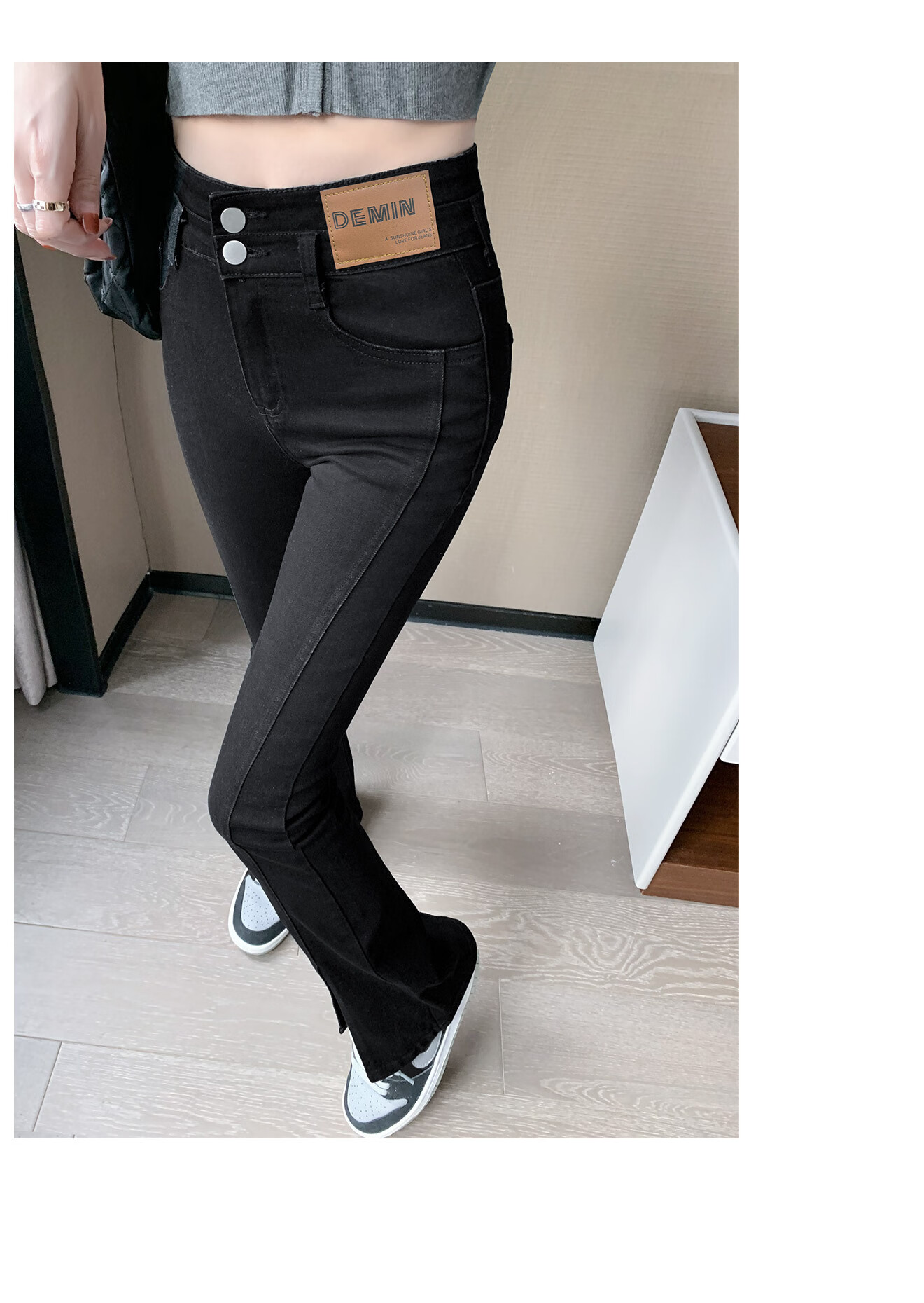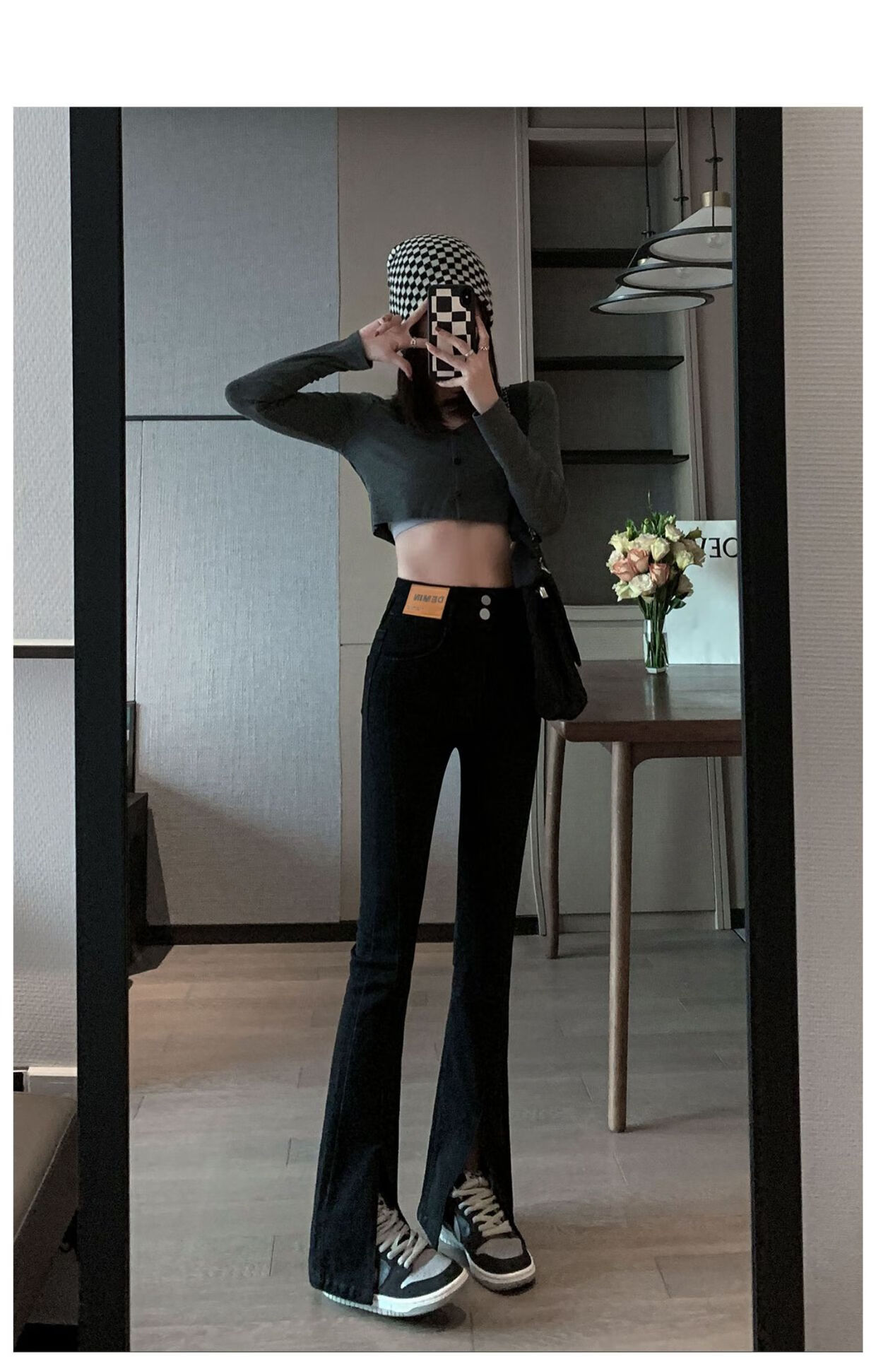 浪莎牛仔裤女新款开叉微喇叭裤高腰收腹提臀显瘦小个子拖地裤 黑色 【常规款】 30 【推荐126-130斤】