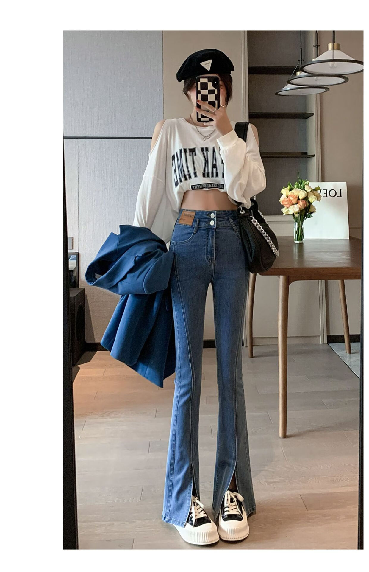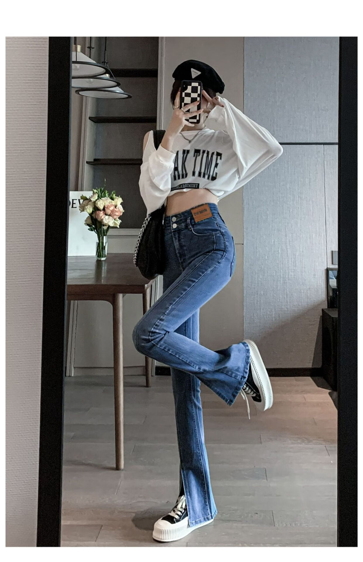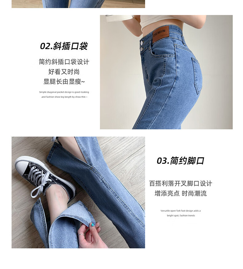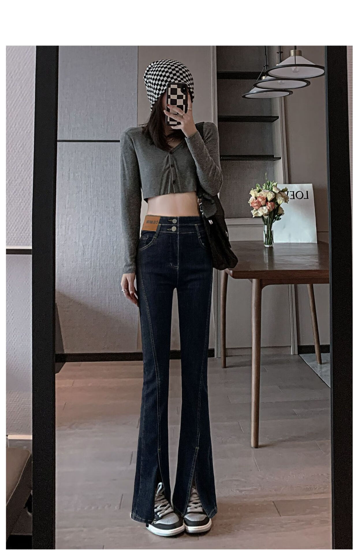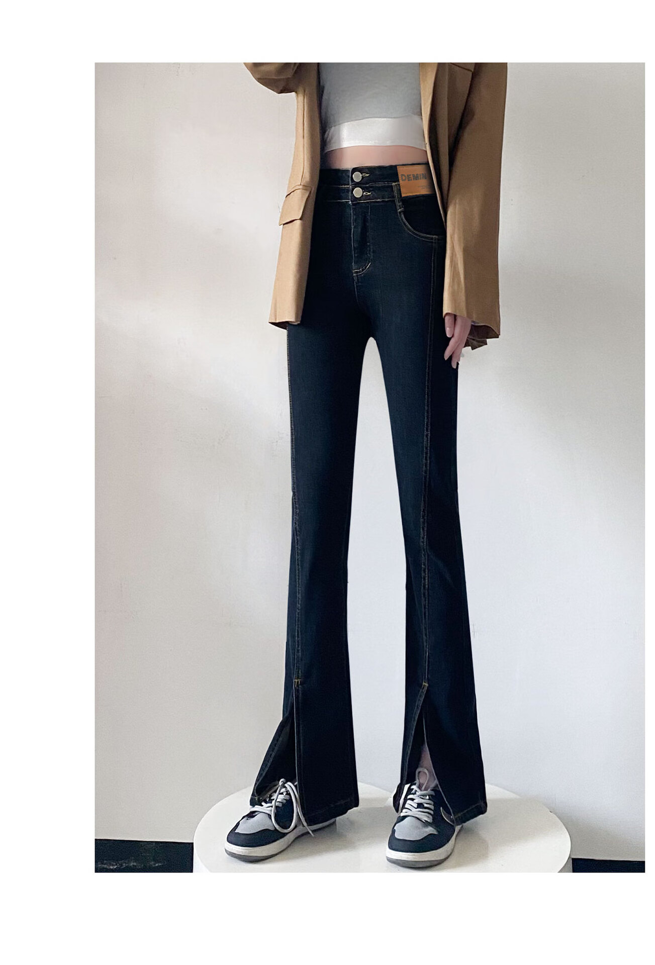 浪莎牛仔裤女新款开叉微喇叭裤高腰收腹提臀显瘦小个子拖地裤 黑色 【常规款】 30 【推荐126-130斤】