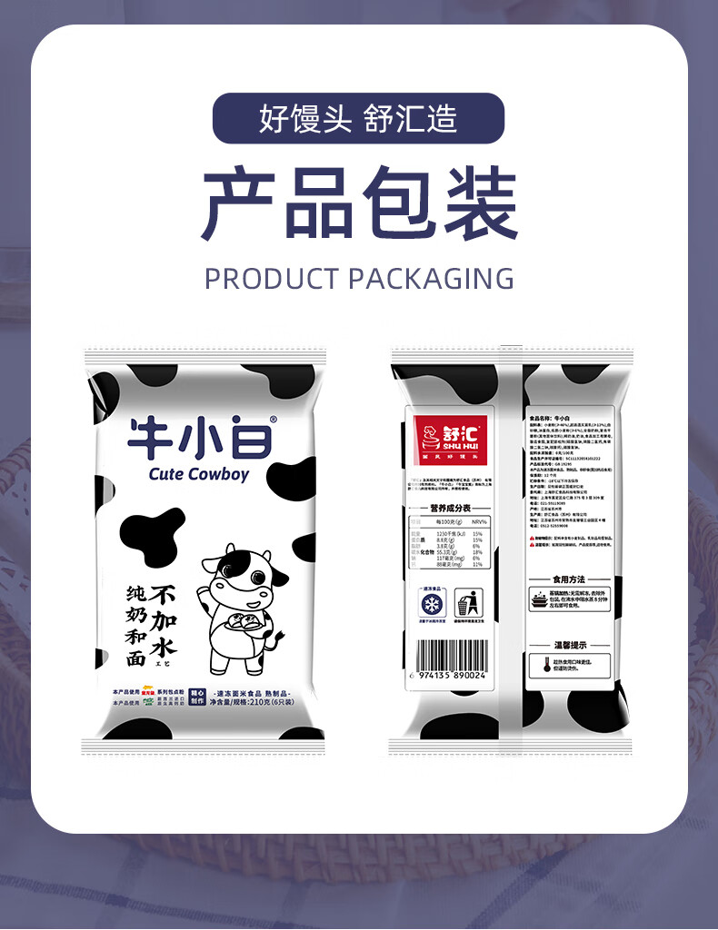 舒汇(SHUHUI)牛小白牛奶手撕红糖馒头紫米紫薯包儿童学生家庭早餐冷冻面点 紫米紫薯包390g*1包+牛小白210g*2包+红糖馒头510g1包