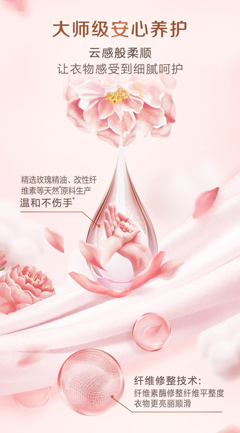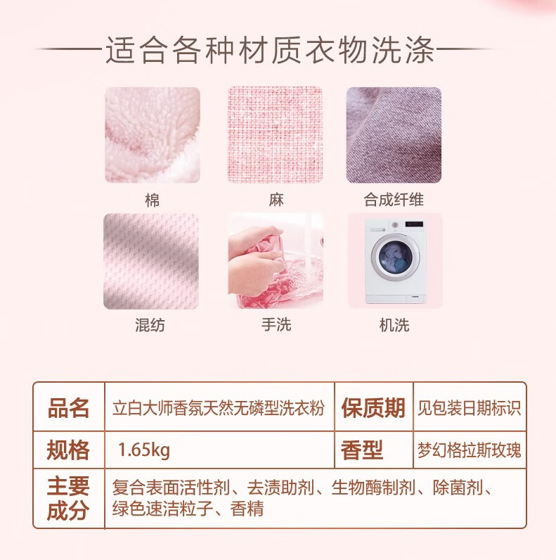 立白大师香氛洗衣液玫瑰花香机洗手洗衣液柔顺护衣洁净护色 【家庭畅享装】到手13.8斤