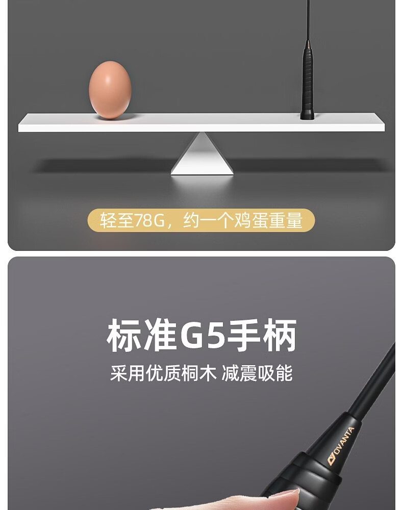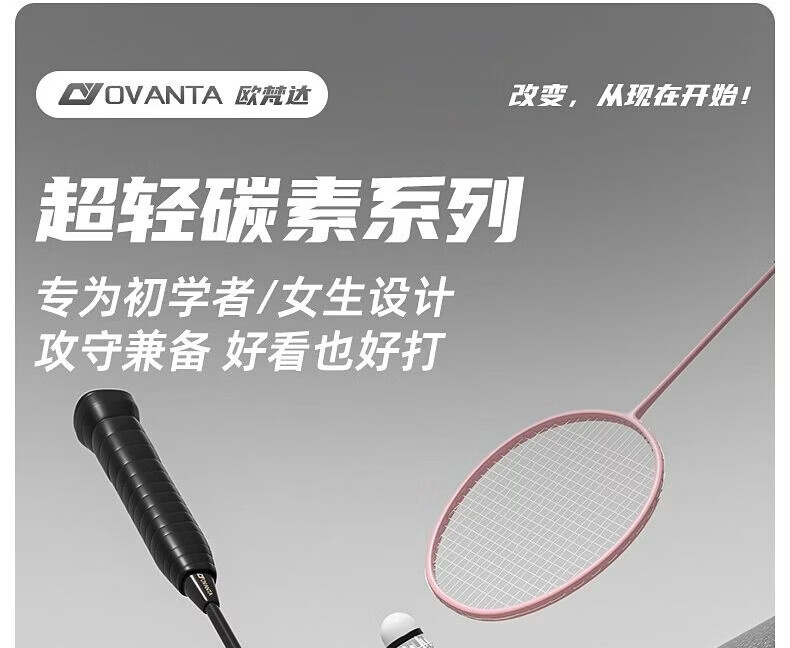 欧梵达羽毛球拍碳素纤维超轻耐打对拍初学者套装含球专业4U儿童家庭入门 【高级经典黑白双拍】-赠3球2手胶-4U