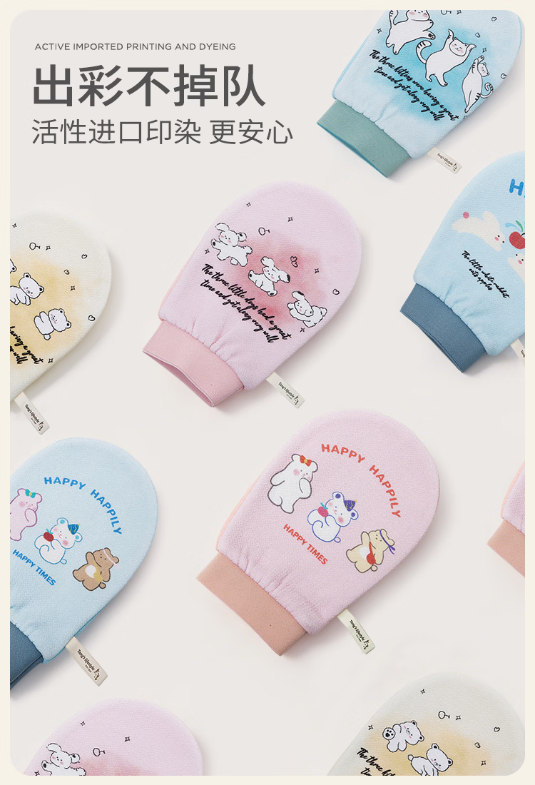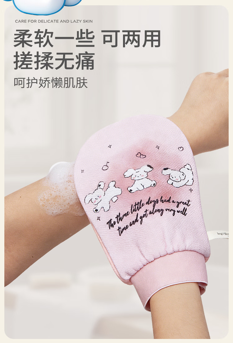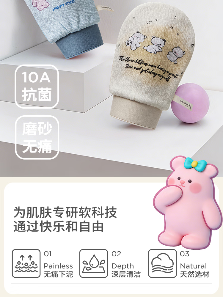 老汤小森林搓澡巾女士无痛下泥搓澡神器儿童洗澡巾10A抗菌搓背手套-粉