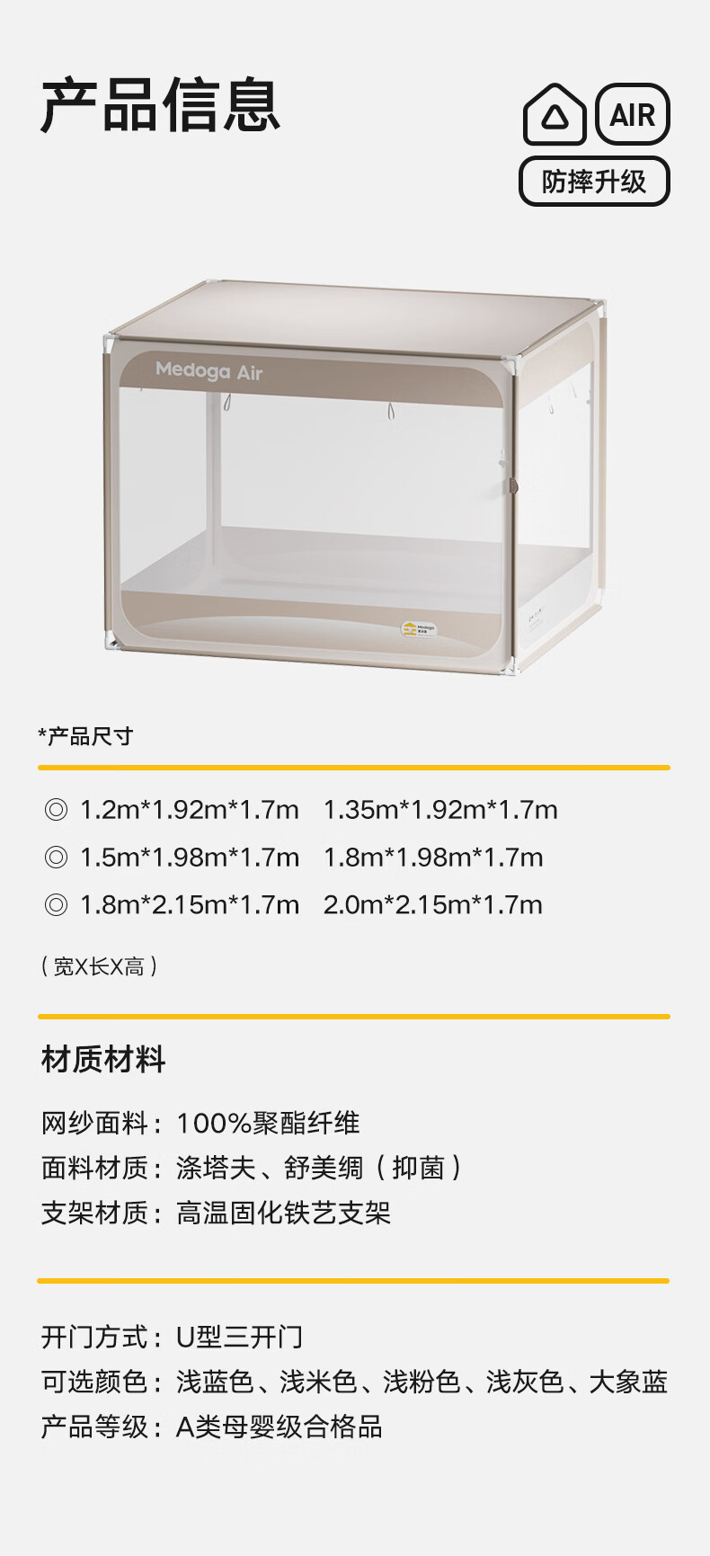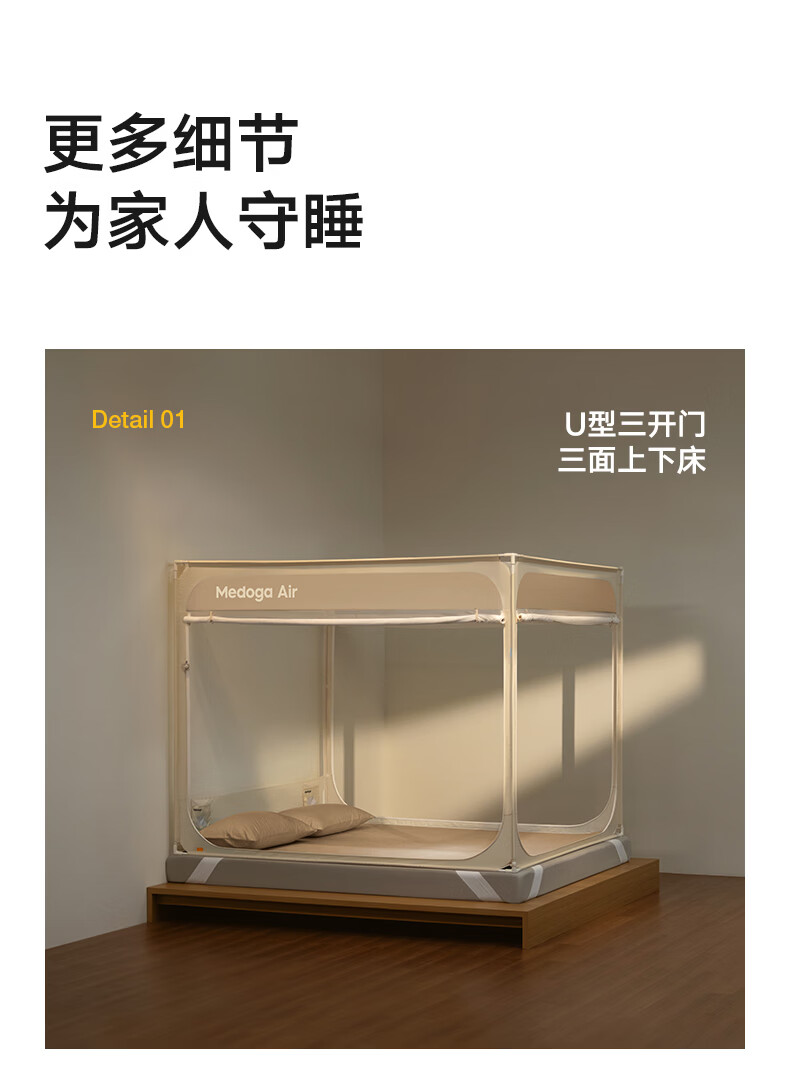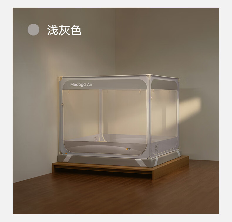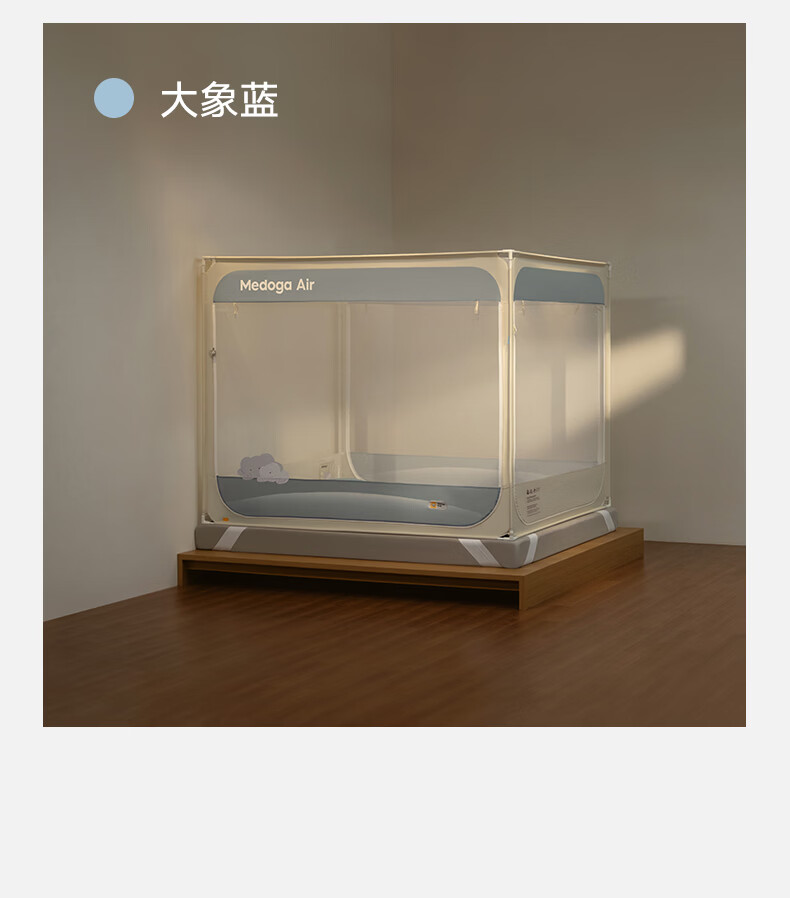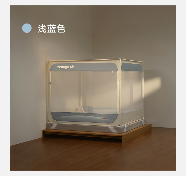 美朵嘉(MEDOGA)26新款安睡舱2代Air防摔蚊帐架A类家用抗菌宝宝睡眠三开门支架帐 Air2代 浅蓝色【单独蚊帐】首创螺纹三通 适用1.8米床【全系支架升级16mm】