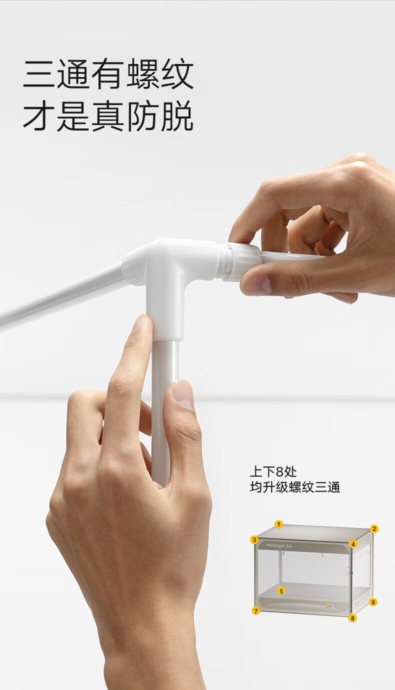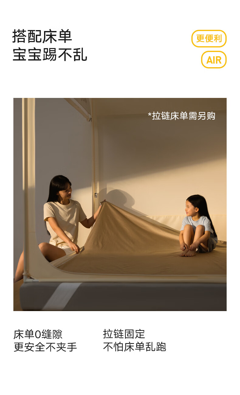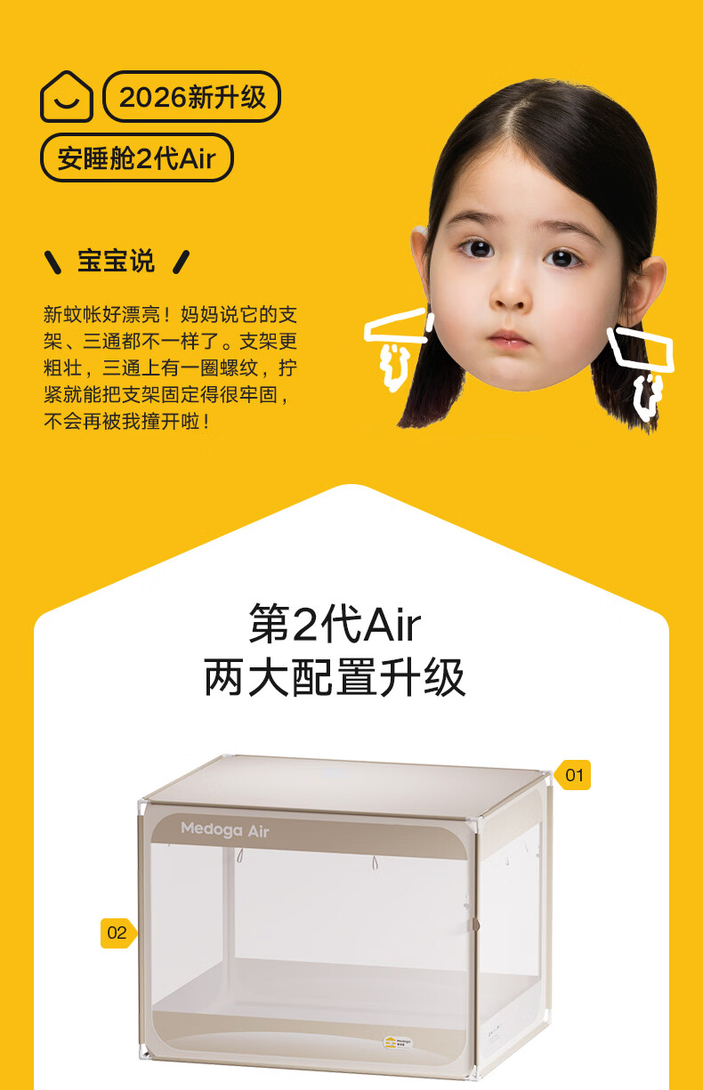 美朵嘉(MEDOGA)26新款安睡舱2代Air防摔蚊帐架A类家用抗菌宝宝睡眠三开门支架帐 Air2代 浅蓝色【单独蚊帐】首创螺纹三通 适用1.8米床【全系支架升级16mm】