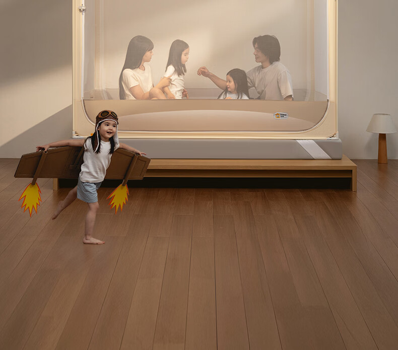 高睿防摔蚊帐2025新款安装抗菌婴儿防止掉床家用卧室全罩式儿童纹帐 元气灰【全底三开门】(A类母婴级抗菌帐纱+防蚊防摔) 适用1.5m床-宽150*长200*高170【碳素钢支架】