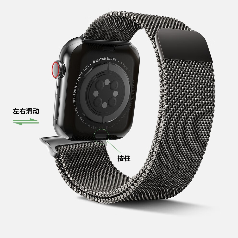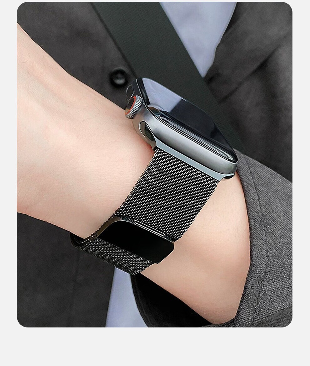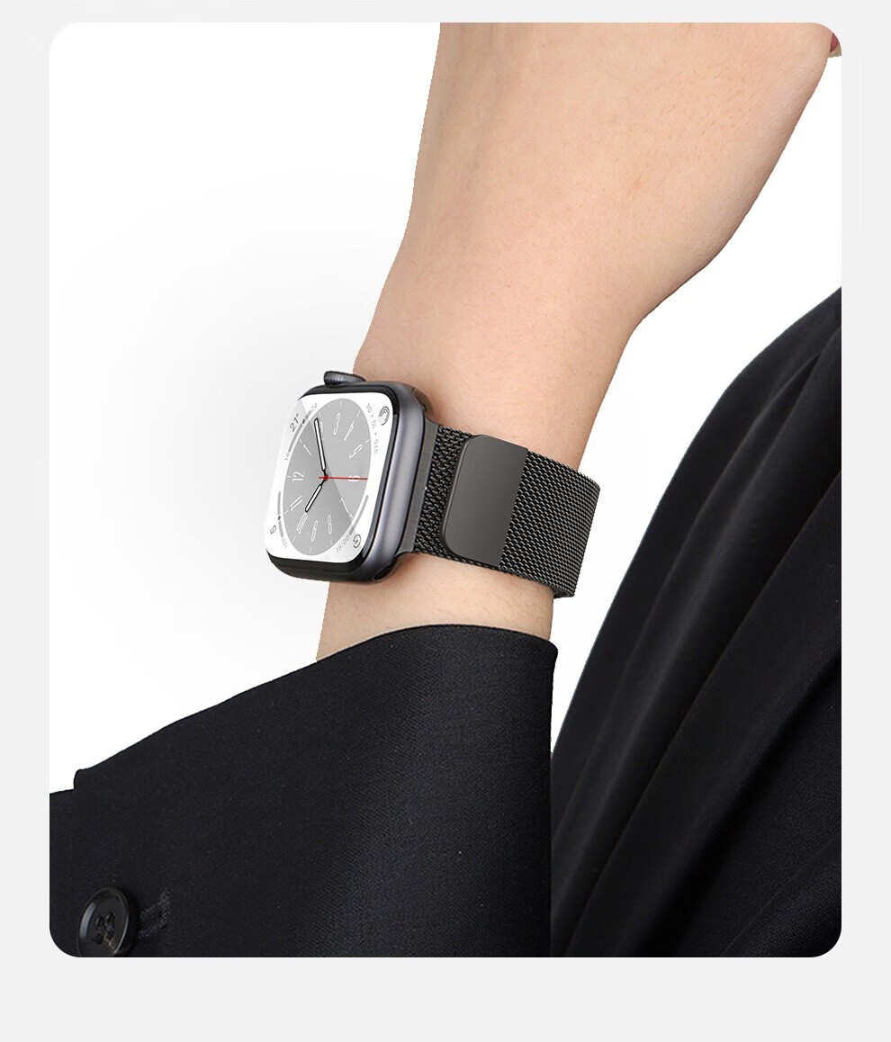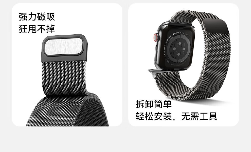 亿图斯苹果手表表带apple watch米兰尼斯不锈钢iwatch s11/s10/s9/8/7/6/SE3/Ultra3/2男女磁吸金属透气 【强力磁吸】官方黑 49/46/45/44mm表盘通用
