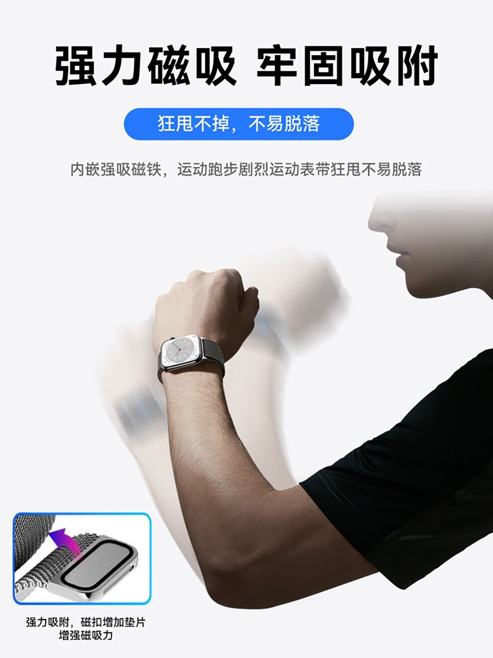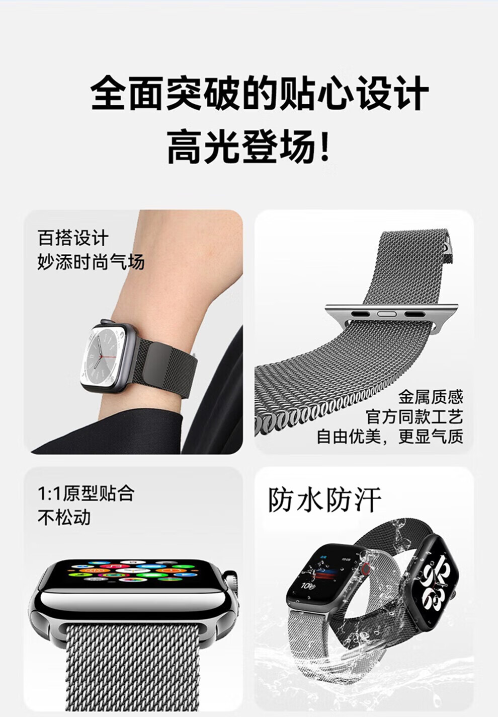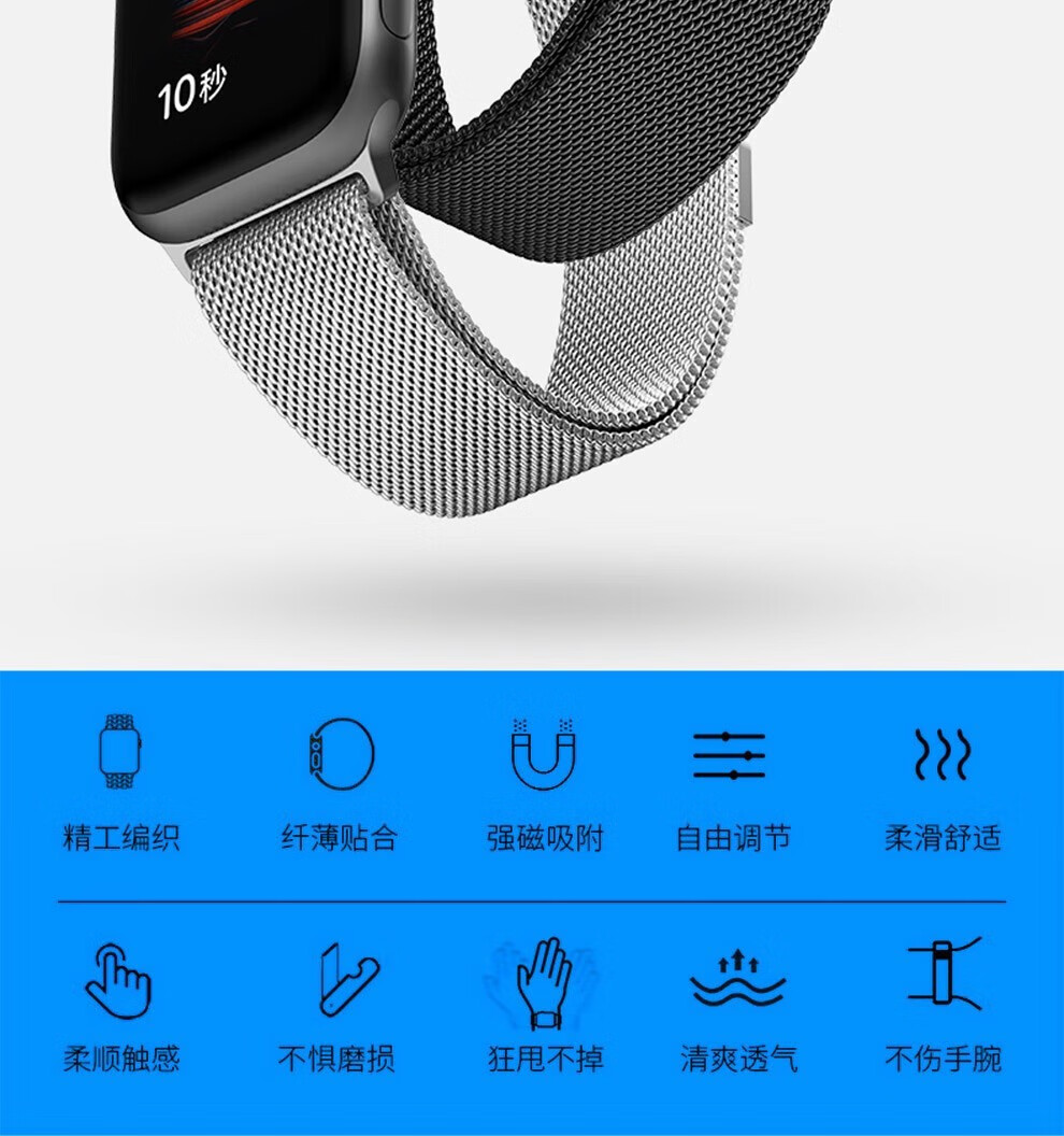 亿图斯苹果手表表带apple watch米兰尼斯不锈钢iwatch s11/s10/s9/8/7/6/SE3/Ultra3/2男女磁吸金属透气 【强力磁吸】官方黑 49/46/45/44mm表盘通用