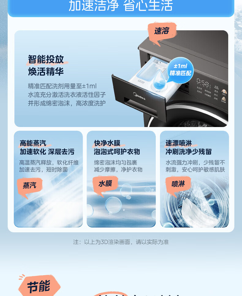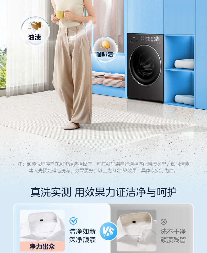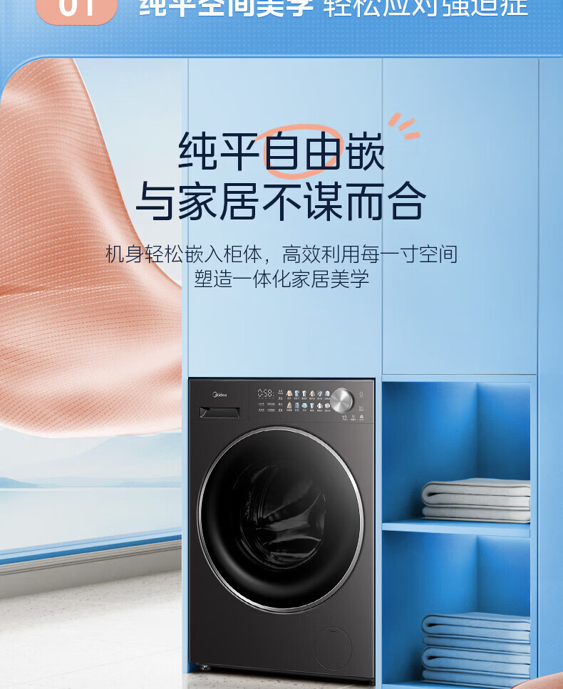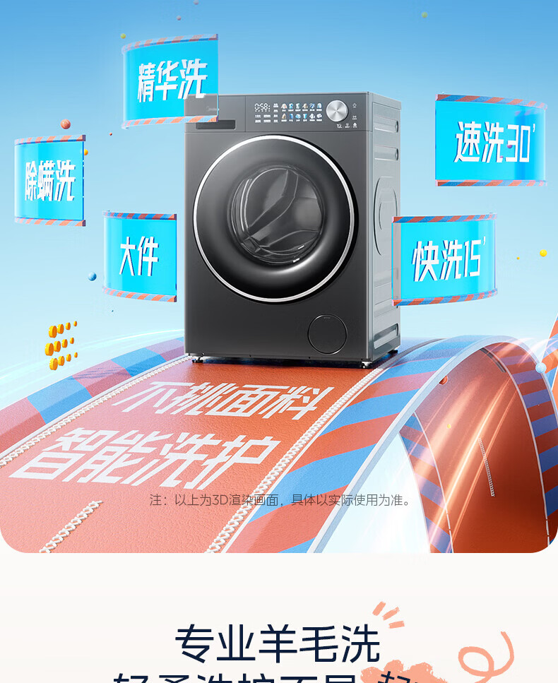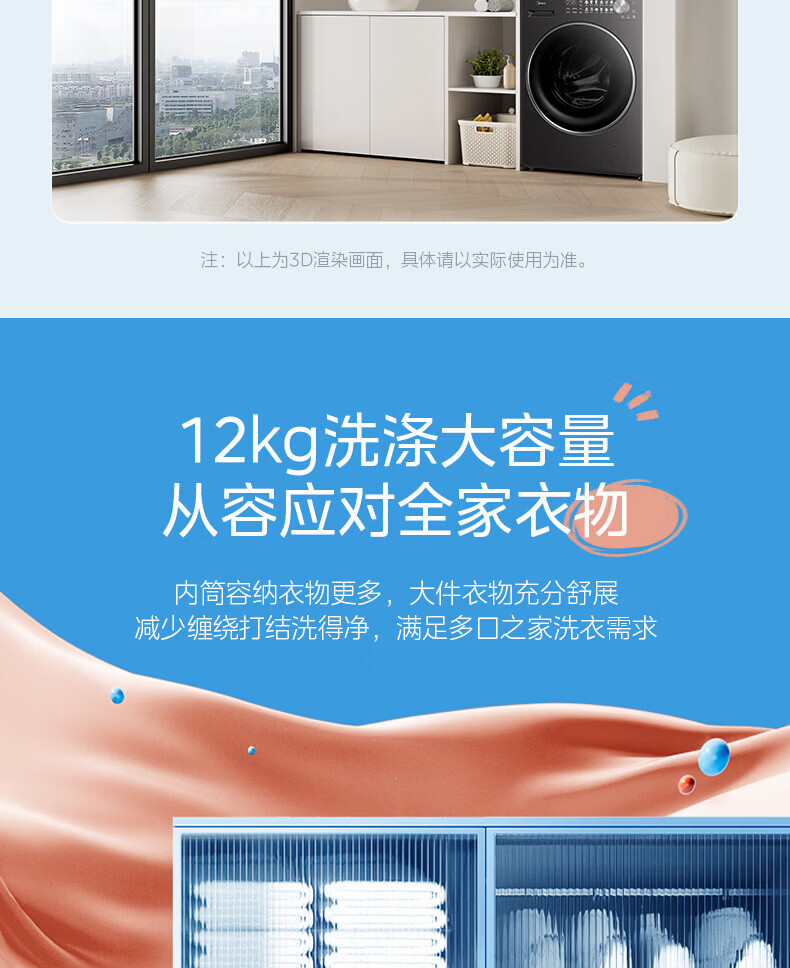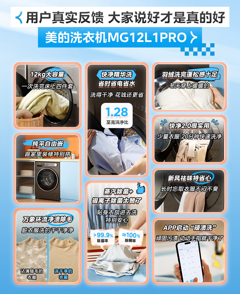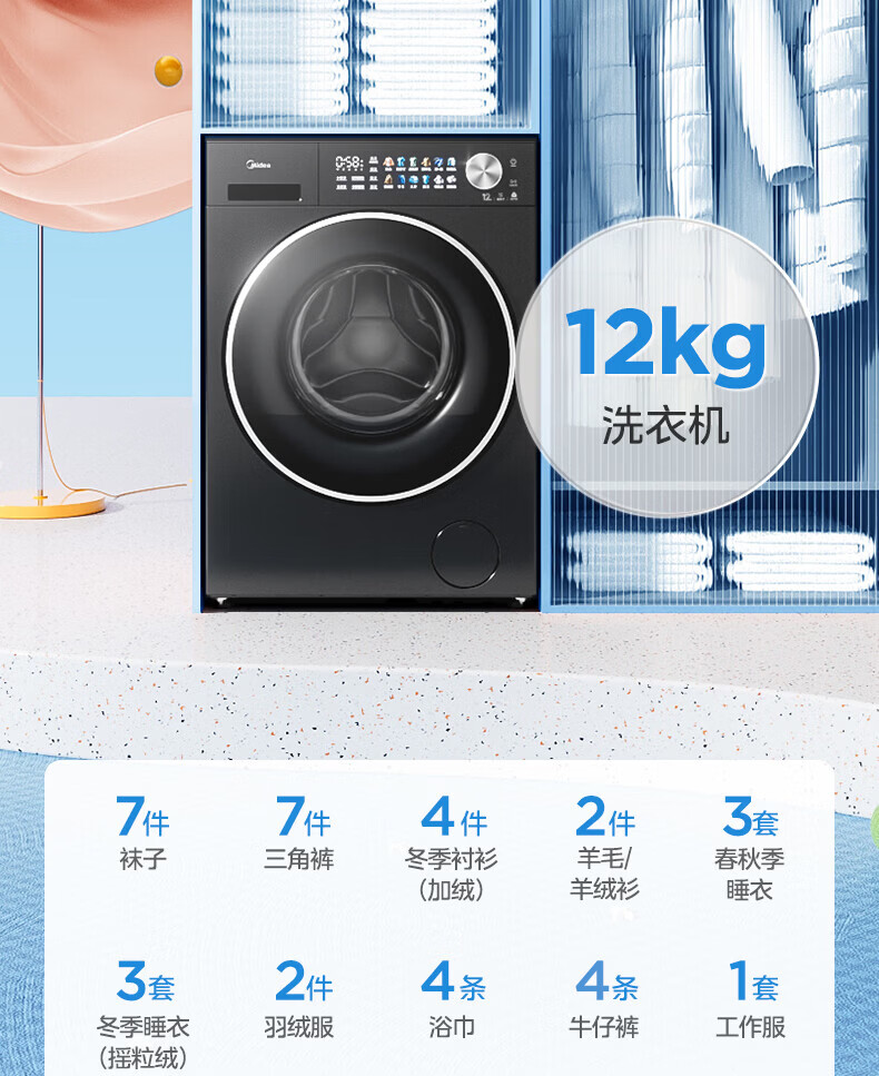 美的(Midea)滚筒洗衣机全自动 12kg家用大容量变频电机1.28高洗净比 智能投放蒸汽除菌一级能效 MG12L1PRO 滚筒