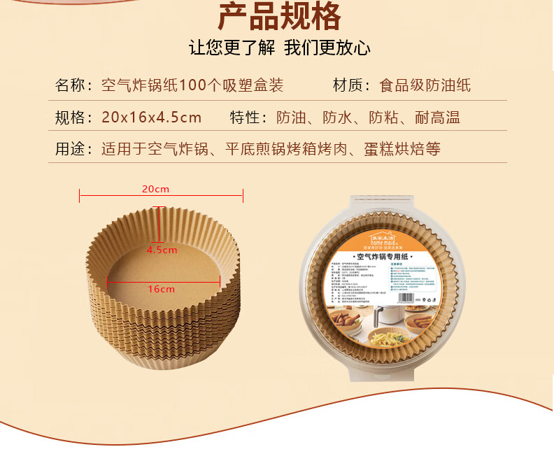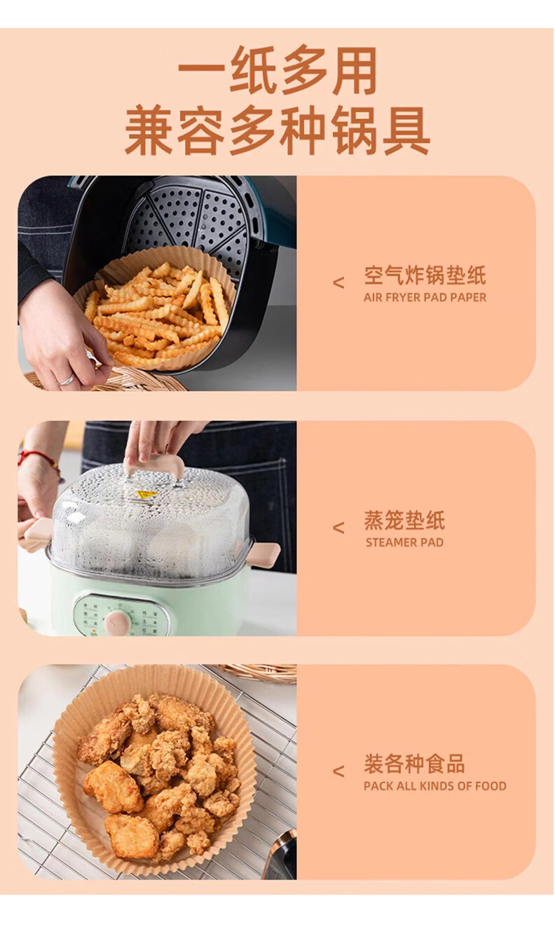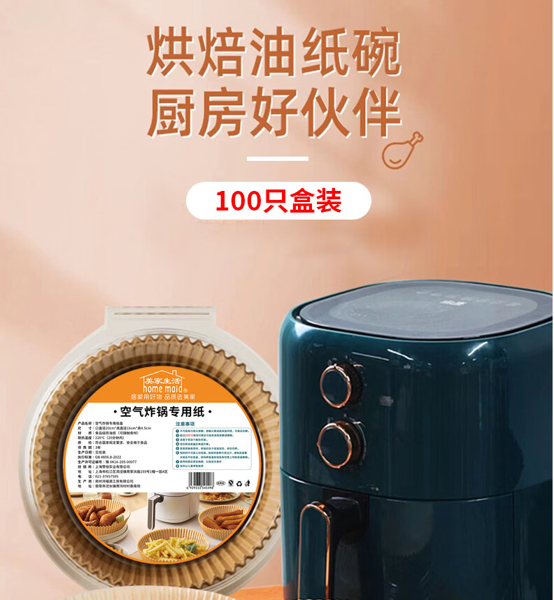美家生活空气炸锅专用纸 烘焙烤箱垫纸硅油纸 适用3L以上炸锅【100只】