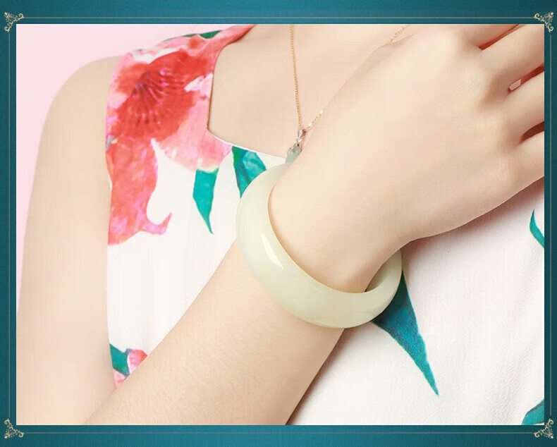 N2it阿富汗玉白色手镯母亲节送妈妈老婆生日礼物XP 中号内径约58-59mm+首饰盒
