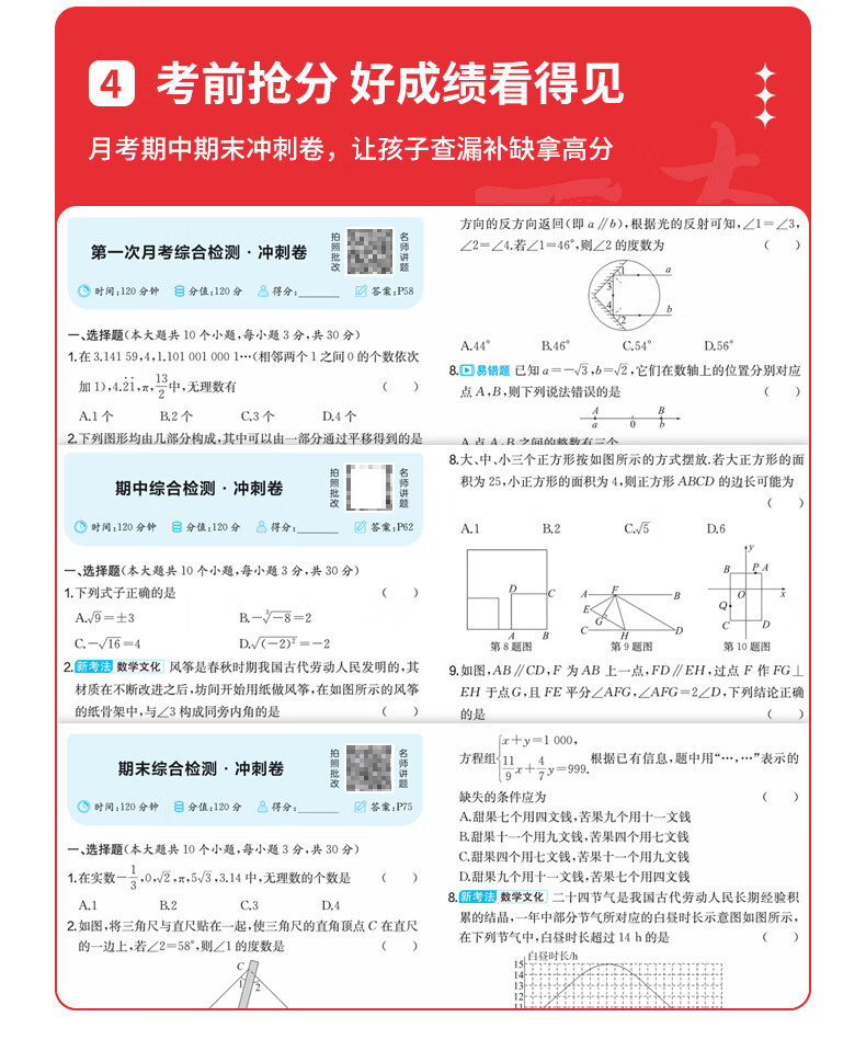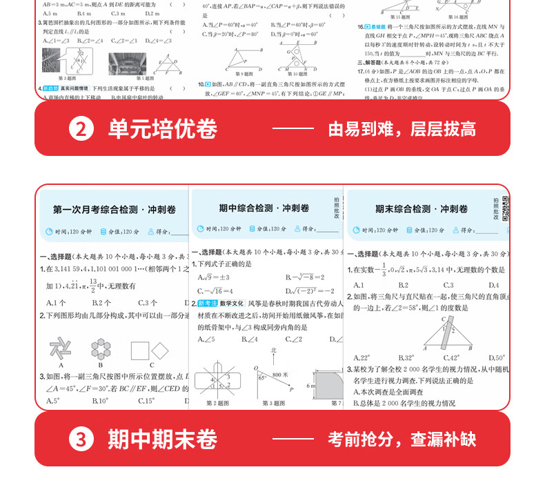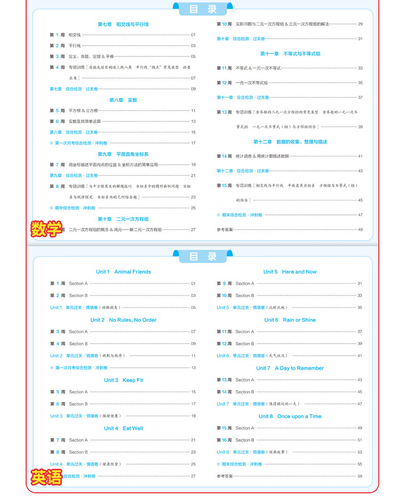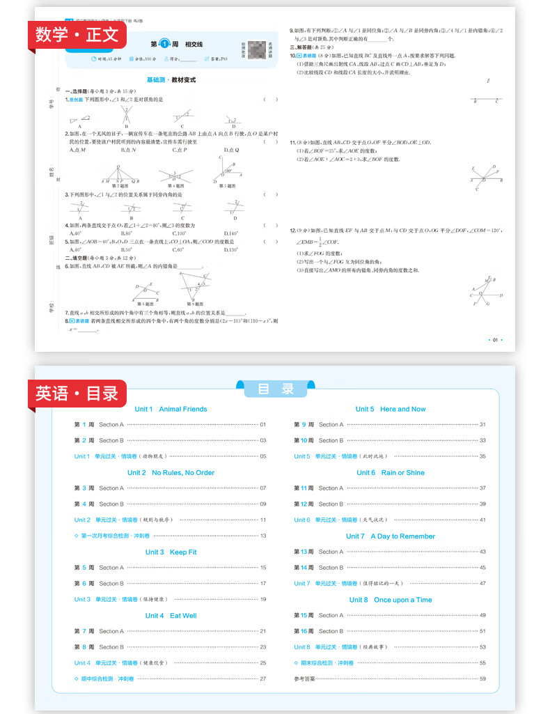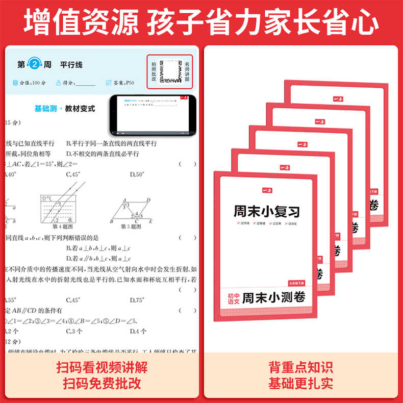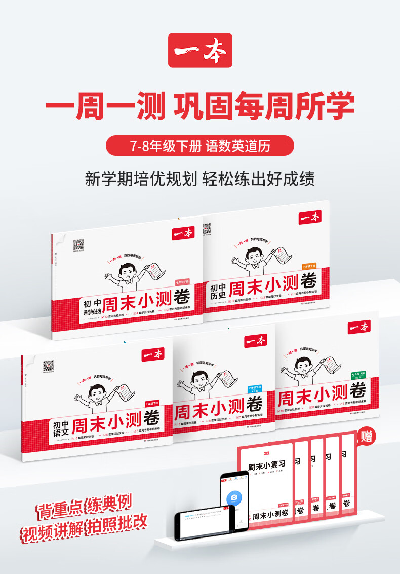 一本周末小测卷七年级下册一本官方旗舰店正品同步测试卷语文数学英语人教北师外研苏科课后作业单元检测练习期中期末考试卷教辅书 7年级-数学(人教版) 正版