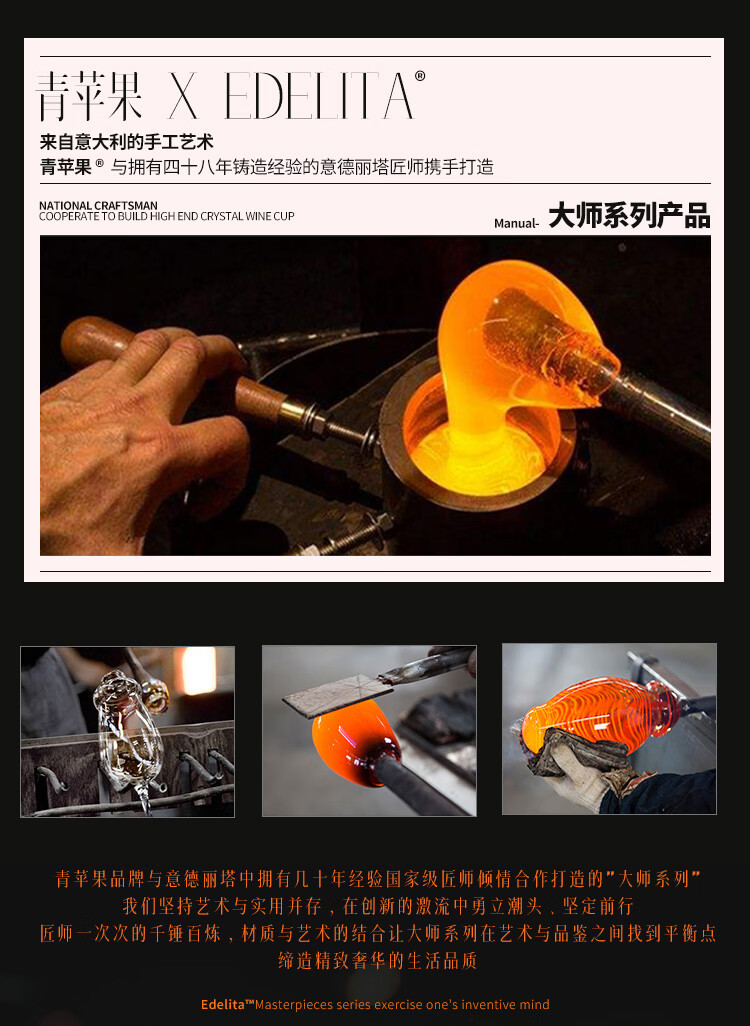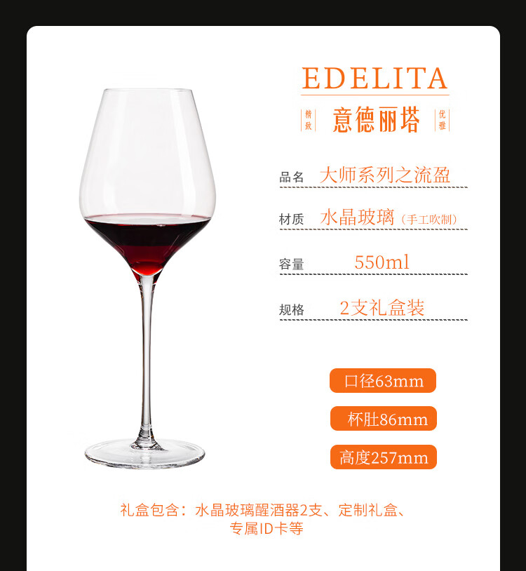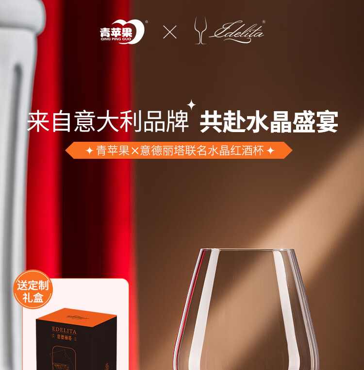 青苹果xEDELITA联名 水晶玻璃红酒杯高脚杯550ML两只礼盒装38女神节礼物