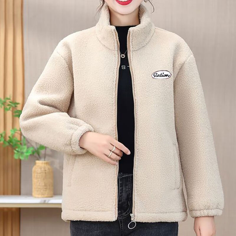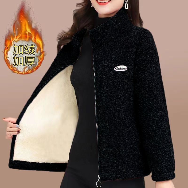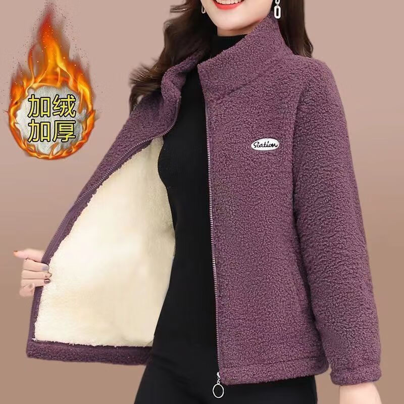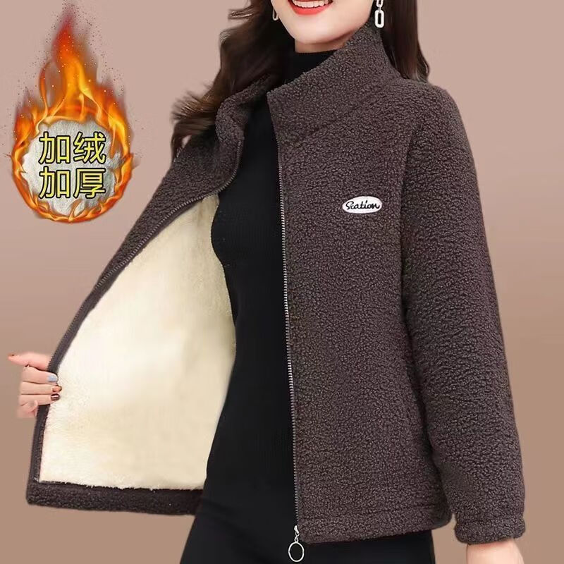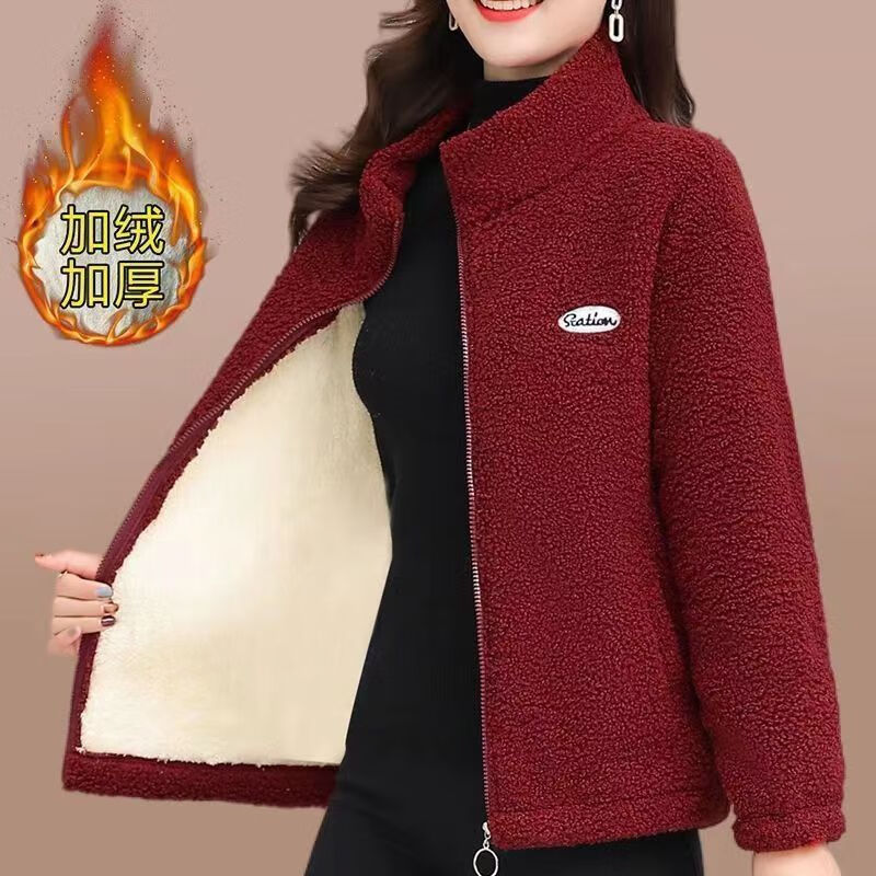 啄木鸟(TUCANO)羊羔绒外套女时尚保暖妈M妈新款春秋装颗粒绒外套女加绒女士外套 酒红色【三层加绒】 加厚 3XL 建议体重115-130斤左右
