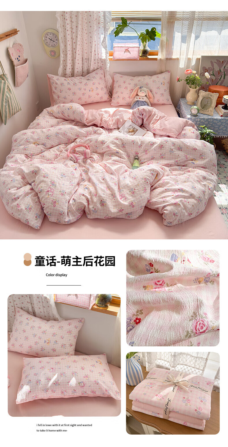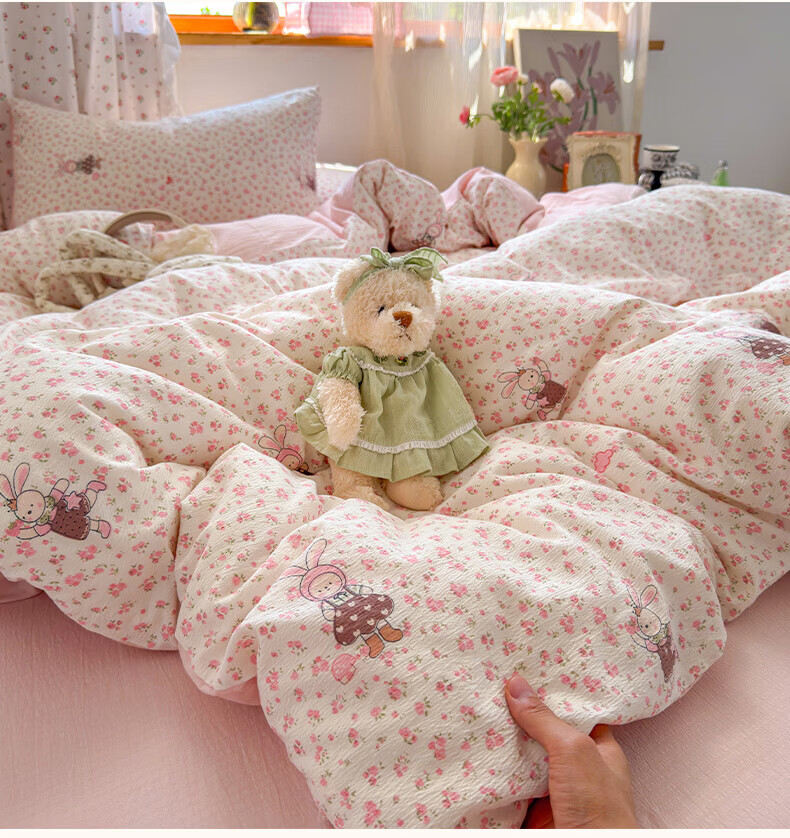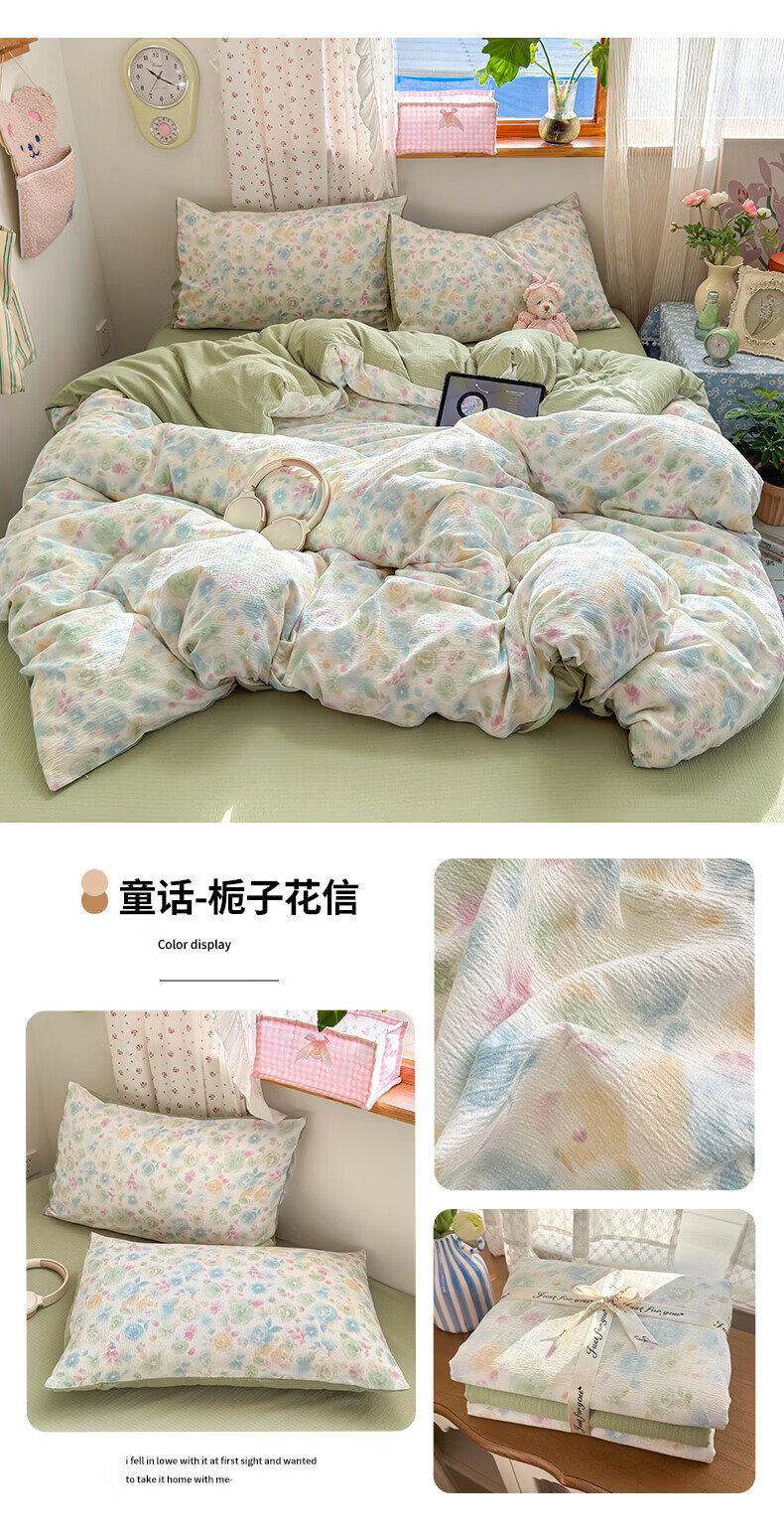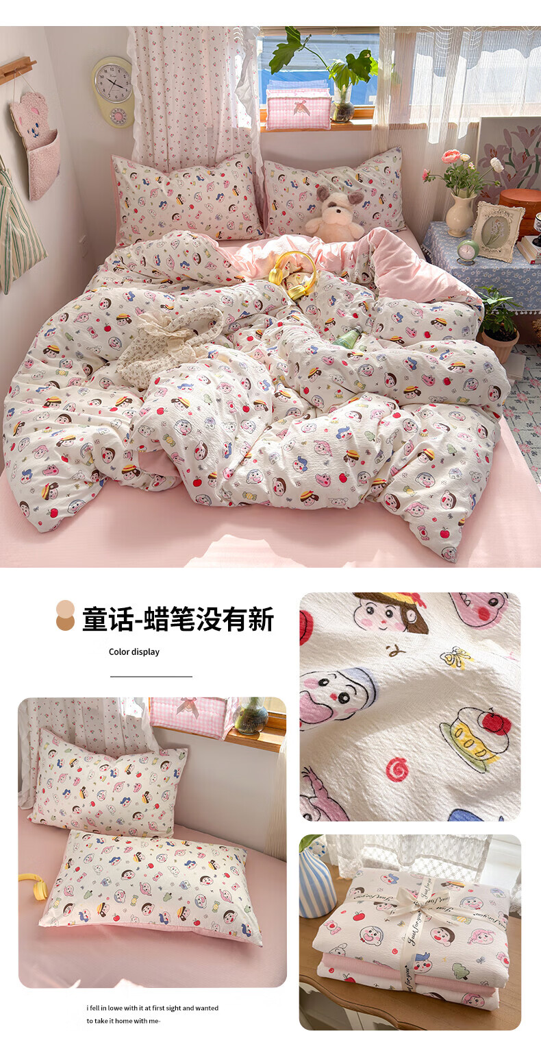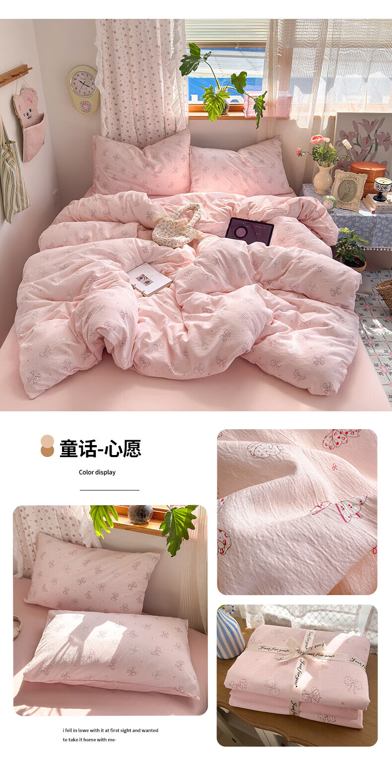一默四件套被套床单床笠枕套A类可裸睡床上用品云感双层纱印花四件套 樱桃布丁 2.0m 床单款 (被套200*230cm) 四件套