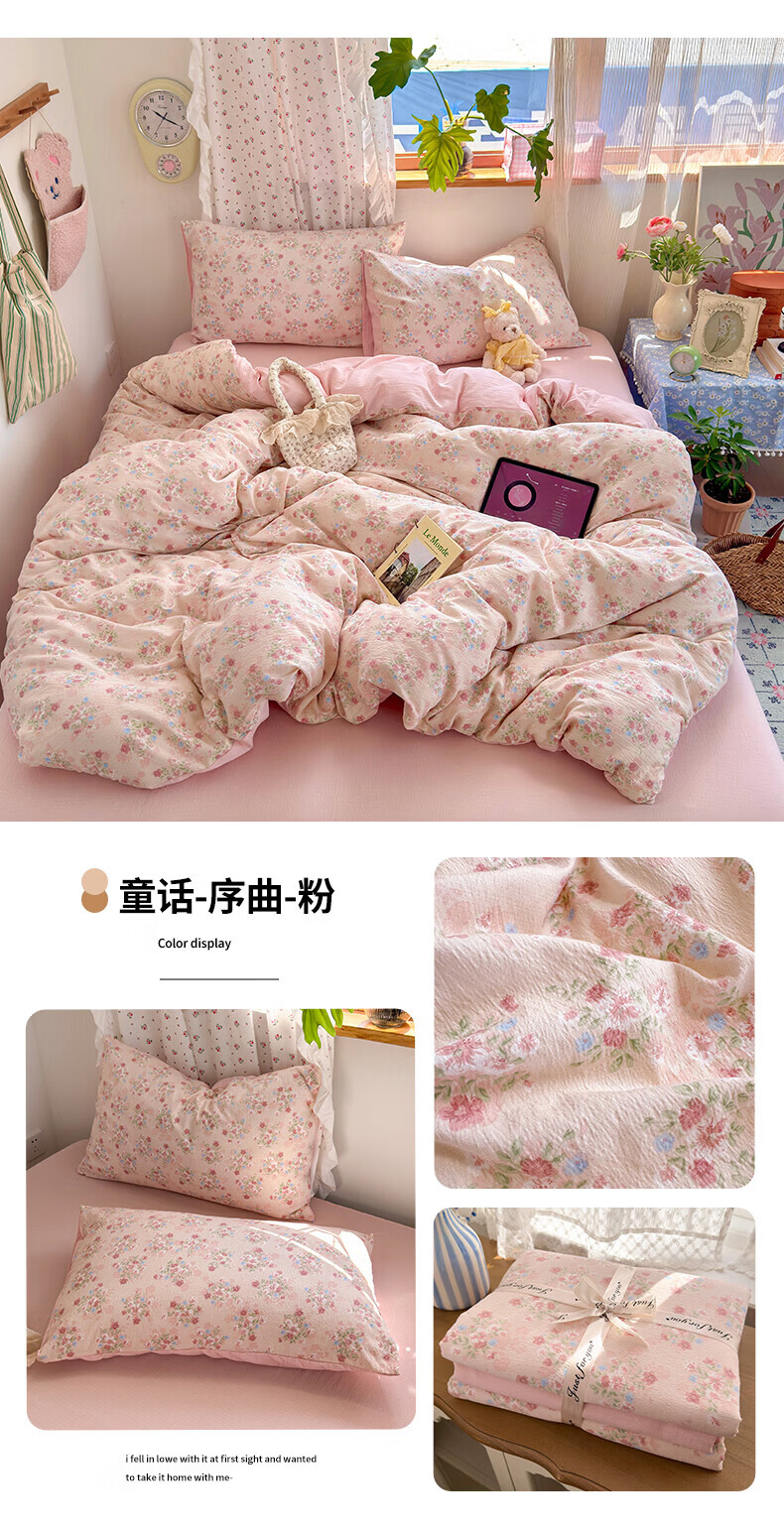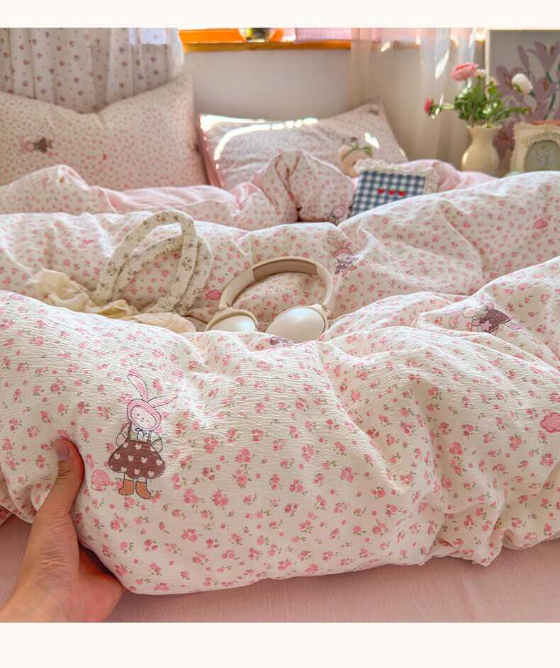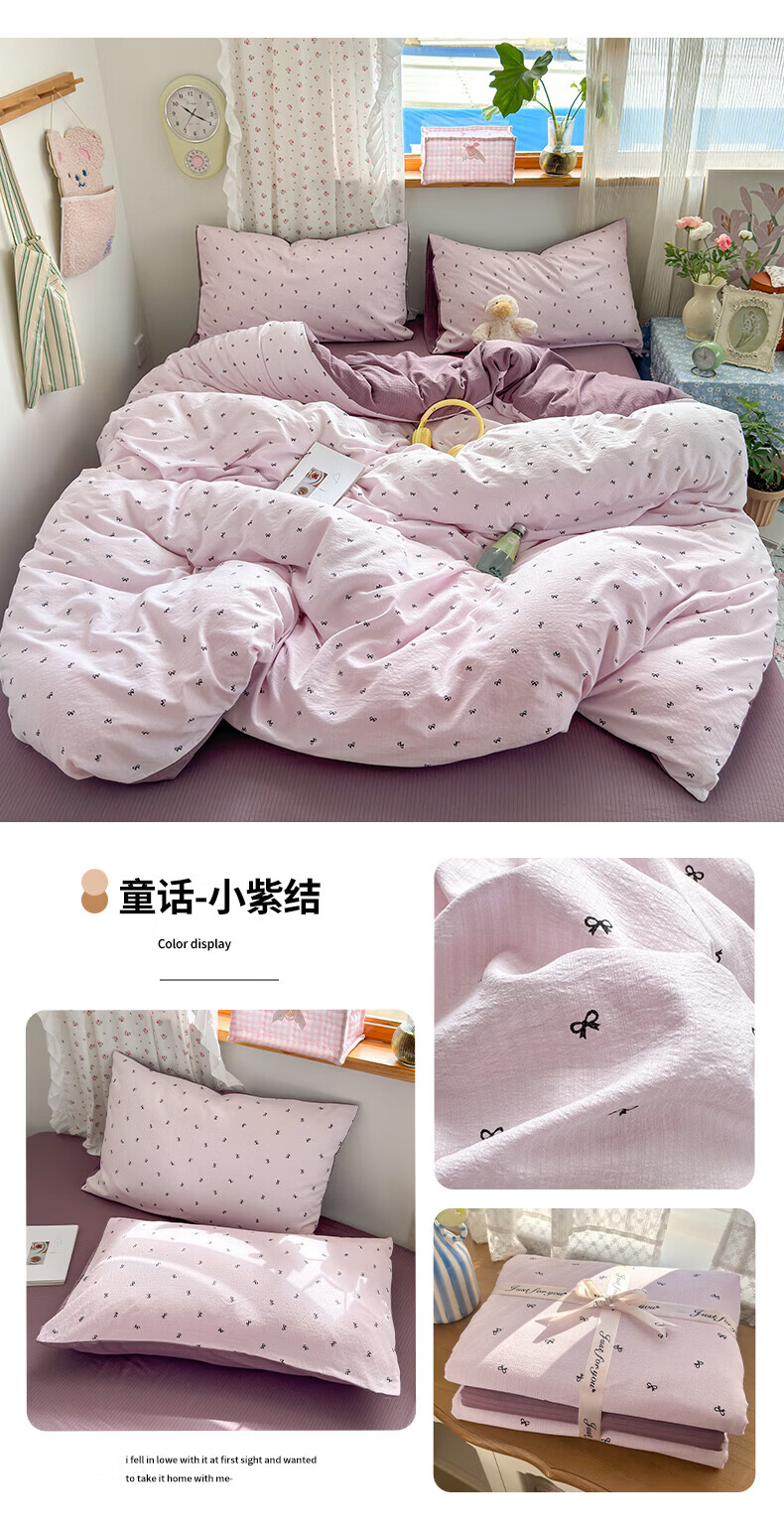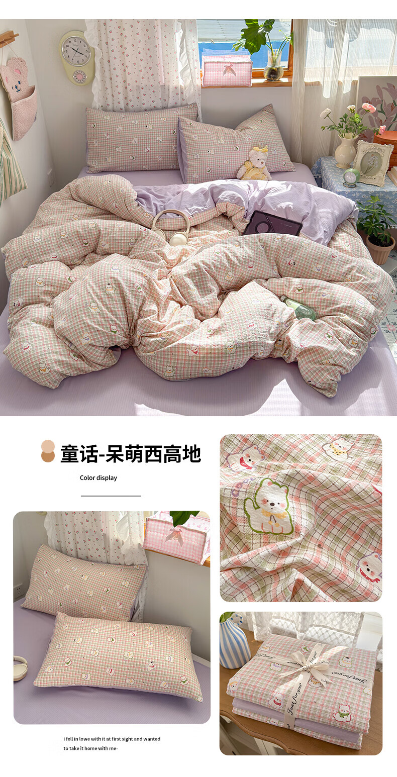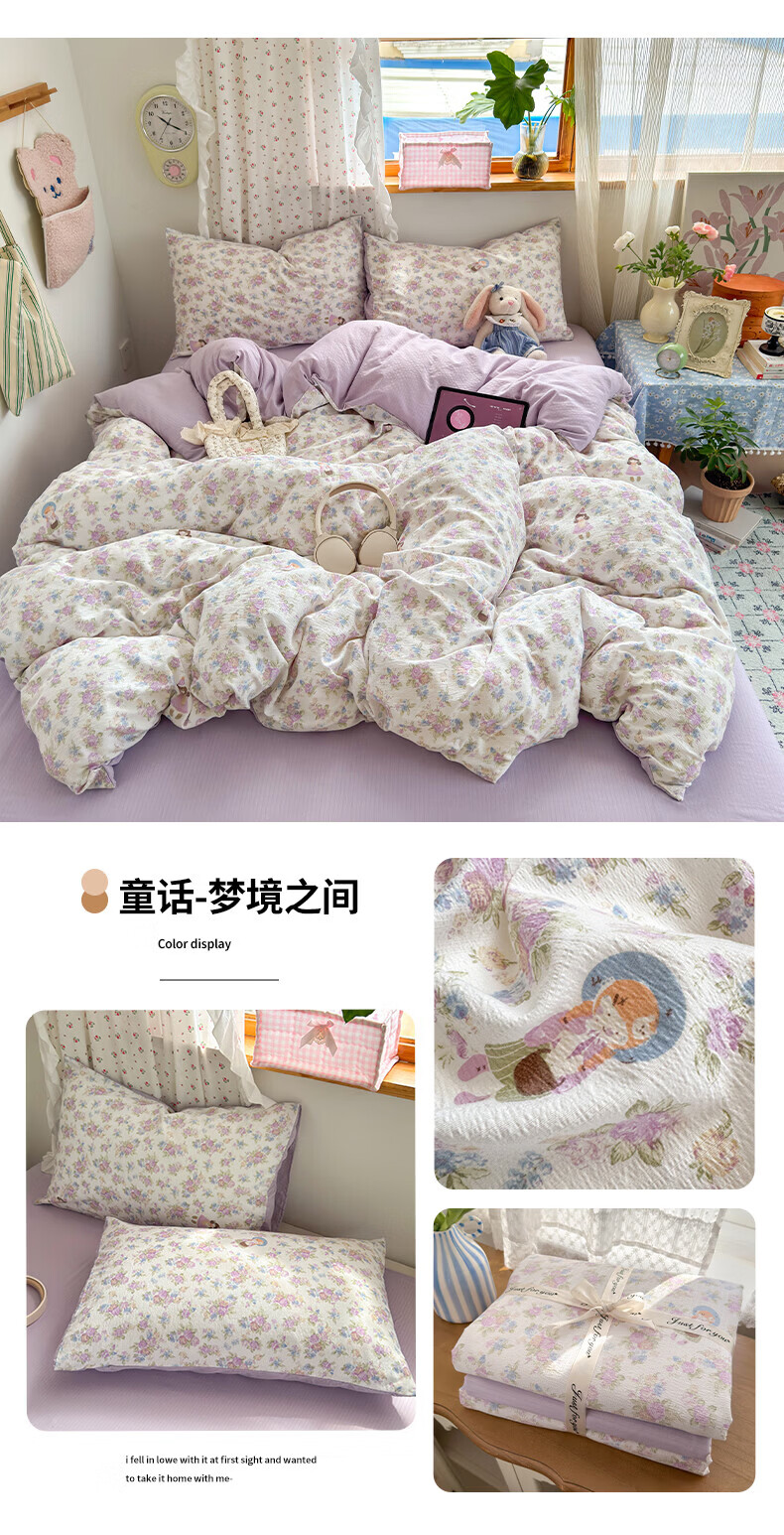 一默四件套被套床单床笠枕套A类可裸睡床上用品云感双层纱印花四件套 樱桃布丁 2.0m 床单款 (被套200*230cm) 四件套