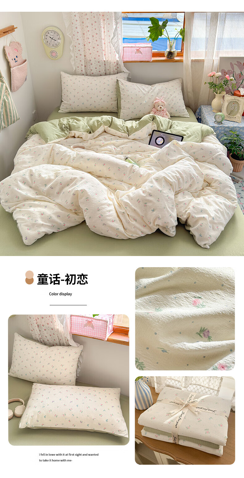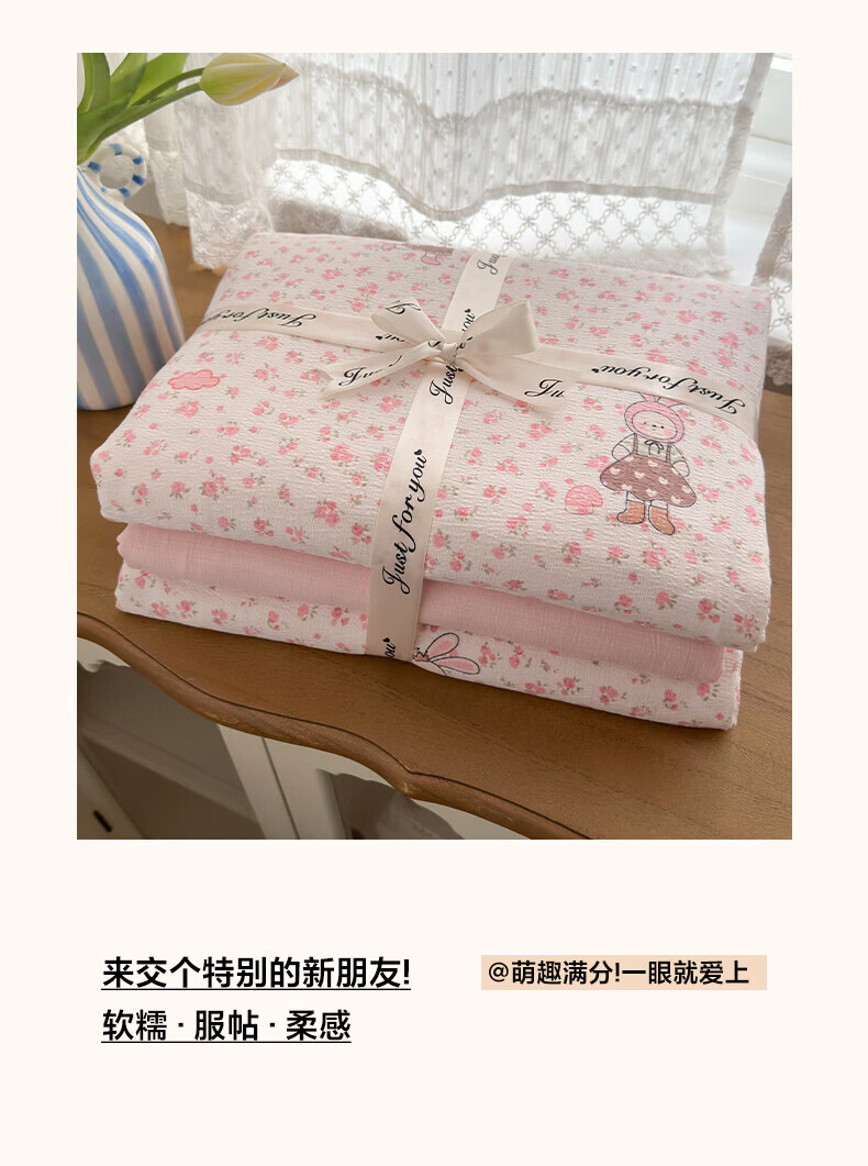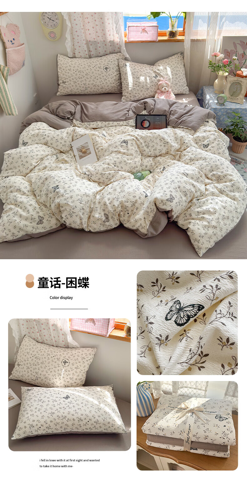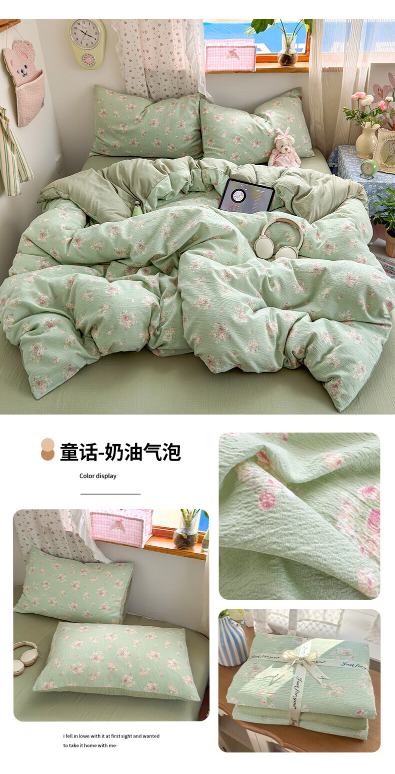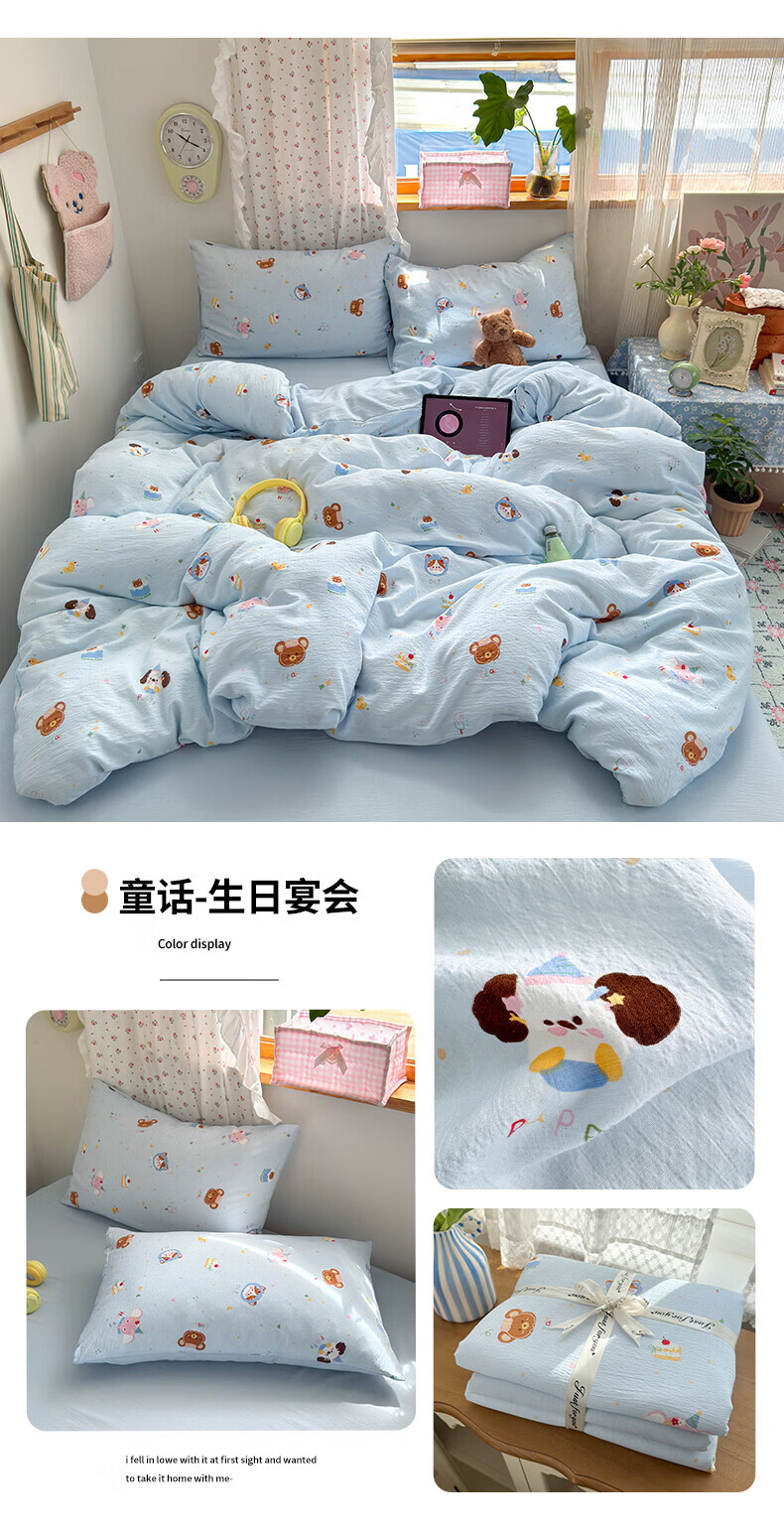一默四件套被套床单床笠枕套A类可裸睡床上用品云感双层纱印花四件套 樱桃布丁 2.0m 床单款 (被套200*230cm) 四件套