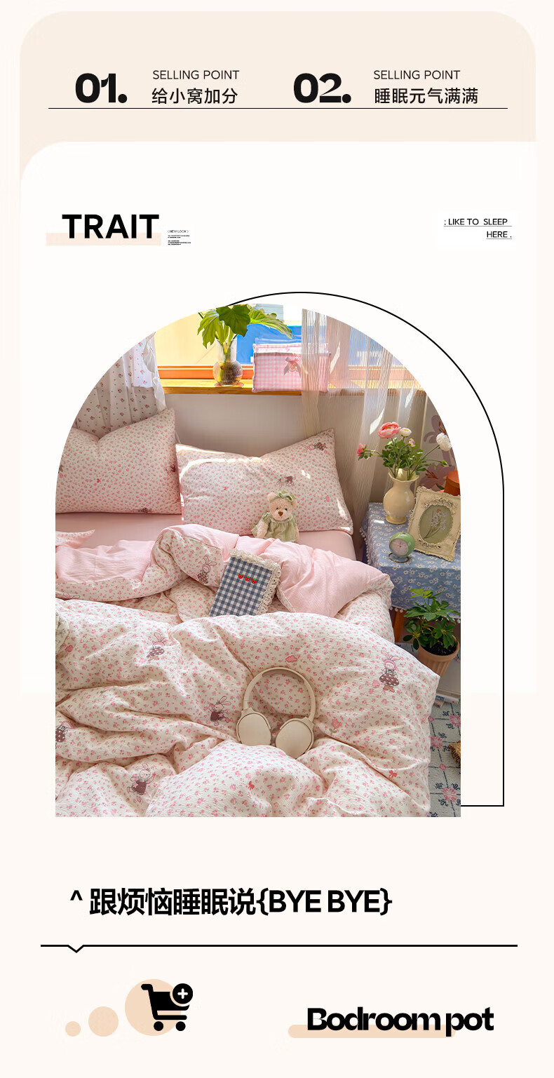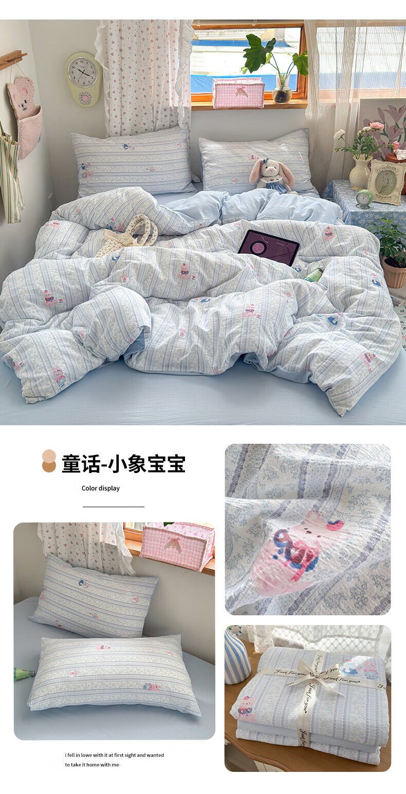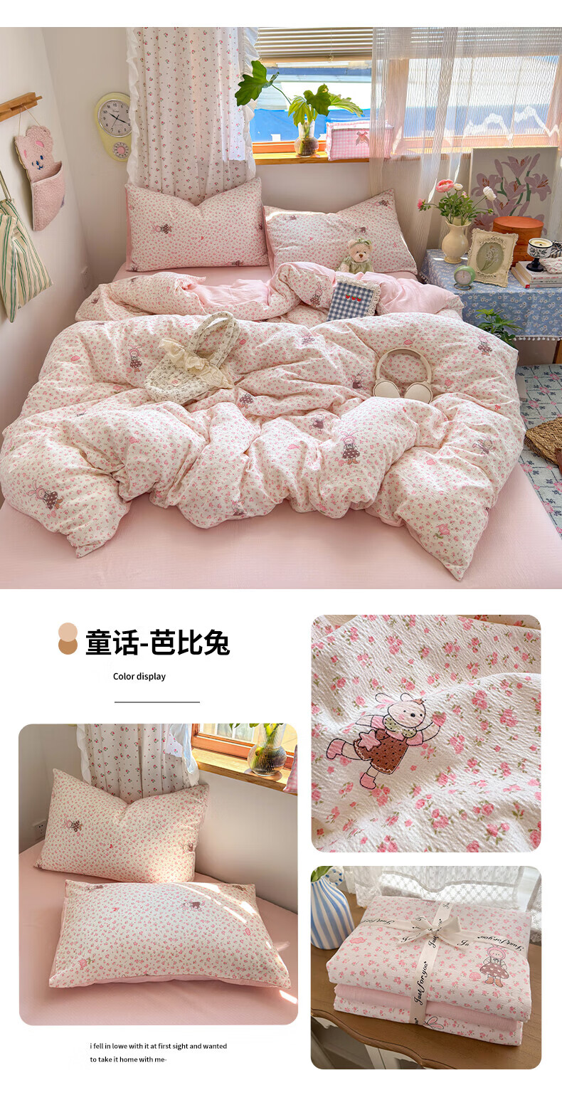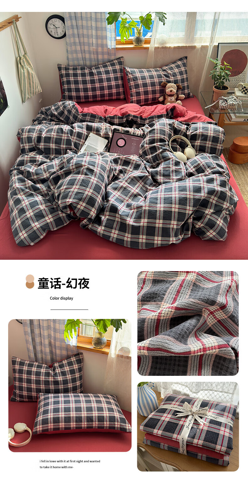 一默四件套被套床单床笠枕套A类可裸睡床上用品云感双层纱印花四件套 樱桃布丁 2.0m 床单款 (被套200*230cm) 四件套
