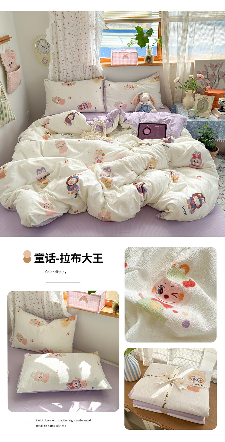 蜜乐暖四季水洗棉被套单人150x200被罩单件宿舍纯全棉被单200x230cm家用 真幸运心【亲肤柔软裸睡 爱心款】 【透气排湿】150x200cm【亲肤柔软 单被套】