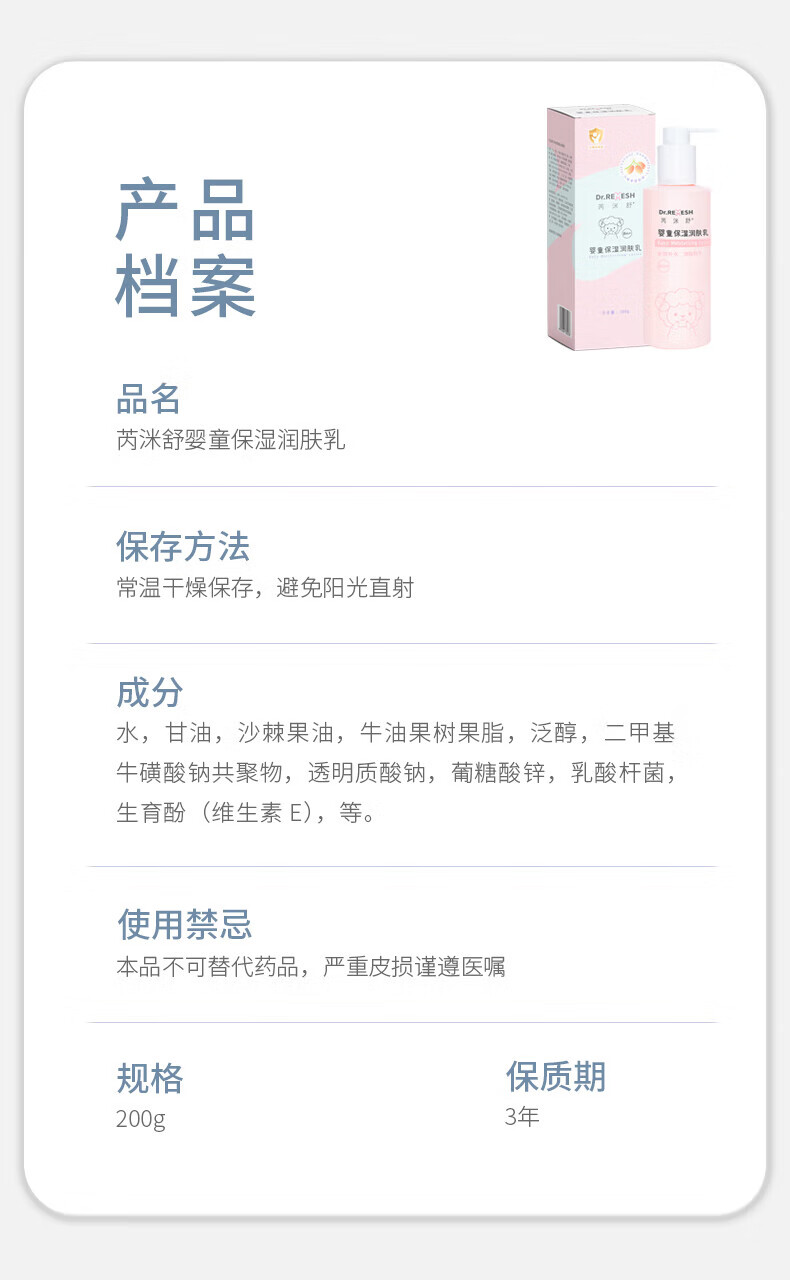芮洣舒婴幼儿保护屏障保湿乳儿童舒缓润肤乳液宝宝身体乳滋润补水 200g