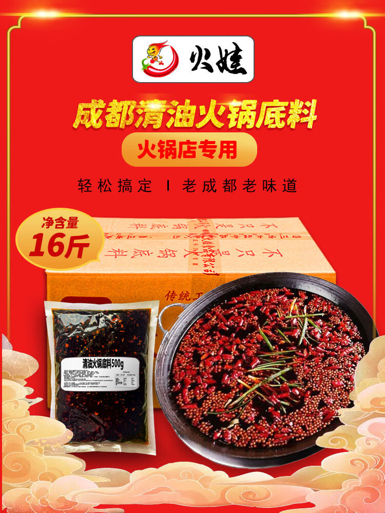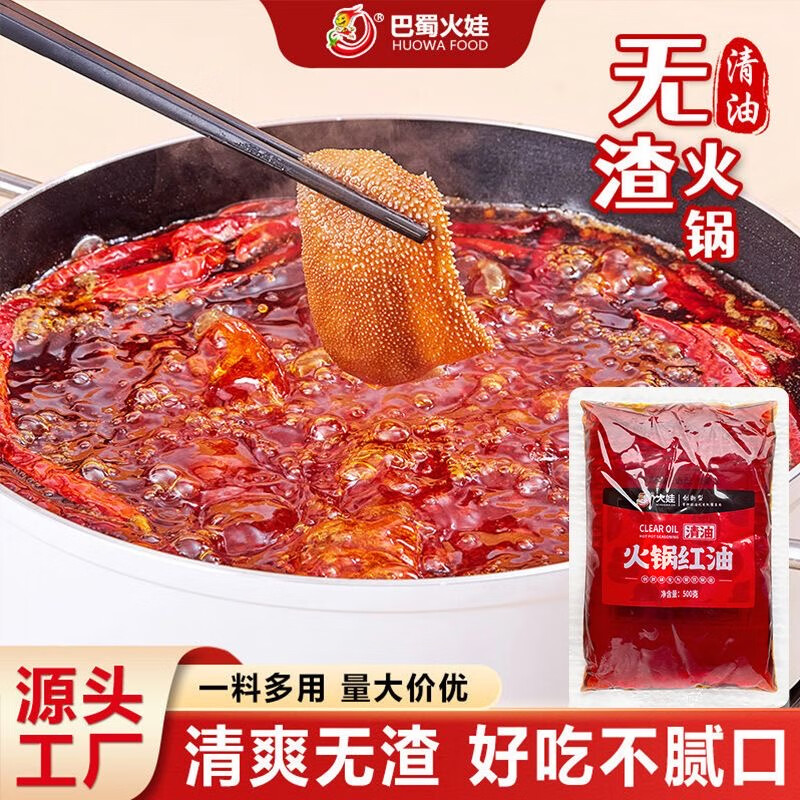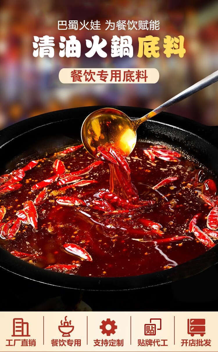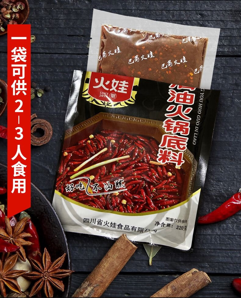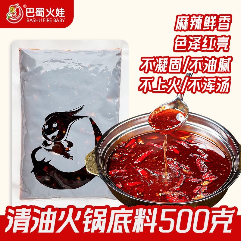 巴蜀火娃清油火锅底料220g四川美蛙鱼水煮鱼料冒菜调料串串香麻辣烫调味料 清油底料220g*5包(囤货装)