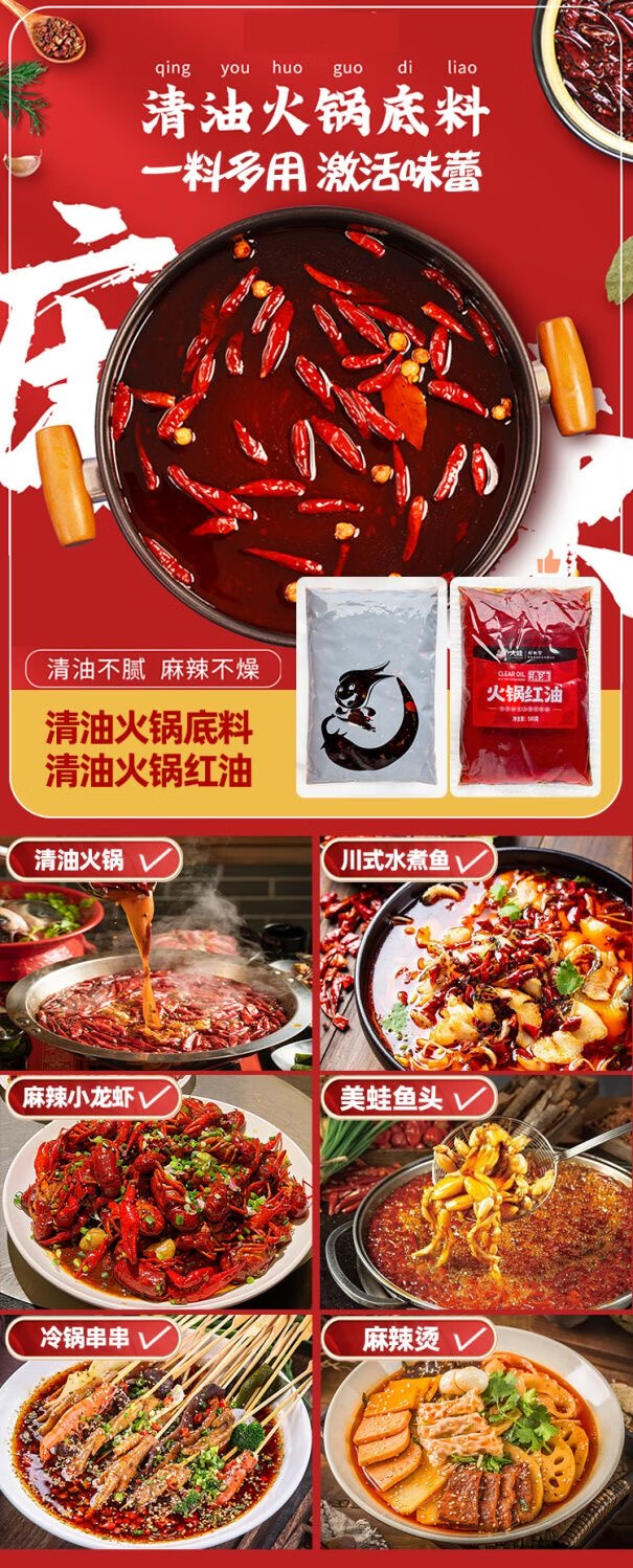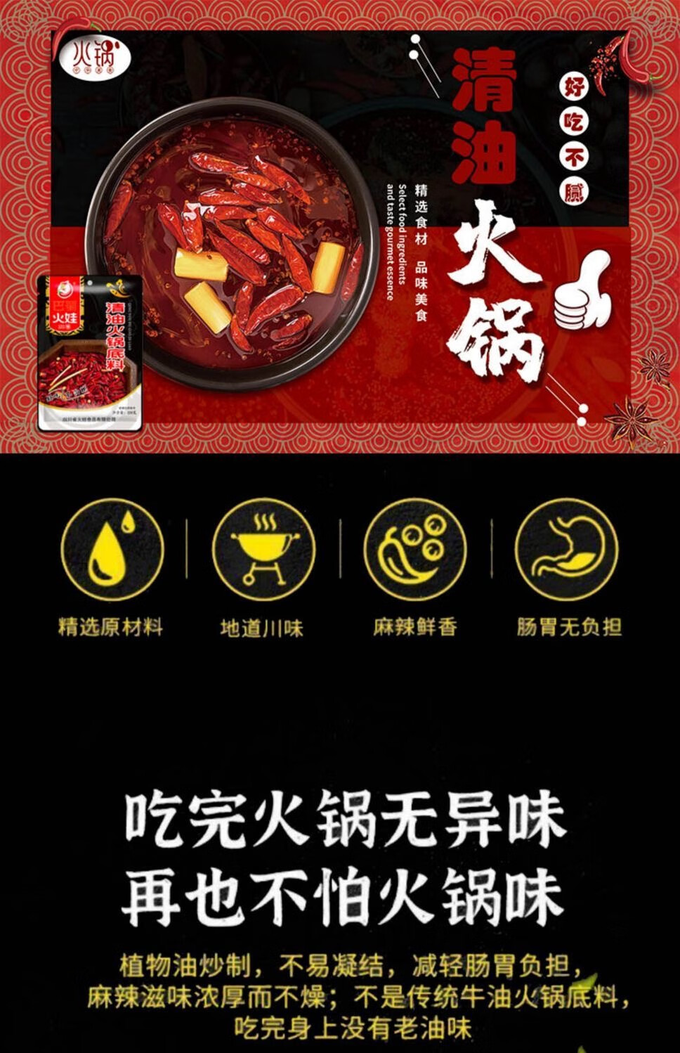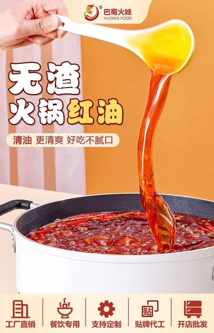 巴蜀火娃清油火锅底料220g四川美蛙鱼水煮鱼料冒菜调料串串香麻辣烫调味料 清油底料220g*5包(囤货装)