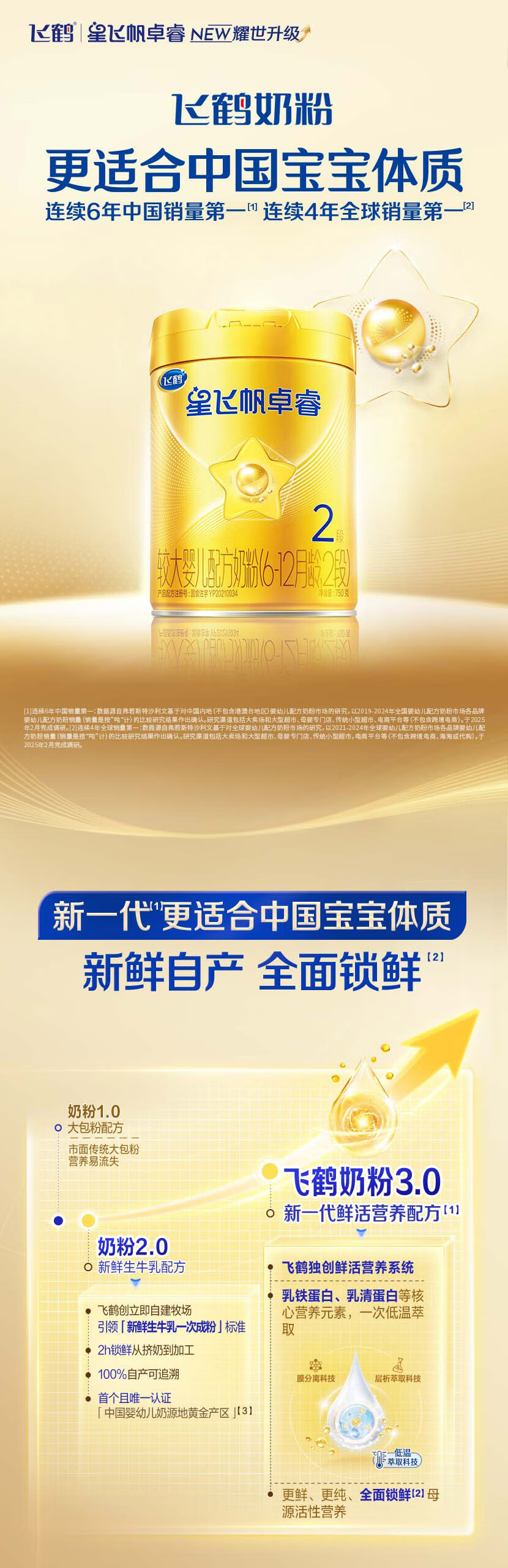 飞鹤星飞帆卓睿婴幼儿配方奶粉2段(6-12个月)750g乳铁蛋白 育儿补贴