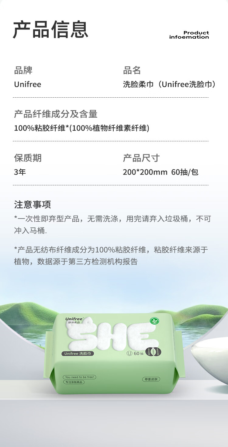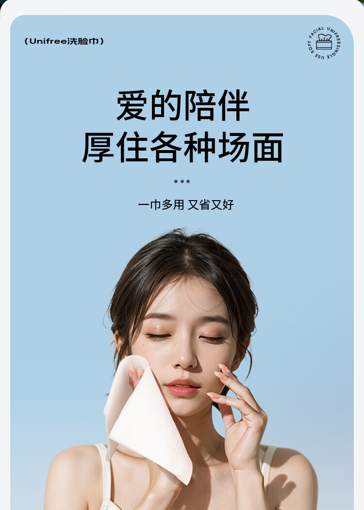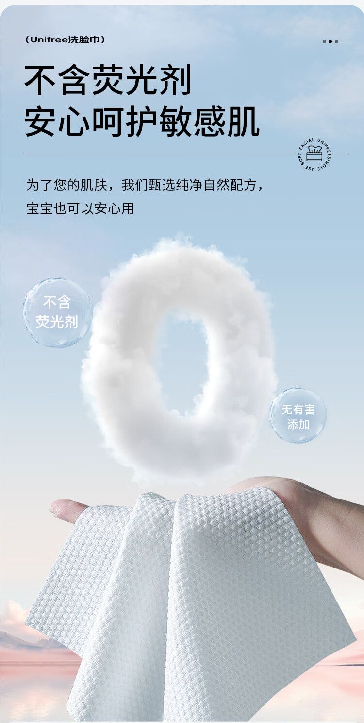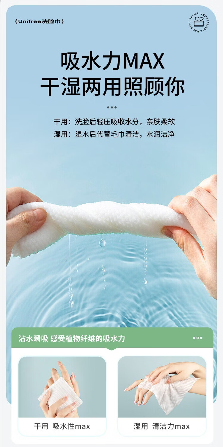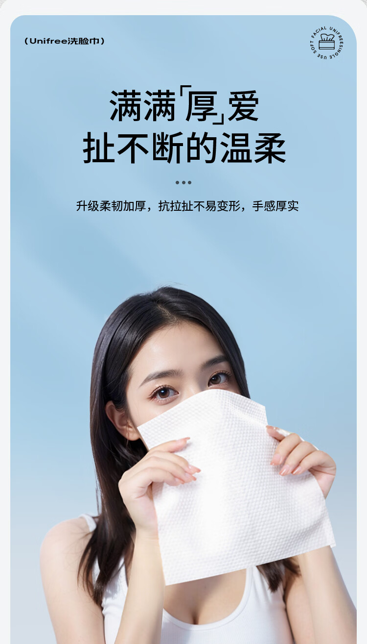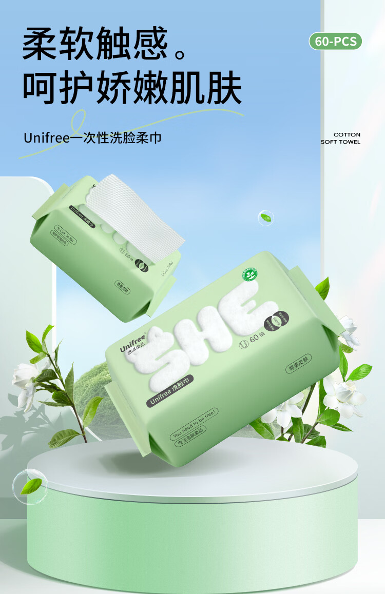 unifree一次性洗脸巾擦脸巾抽取式男女家用洁面卸妆绵柔巾加大加厚 洗脸巾60抽*3包