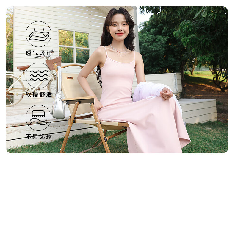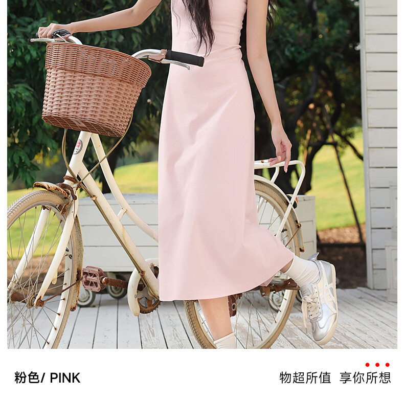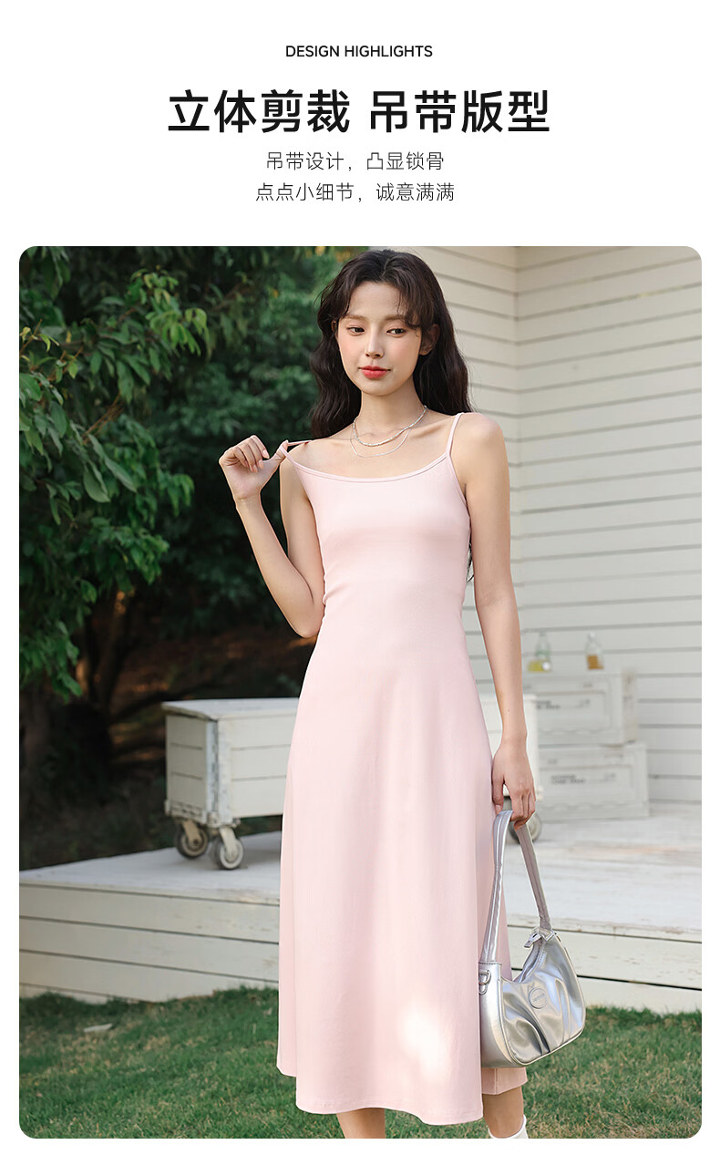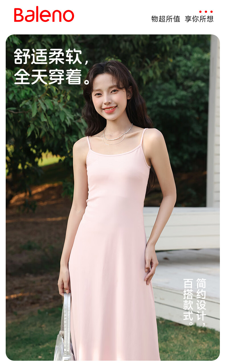 班尼路(Baleno)长款吊带连衣裙女2026年夏季女装新款高弹透气棉质舒适高级感裙子 浅粉#纯色 S