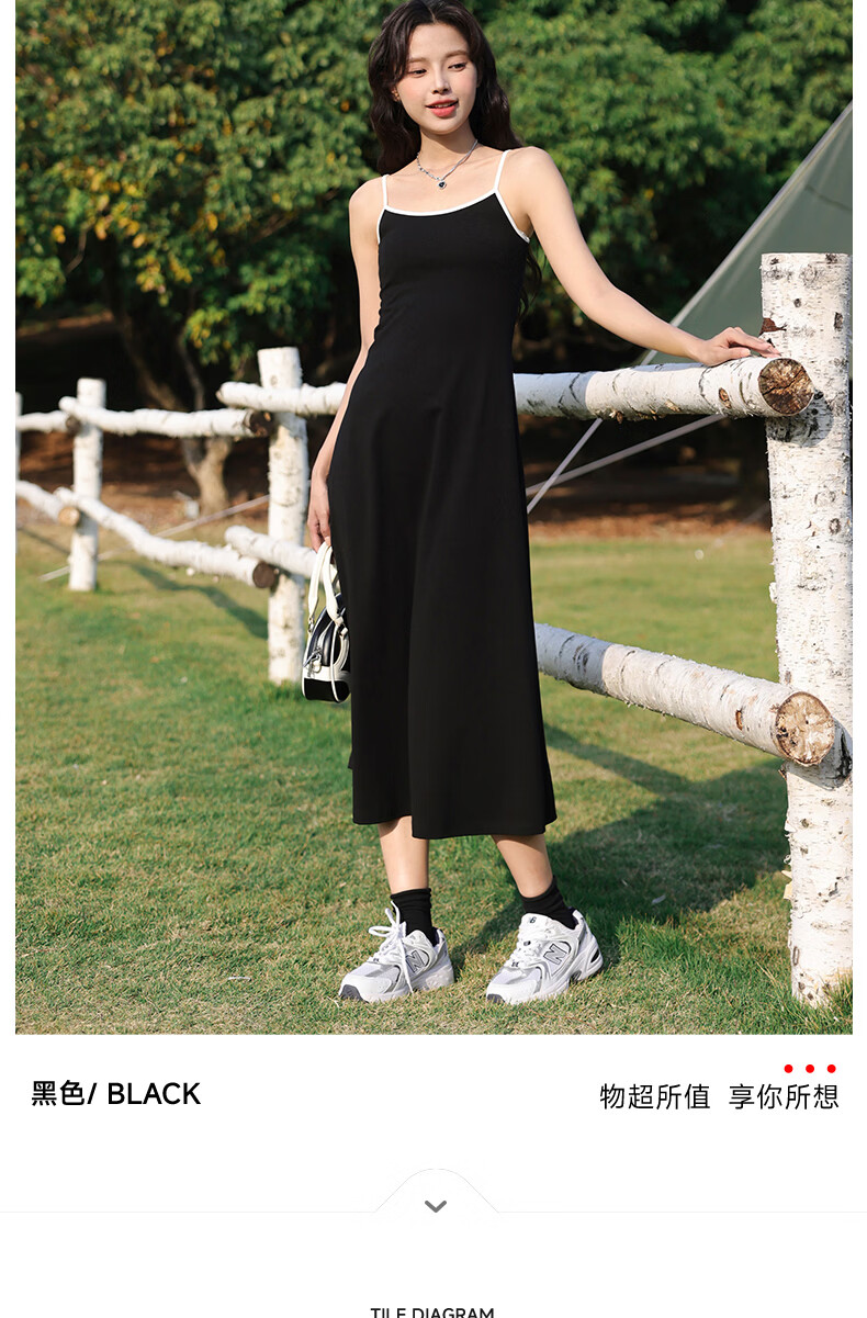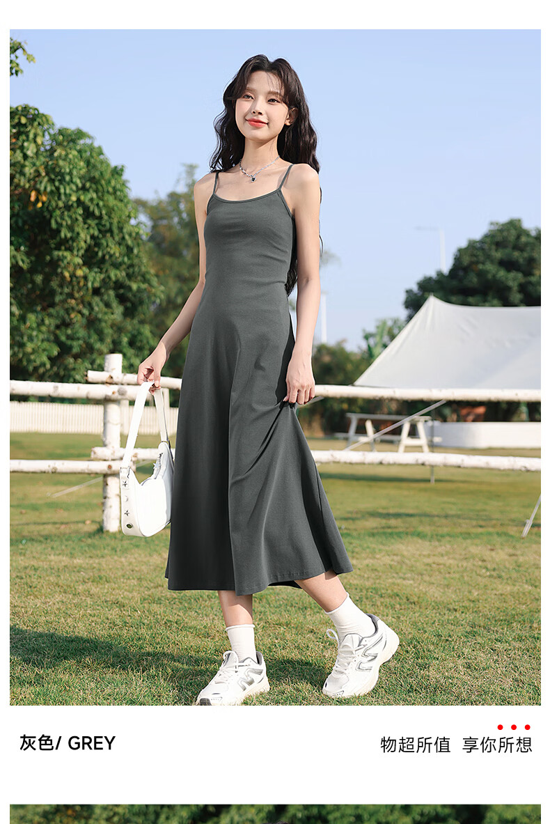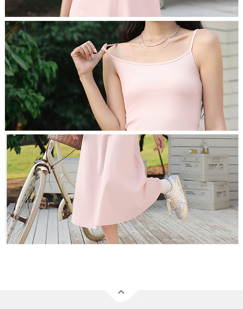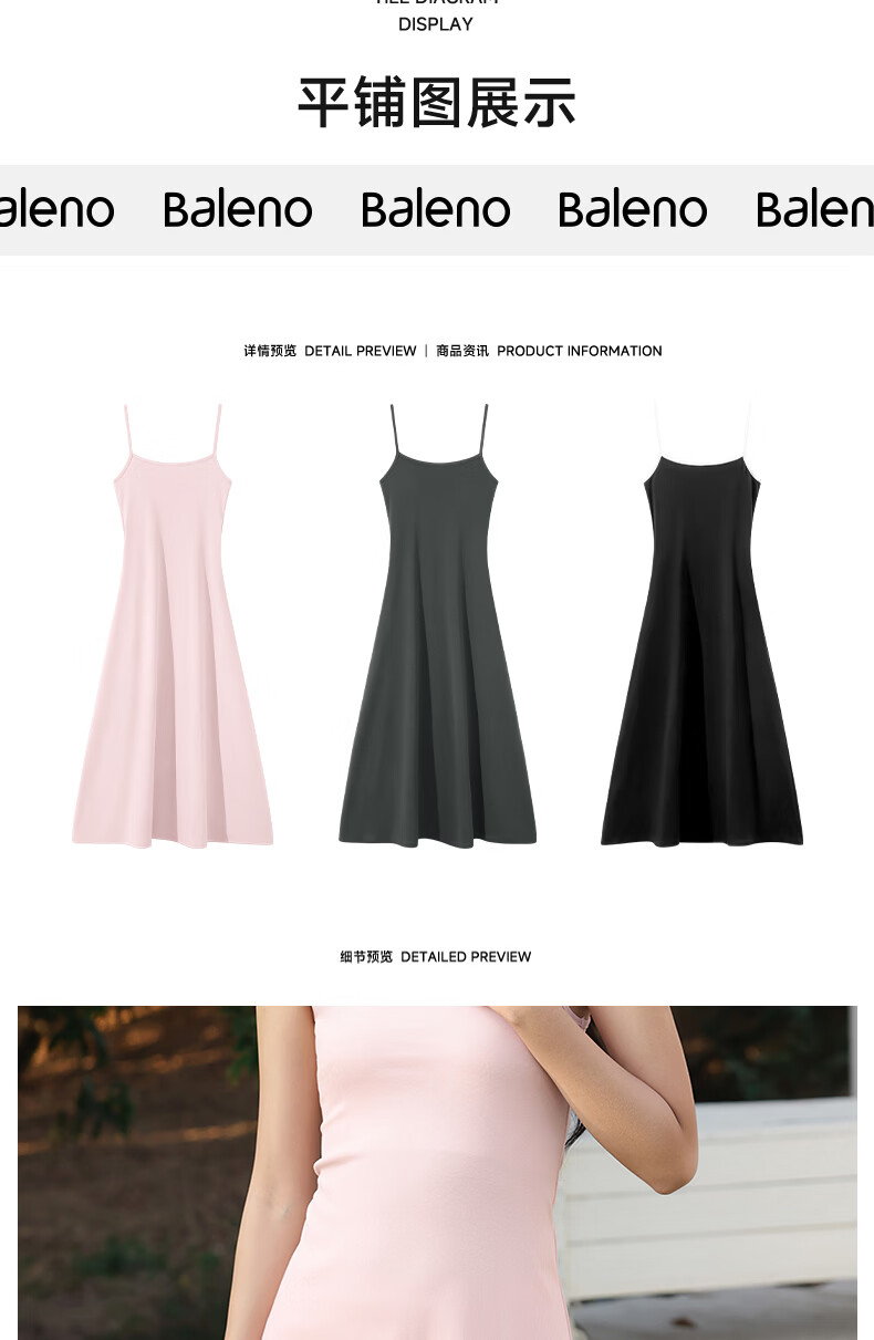 班尼路(Baleno)长款吊带连衣裙女2026年夏季女装新款高弹透气棉质舒适高级感裙子 浅粉#纯色 S
