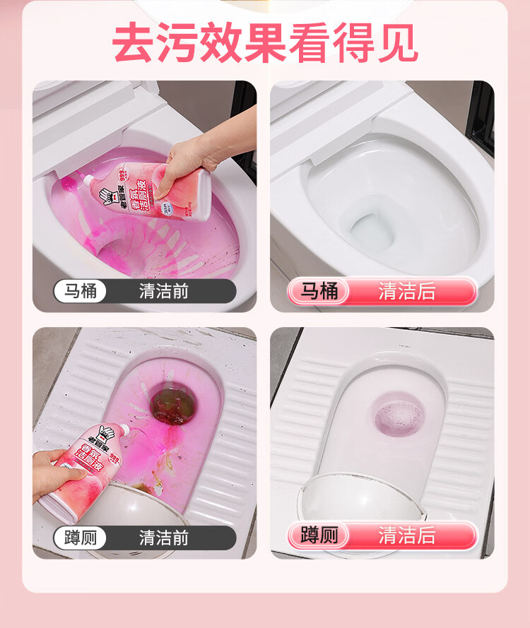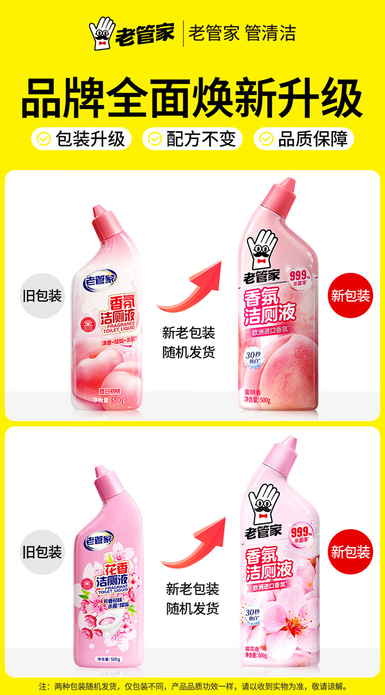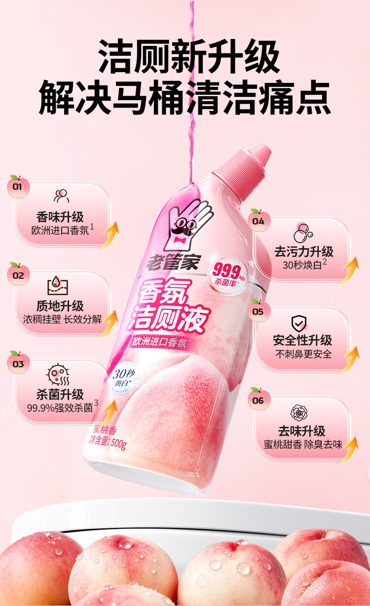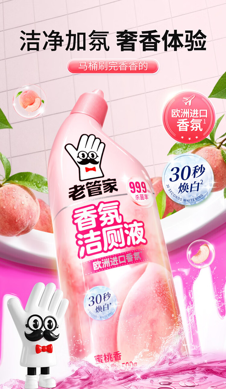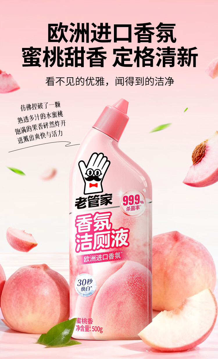老管家香氛洁厕液洁厕剂马桶清洁剂厕所除臭去黄除菌去味洗厕所清洁剂 500g 3瓶 【蜜桃香】