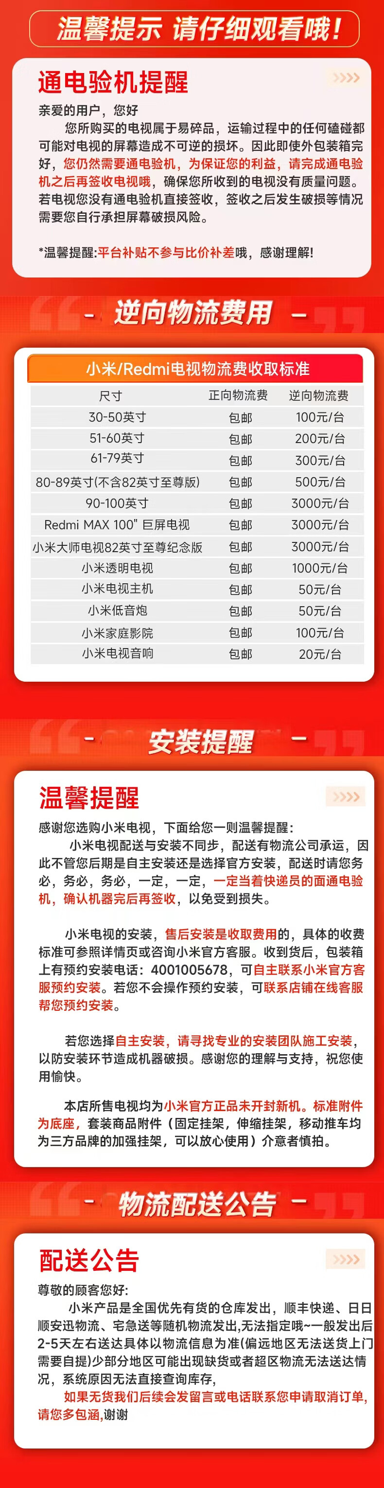 小米电视55英寸REDMI A55 2025节能版120Hz高刷2GB+32GB大存储液晶平板 55英寸 REDMI A55 2025款