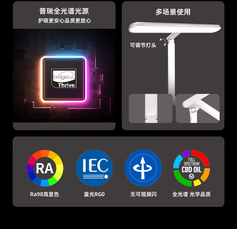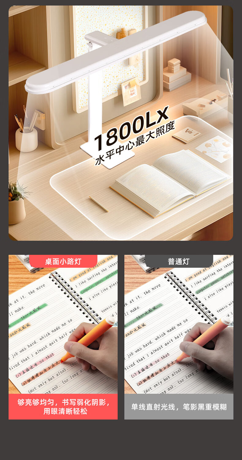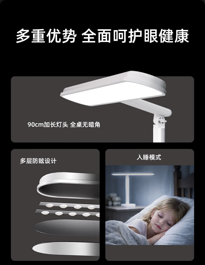 琪朗台式护眼大路灯 桌面立式工作学习灯 儿童家用书桌阅读台灯小夜灯 T4 Plus落地款