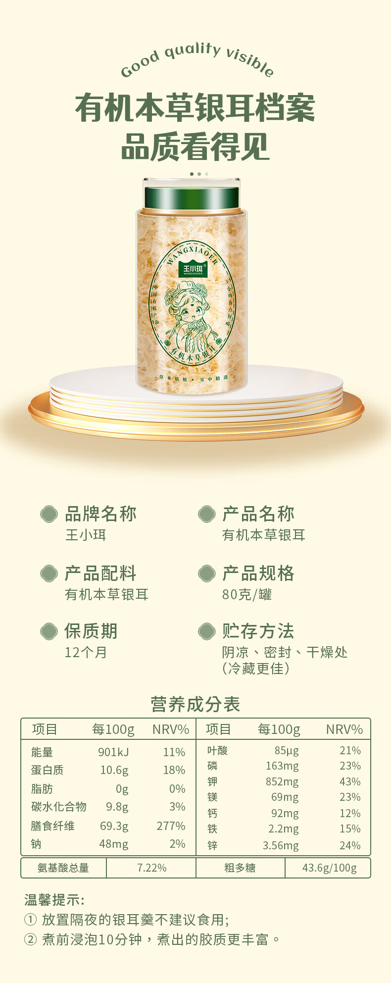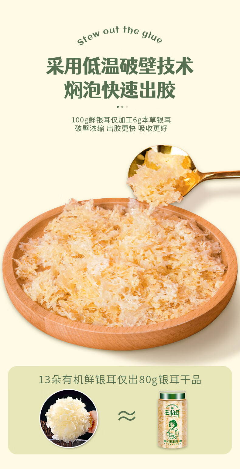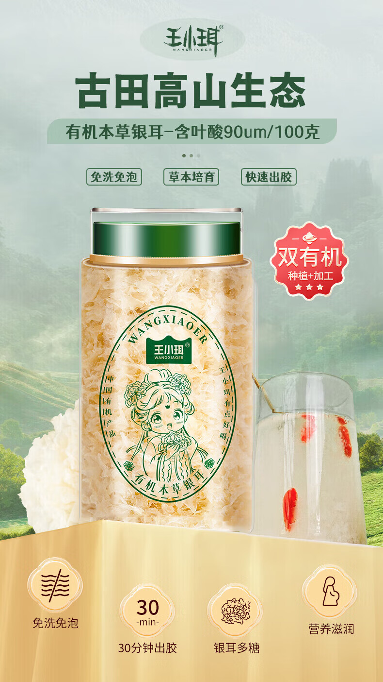 王小珥有机本草银耳80g*2罐早餐即食冲泡 免洗免煮代餐古田金燕银耳羹 【升级款】有机本草银耳80g*2罐