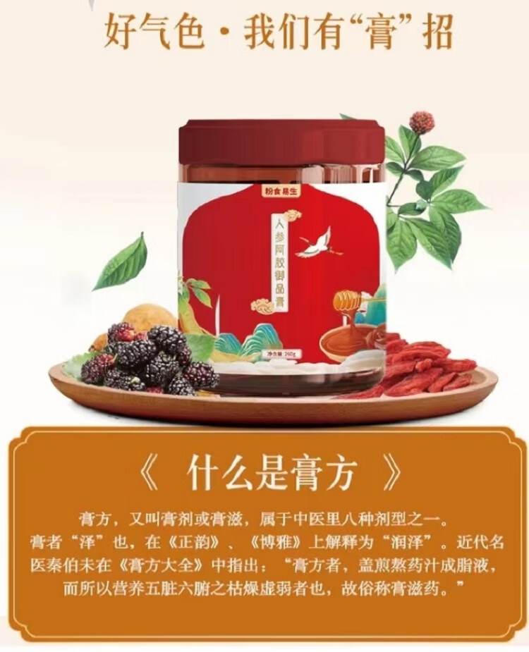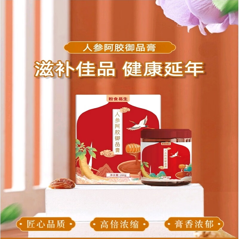 人参阿胶御品膏黄精桑葚雪莲枸杞茯苓山药非遗八繁滋补养生膏滋 人参阿胶御品膏1040g【4瓶】
