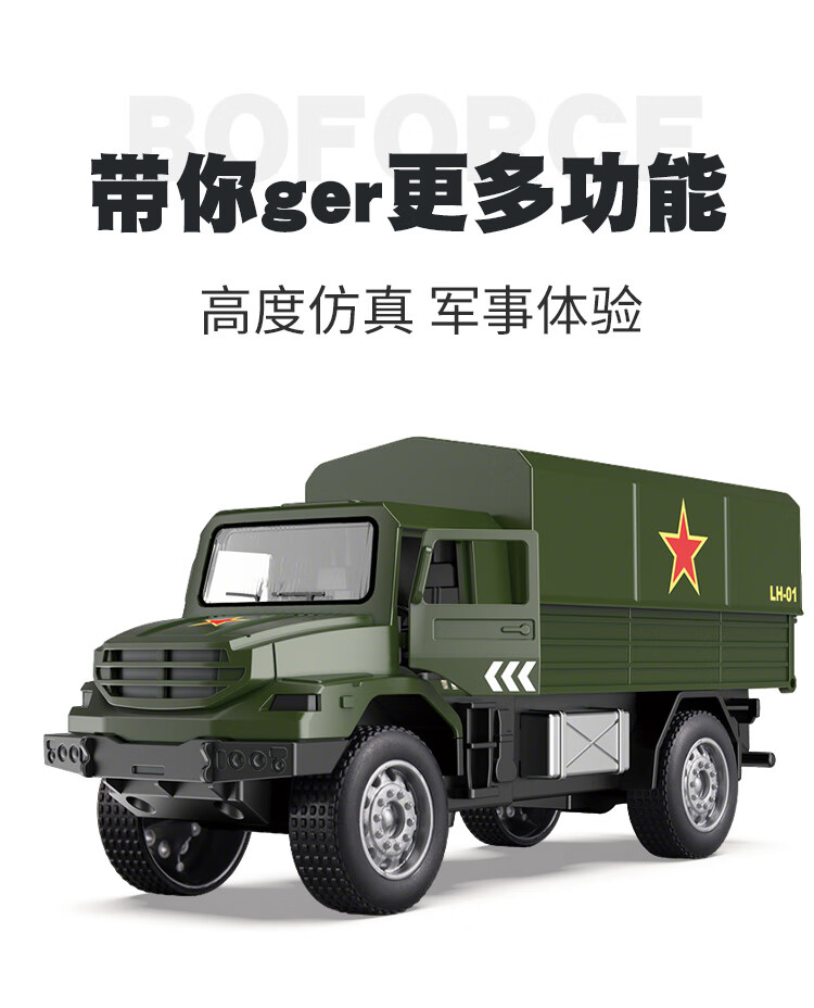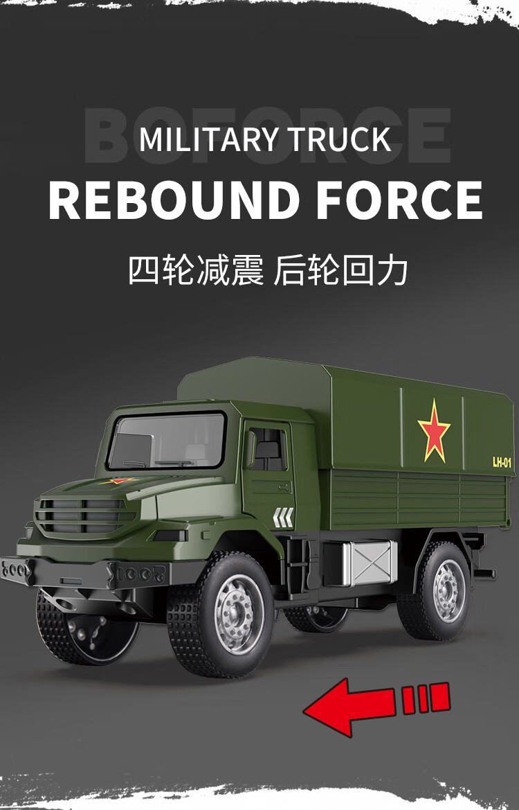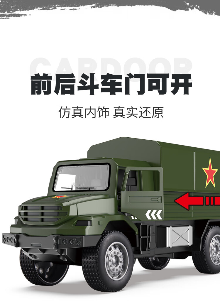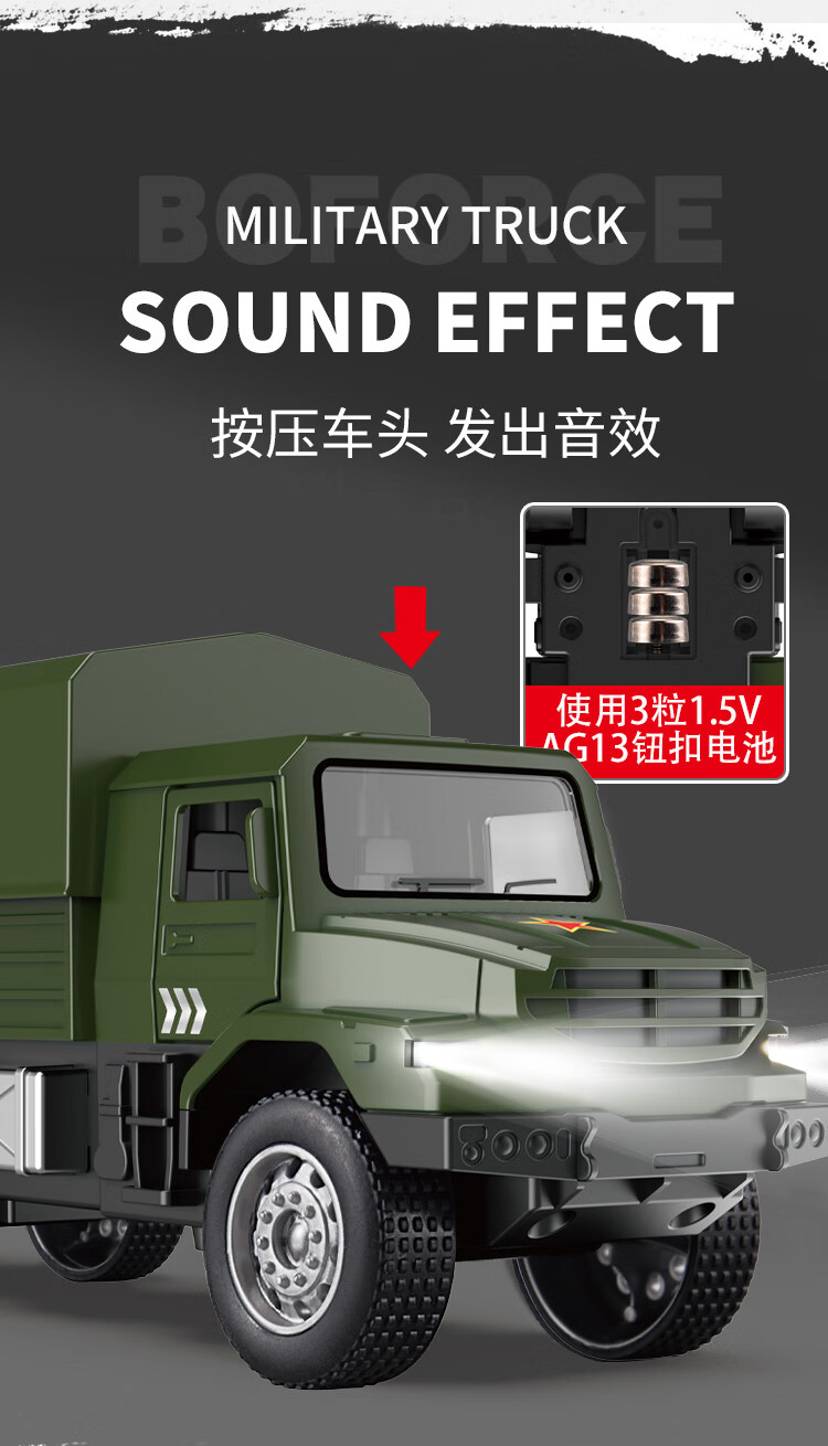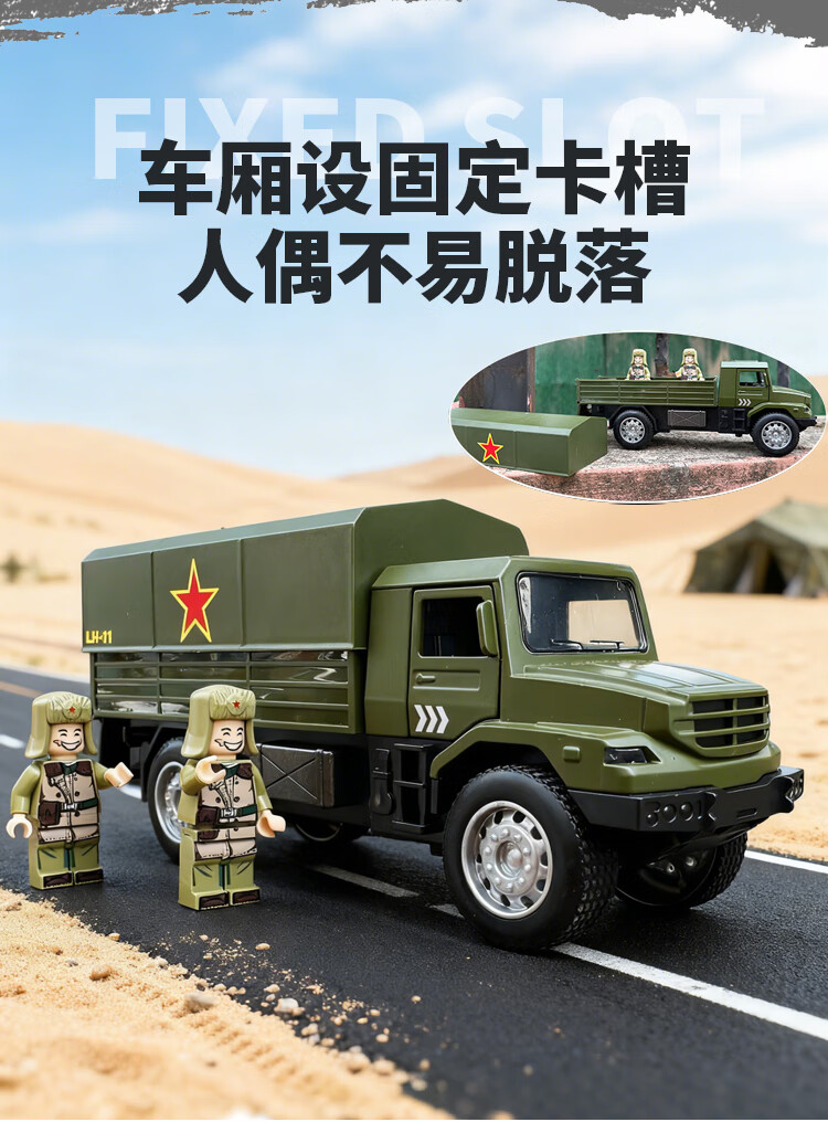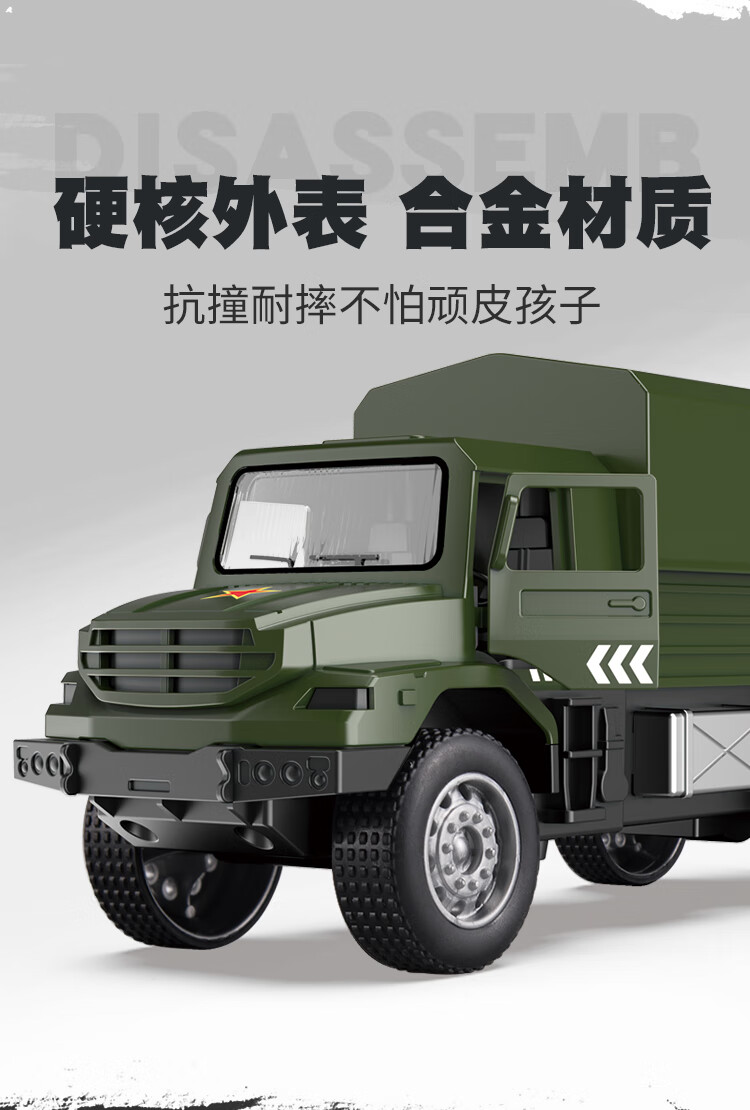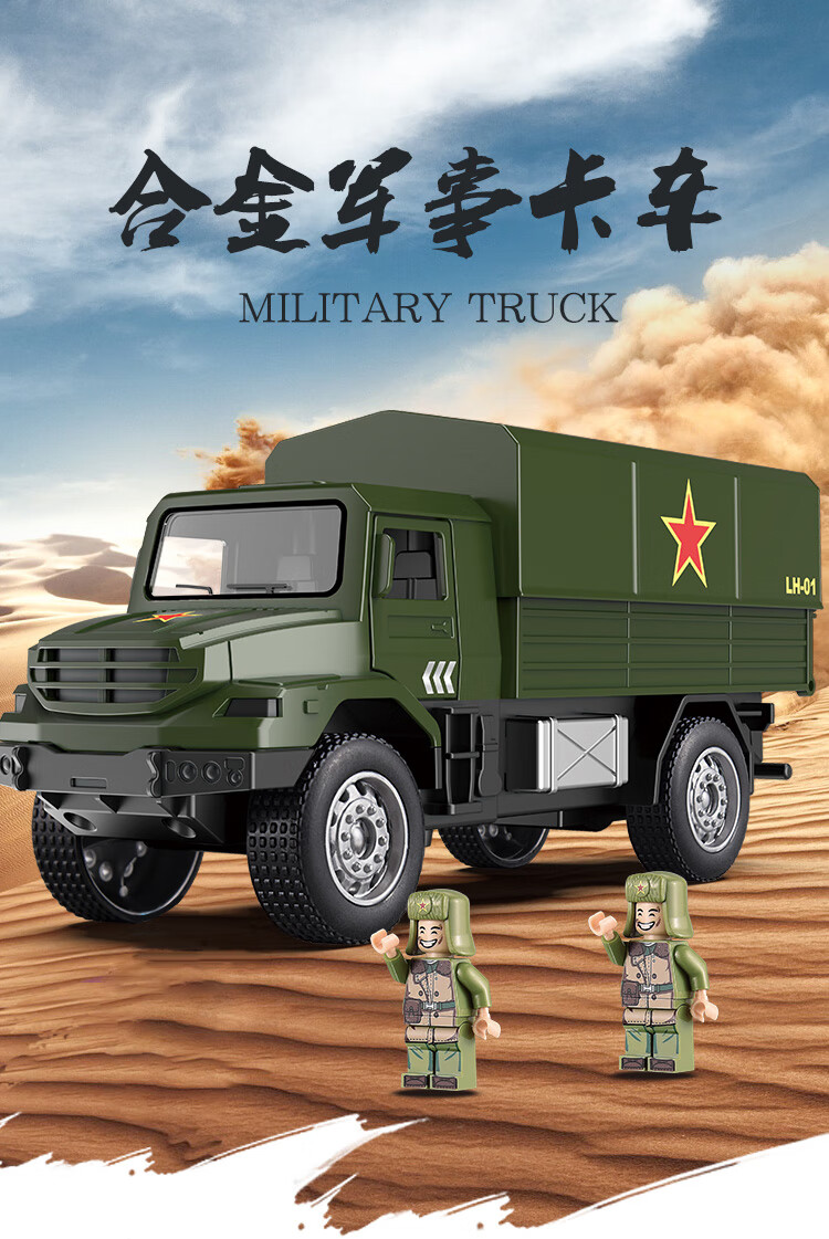 恩贝家族儿童合金军事卡车玩具汽车模型男孩3-6岁坦克运输车装甲生日礼物
