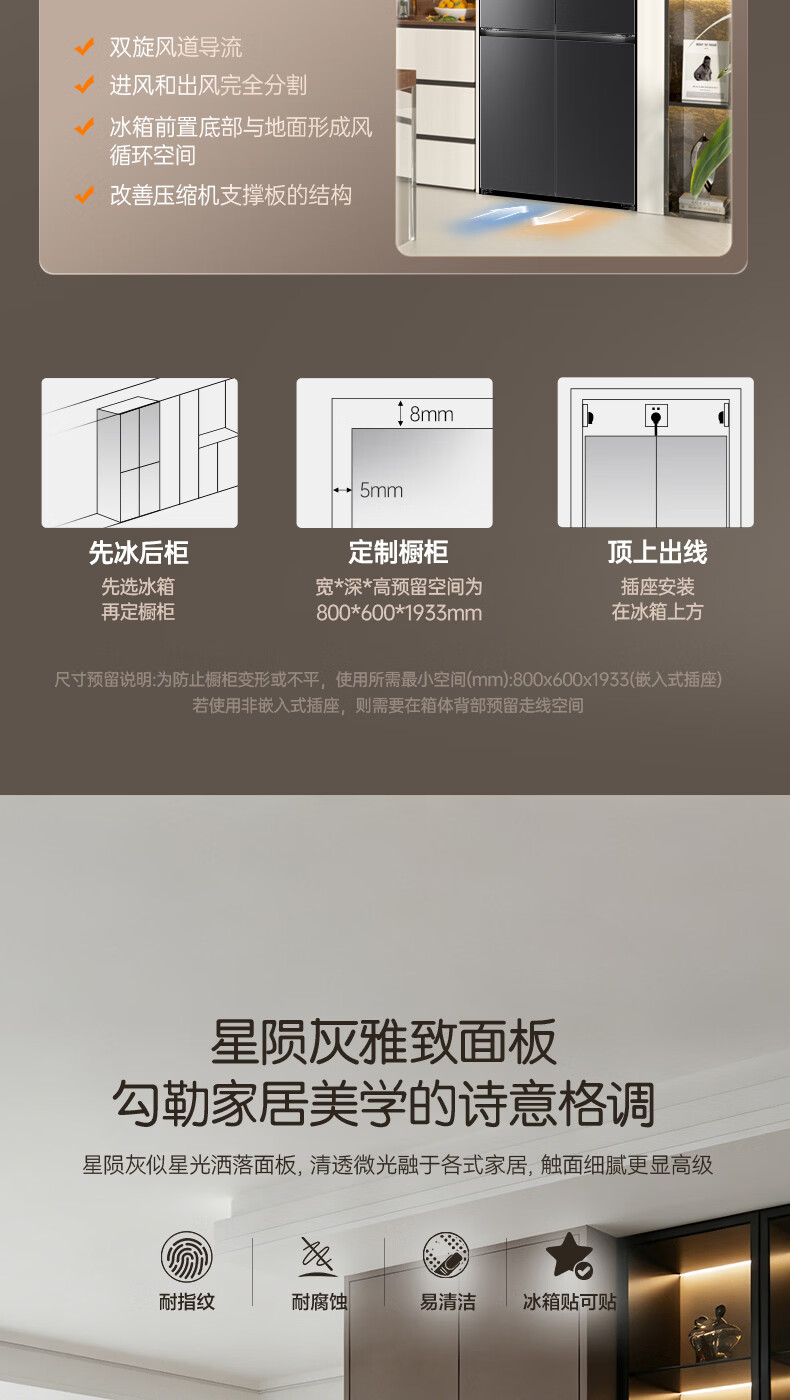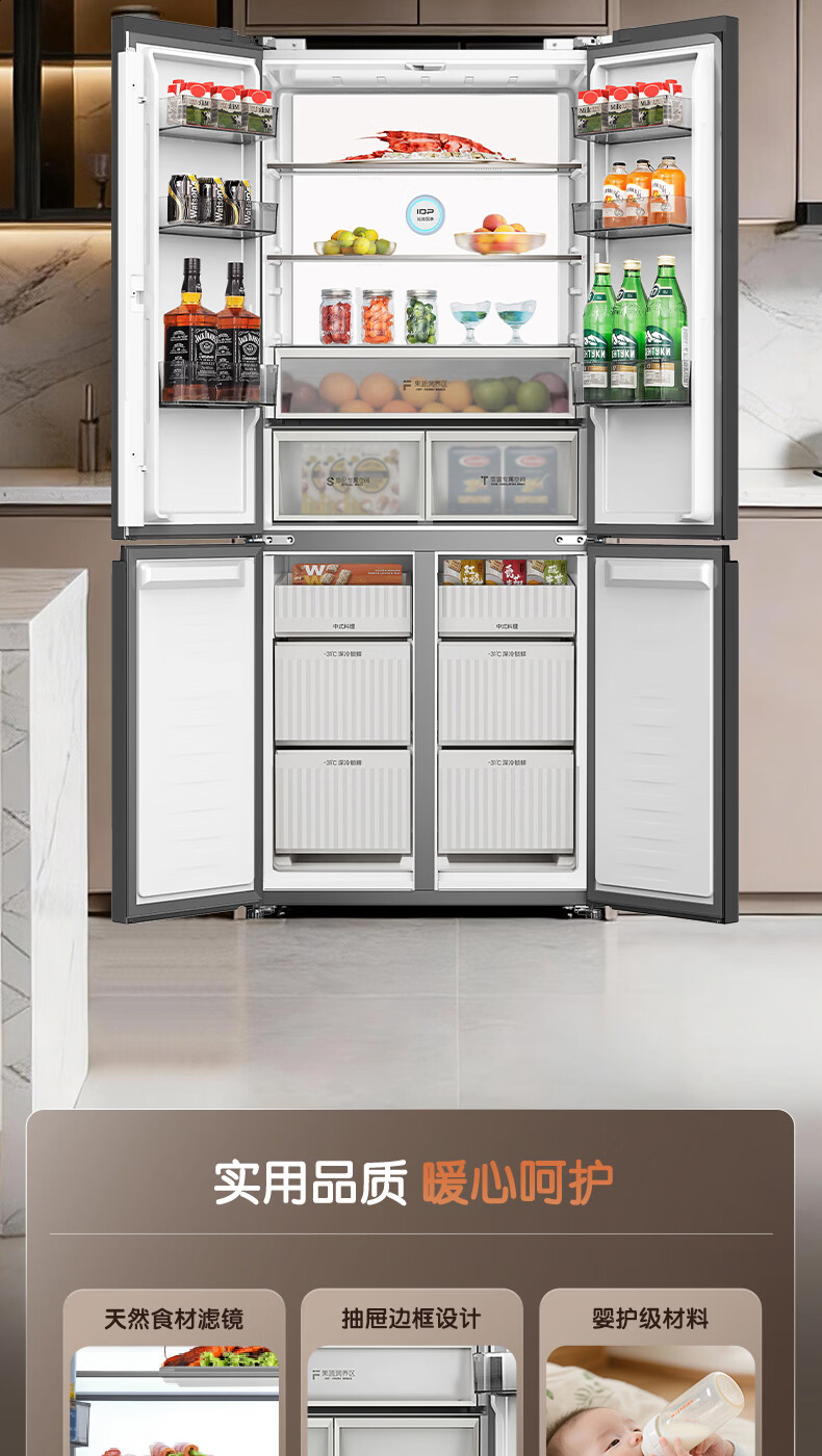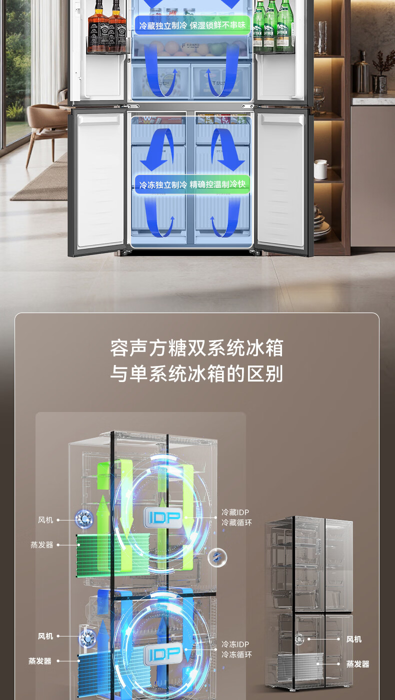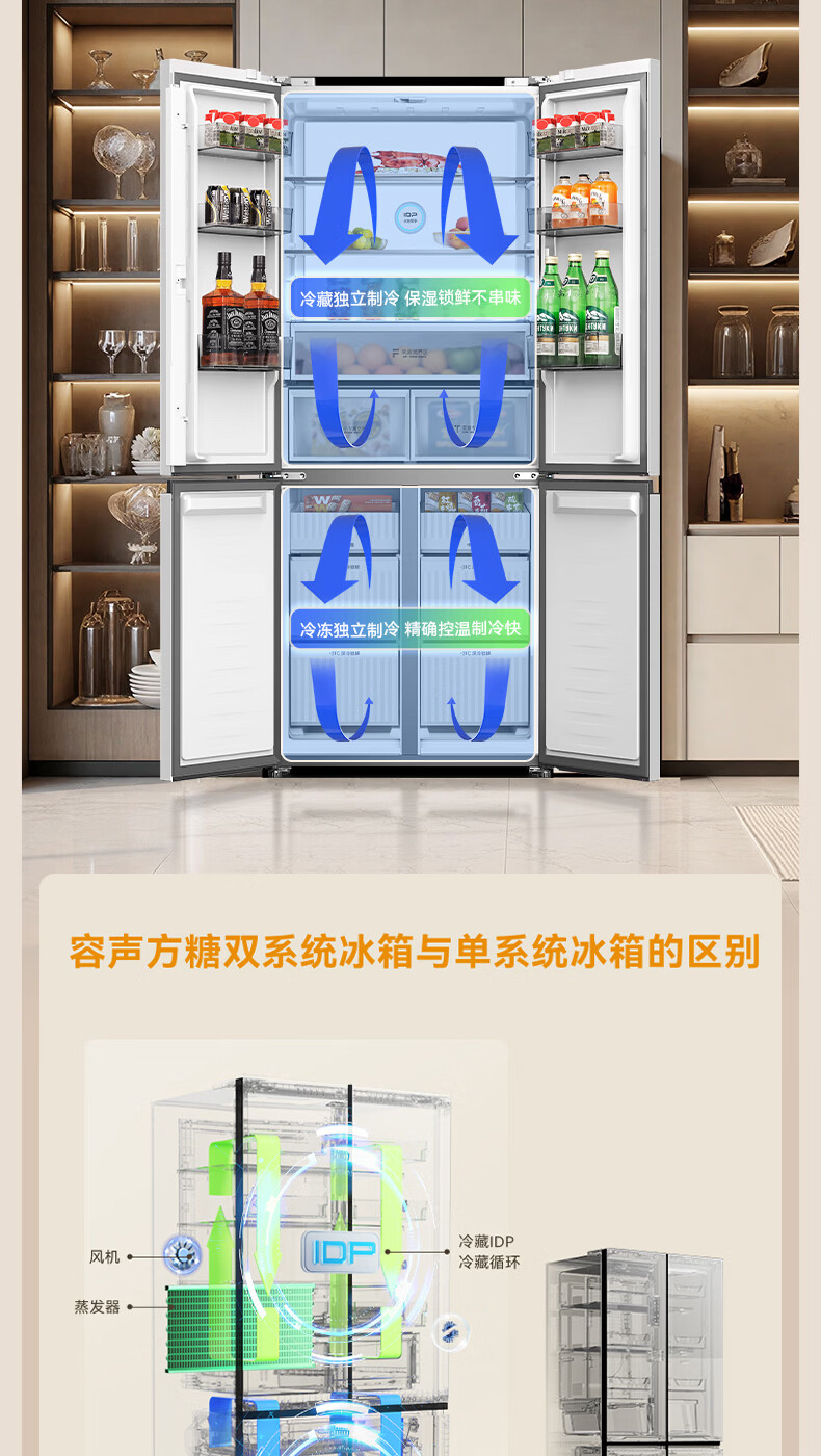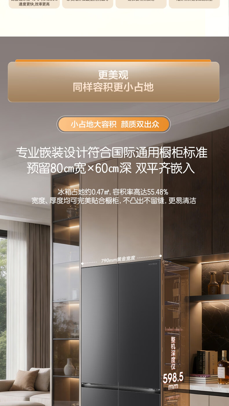 容声【方糖2.0】505L十字门冰箱双系统循环主动除菌超薄嵌入式一级能效无霜大容量国家补贴 BCD-505Q50CZLBD灰