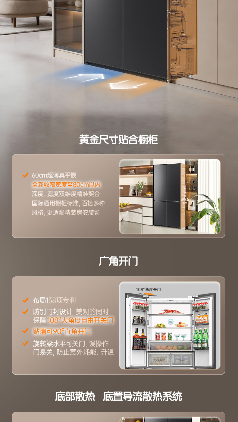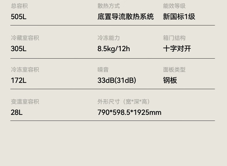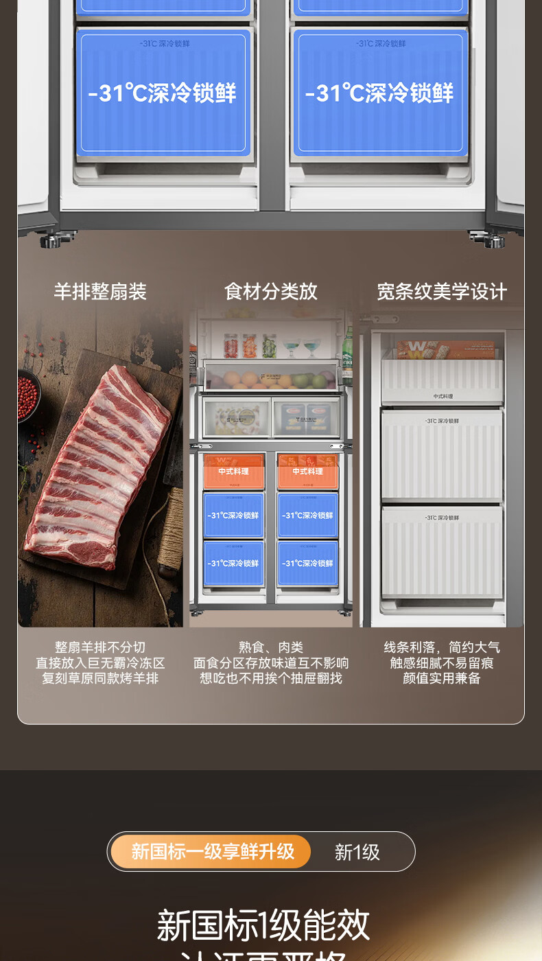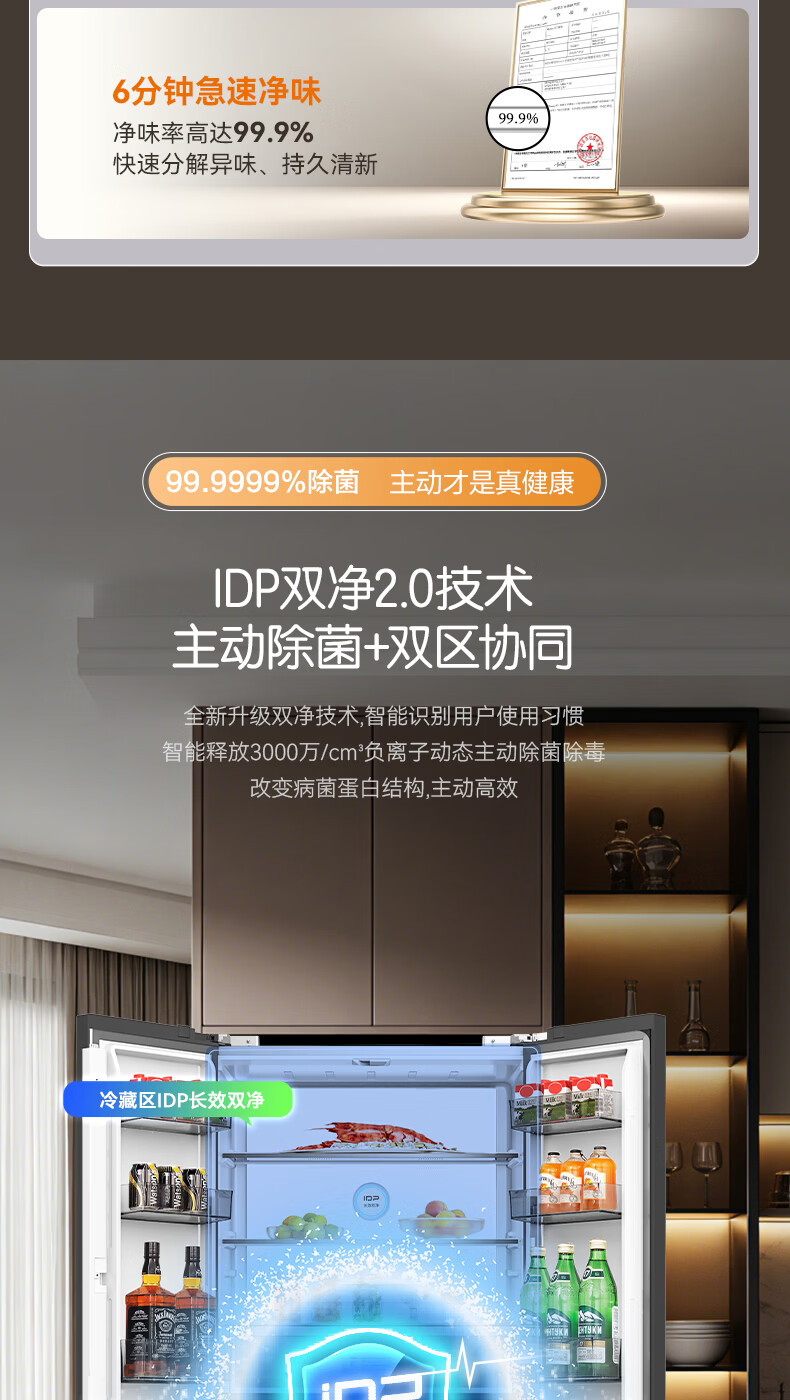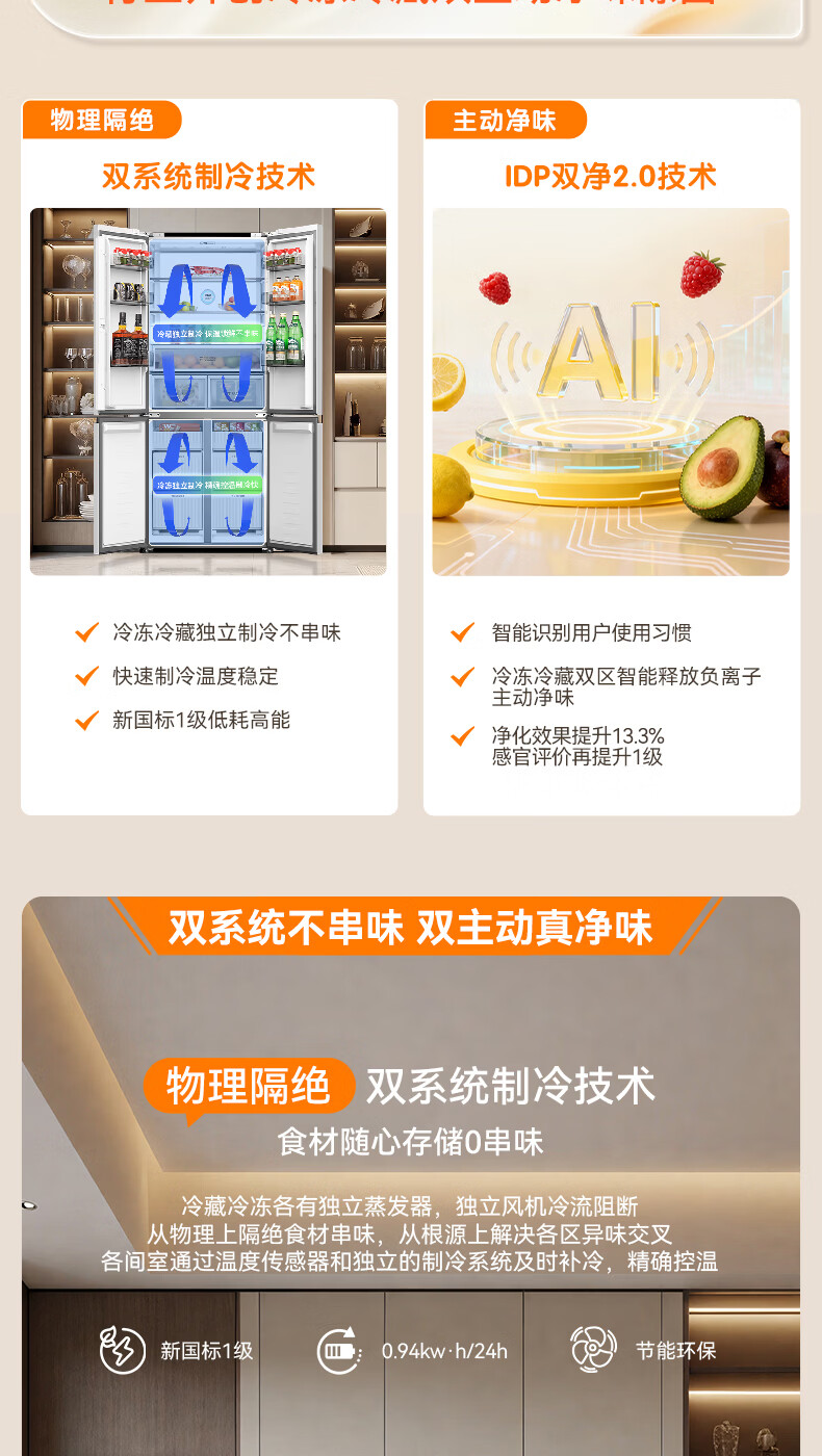 容声【方糖2.0】505L十字门冰箱双系统循环主动除菌超薄嵌入式一级能效无霜大容量国家补贴 BCD-505Q50CZLBD灰